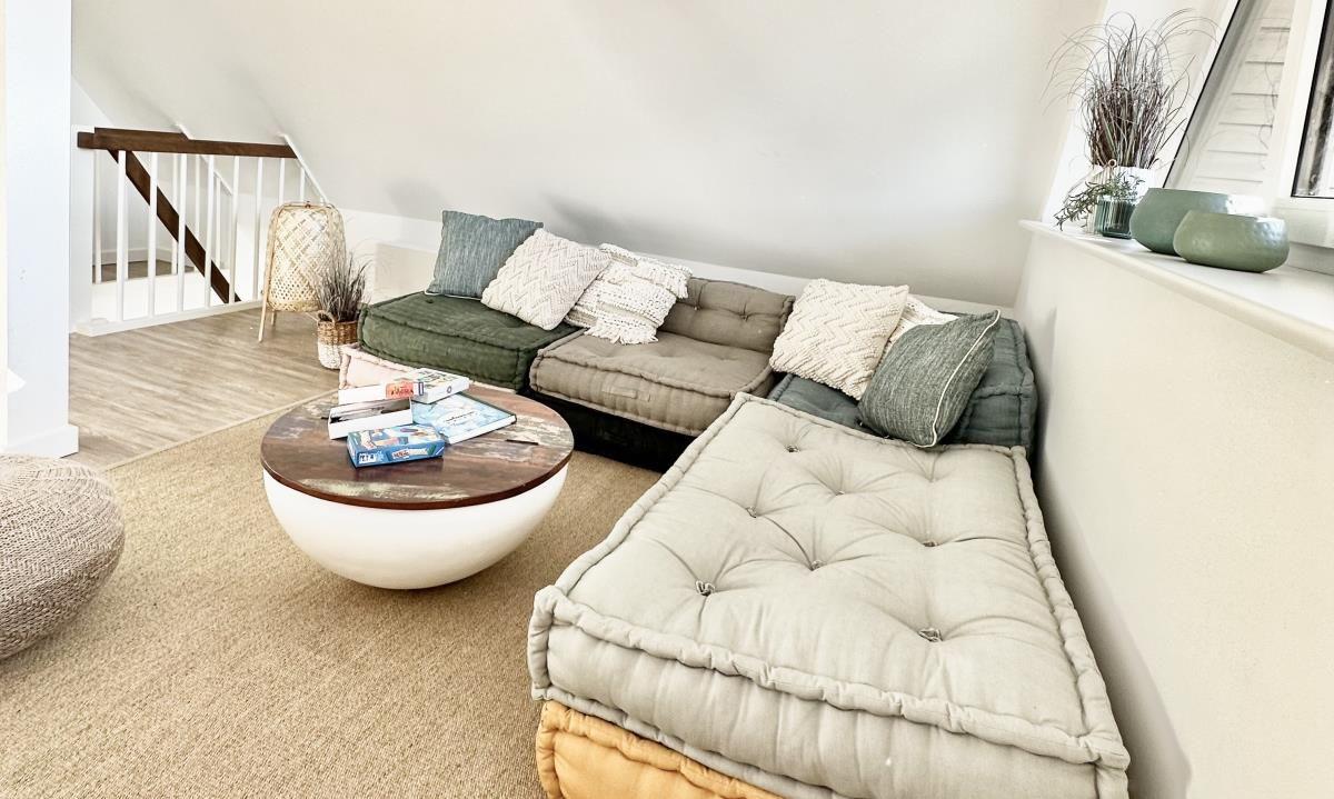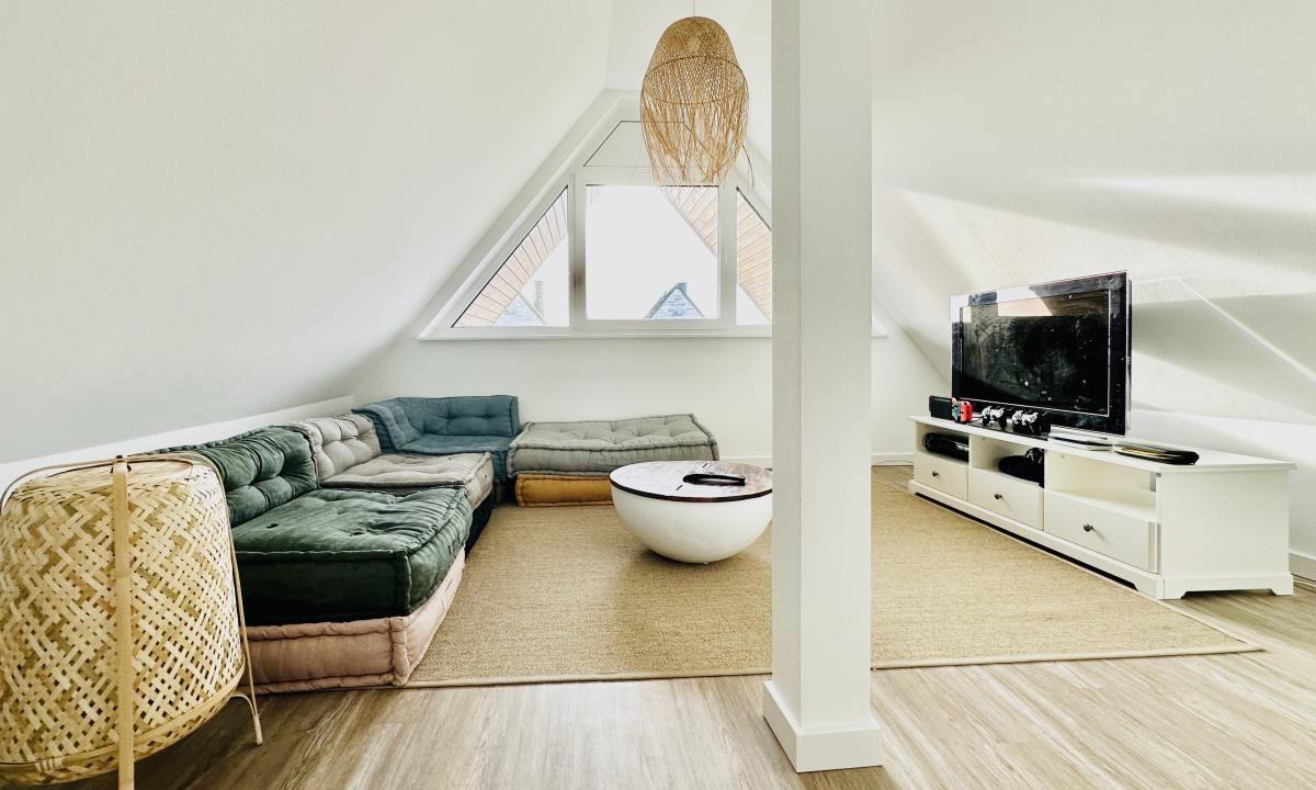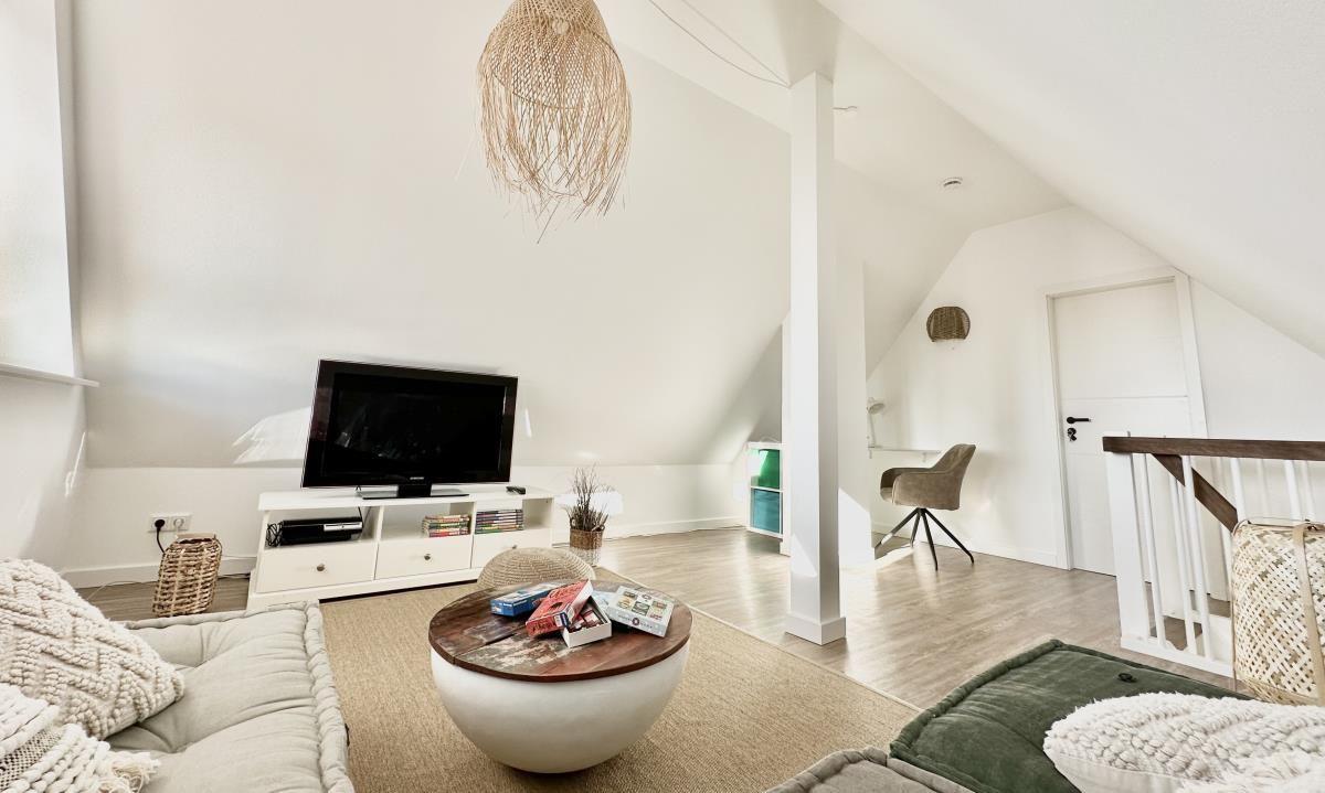 Im Dachgeschoss finden Sie noch einen weiteren Raum zum zurück ziehen, sei es für die Workation am Schreibtisch oder zum Entspannen vor dem Flachbild-TV.