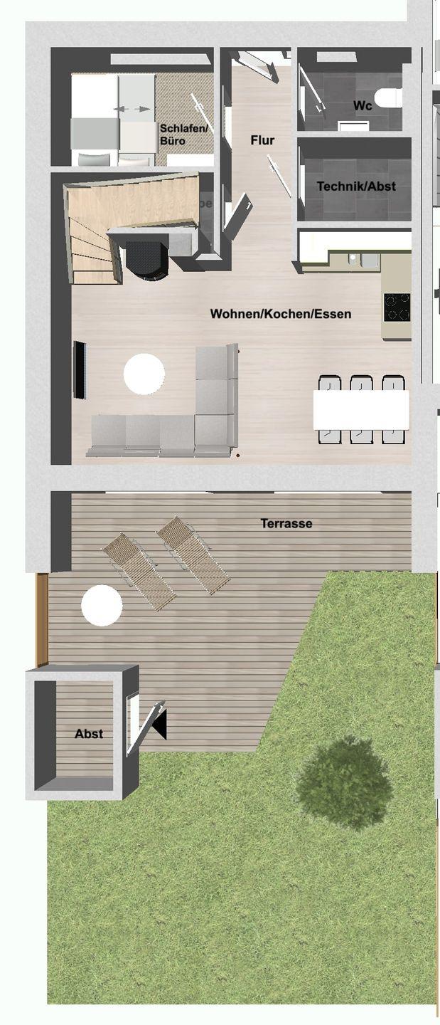 Die in Süd-West-Ausrichtung ausgelegte vollmöblierte Terrasse, sowie die mit zwei Stühlen und einem Tisch ausgestattete Loggia im ersten Obergeschoss bieten zu fast jeder Tageszeit den perfekten Ort für entspannte Sonnenstunden. In der Abendsonne lassen sich perfekte Grillabende am Elektrogrill verbringen. Vor dem Haus steht Ihnen ein kostenfreier Parkplatz und eine E-Ladesäule, an welcher Sie Ihren PKW kostenpflichtig laden können, zur Verfügung. Fahrräder sowie Kinder- und Bollerwagen können Sie im abschließbaren Schuppen unterstellen. Weitere PKW können an der Straße in Parkbuchten abgestellt werden.