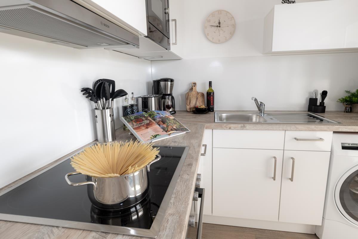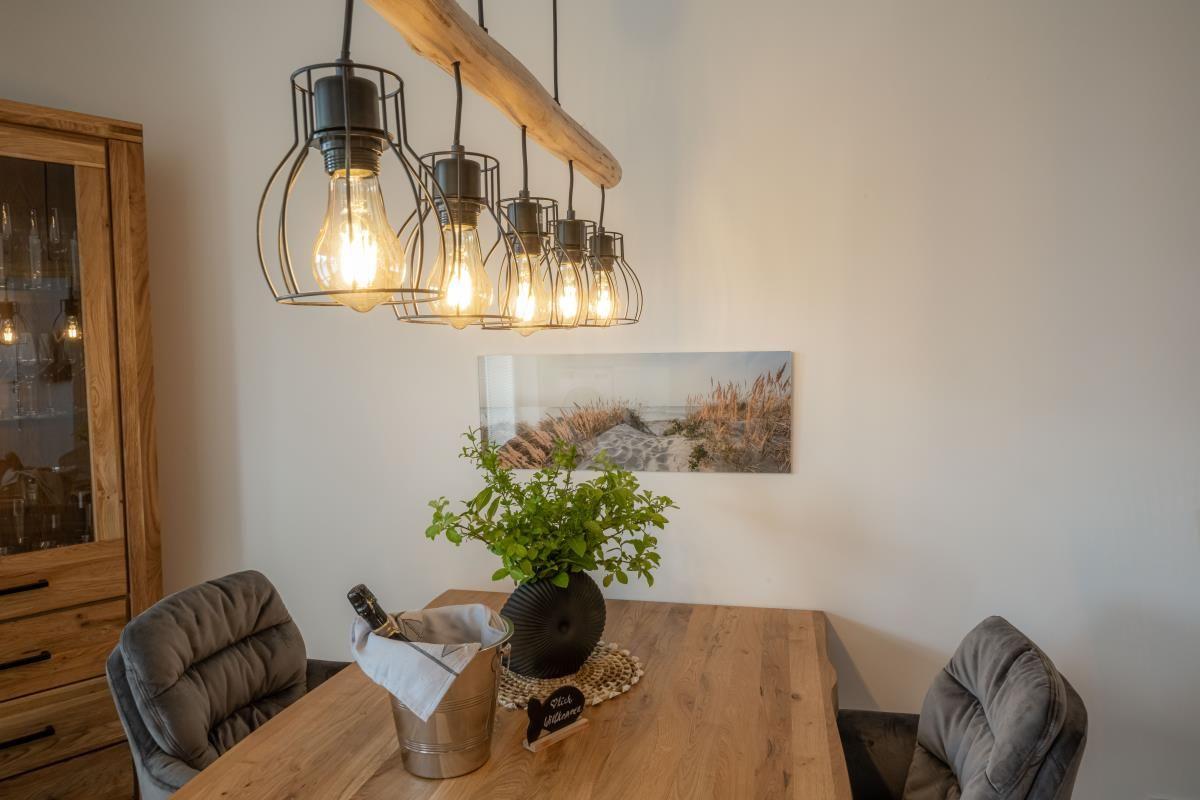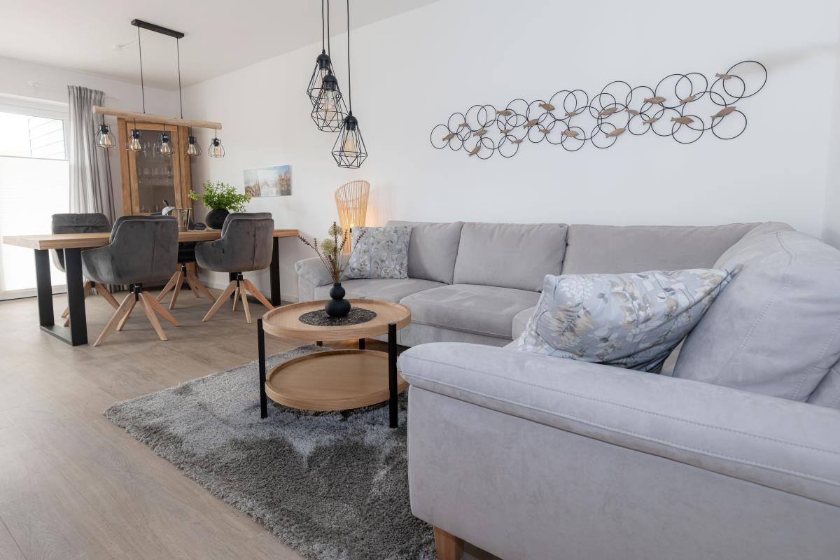 Willkommen im "Pier 39" in Büsum! Die Ferienwohnung bietet auf 80m² einen offenen Wohn- und Essbereich mit Küche, zwei Schlafzimmer, ein Badezimmer und eine Terrasse. In dem gemütlichen Wohnbereich können Sie es sich auf dem Sofa bequem machen und vor dem Smart-TV Ihre Lieblingsserie auf Magenta TV anschauen. Der Kamin sorgt für eine mollige Wärme und eine gemütliche Atmosphäre. In der vollausgestatteten Küche können Sie leckere Gerichte zaubern oder auch z.B. einen Kuchen backen bei komplett vorhandenem Backzubehör. Auch Spieleabende können Sie in fröhlicher Runde mit der ganzen Familie veranstalten. Für unsere kleinen Gäste steht ein Hochstuhl und ein Kinderbett zur Verfügung. Das eine der beiden Schlafzimmer ist mit einem Doppelboxspringbett (180x200cm) ausgestattet und das andere bietet zwei einzelne Boxspringbetten (je 90x200cm), welche bei Bedarf auch zusammen geschoben werden können. Für einen erholsamen Schlaf sind Verdunkelungsmöglichkeiten sowie Insektengitter vorhanden. Beide Zimmer verfügen außerdem über Smart-TV´s mit Magenta TV. Im Badezimmer finden Sie neben einer ebenerdigen Dusche auch eine Badewanne, sowie einen Kosmetikspiegel, einen Föhn und einen Handtuchtrockner vor. Und das absolute Highlight: eine Infrarotsauna! Erholung pur nach langen Strandspaziergängen oder auch einfach um dem Alltagsstress zu entfliehen und sich so richtig entspannen zu können. Über den Wohn- und Essbereich gelangen Sie auf die möblierte und überdachte Terrasse, wo Sie Ihren Morgenkaffee genießen können und an lauen Sommerabenden Köstlichkeiten auf dem Grill zubereiten können. Ein PKW-Stellplatz ist vor dem Haus vorhanden. In dem abschließbaren Schuppen können Sie Ihre Fahrräder sicher unterstellen. Hier besteht auch eine Lademöglichkeit für Ihre E-Bikes.