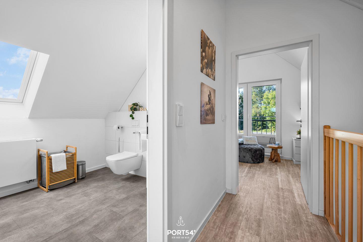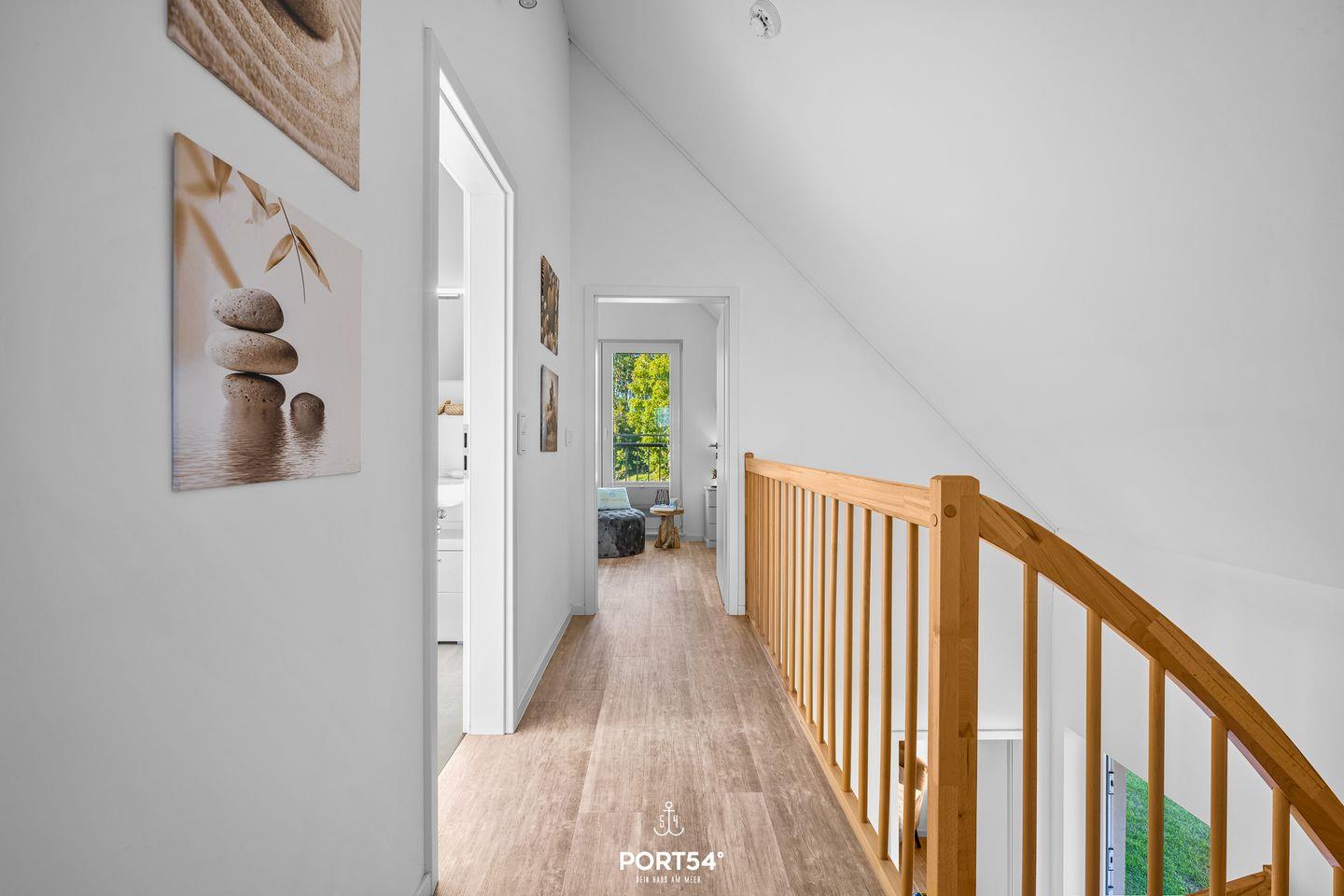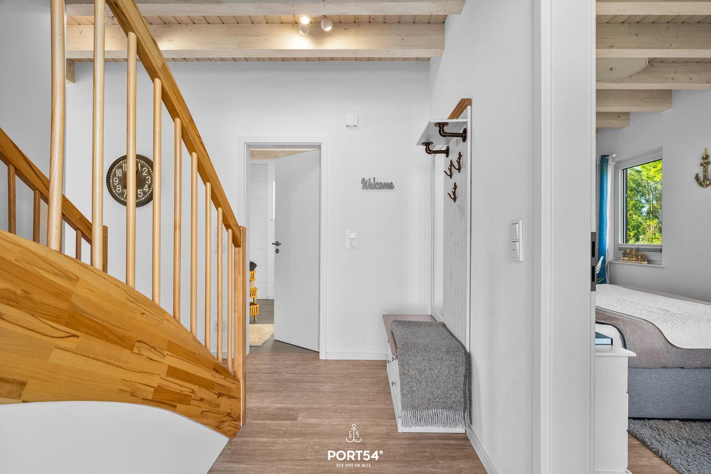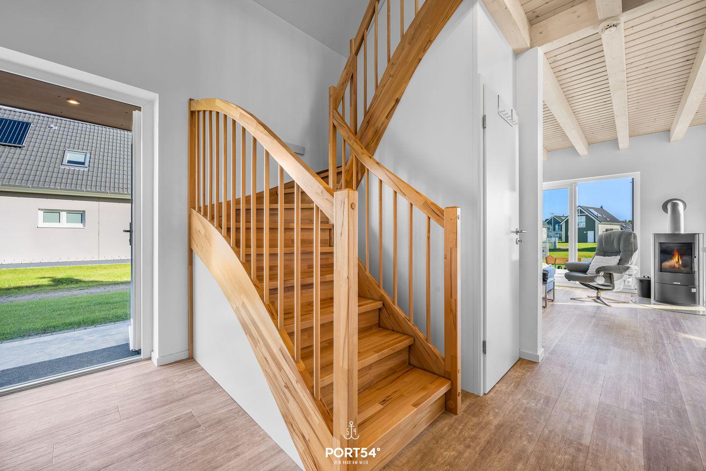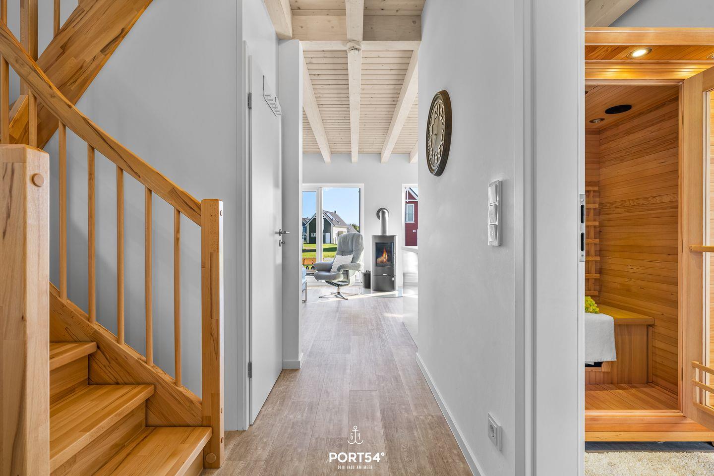 Alle Fenster des Hauses verfügen über Plissees als Sichtschutz, in den Schlafräumen sind zudem Verdunklungsplissees angebracht. In der unteren Etage verfügt das Haus über eine moderne Fußbodenheizung. Aufgrund der Holzkonstruktion wird die obere Etage durch große Heizkörper erwärmt. Auch für den Urlaub mit Kindern ist das Haus vorbereitet: neben Gesellschaftsspielen zum Zeitvertreib gibt es ein Beistellbett (Reisebett) für Kleinkinder sowie einen Kinderstuhl, damit auch die Kleinsten in der Tischrunde Platz nehmen können. Für den Besuch am Strand steht ein Bollerwagen zur Verfügung, der das Sandspielzeug (ebenfalls vorhanden) und Proviant einfach und sicher zum Strand befördert.