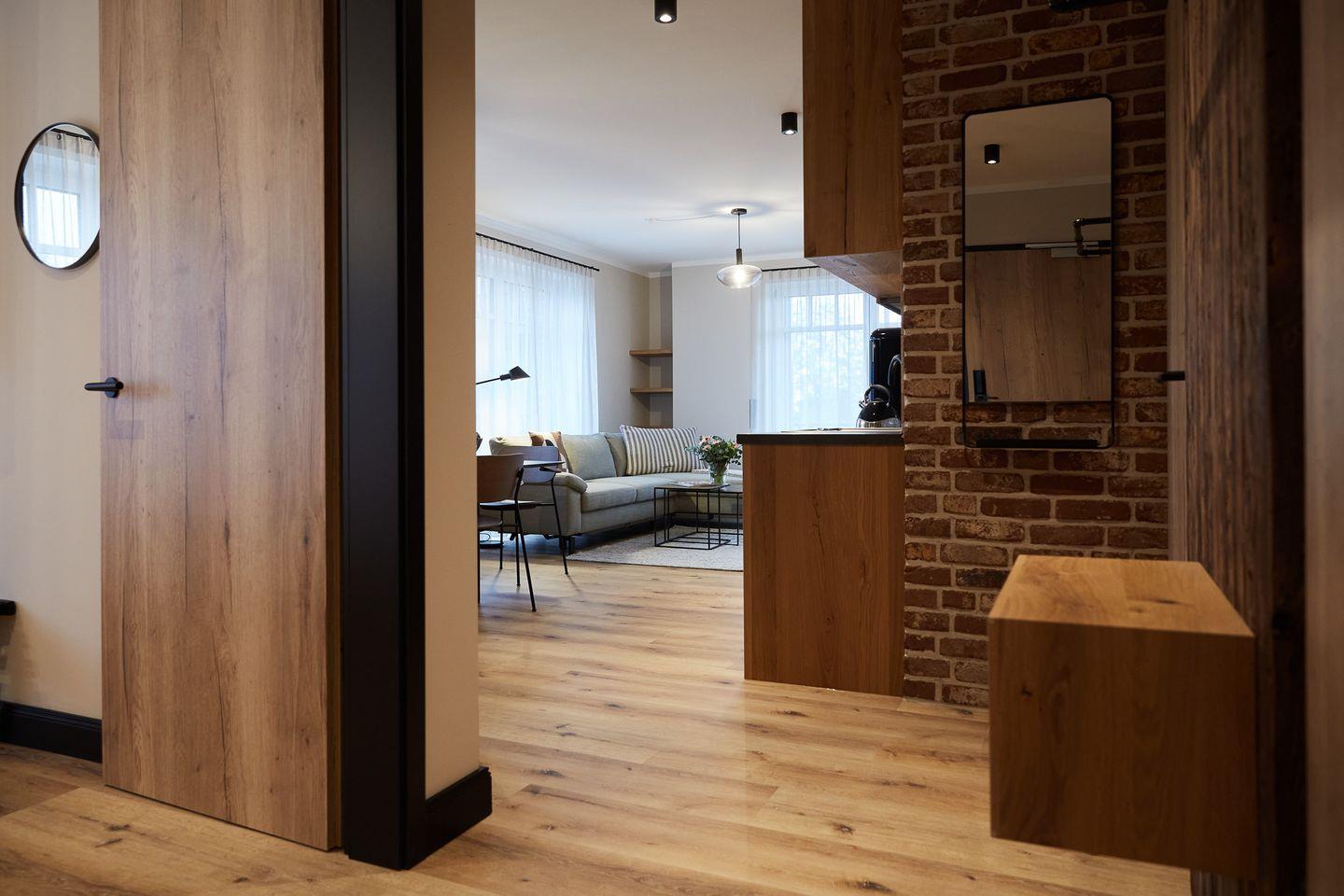 Auf rund 64 Quadratmetern finden vier Gäste Ihr kleines Urlaubsrefugium mit einer modernen und hochwertigen Ausstattung. Genießen Sie das entspannte Ambiente im lässigen Industrial Style, das gleichzeitig jede Menge Cozyness versprüht. Zusätzlich sorgen schallisolierte 3-fach verglaste Fenster und eine Fußbodenheizung für maximale Behaglichkeit.