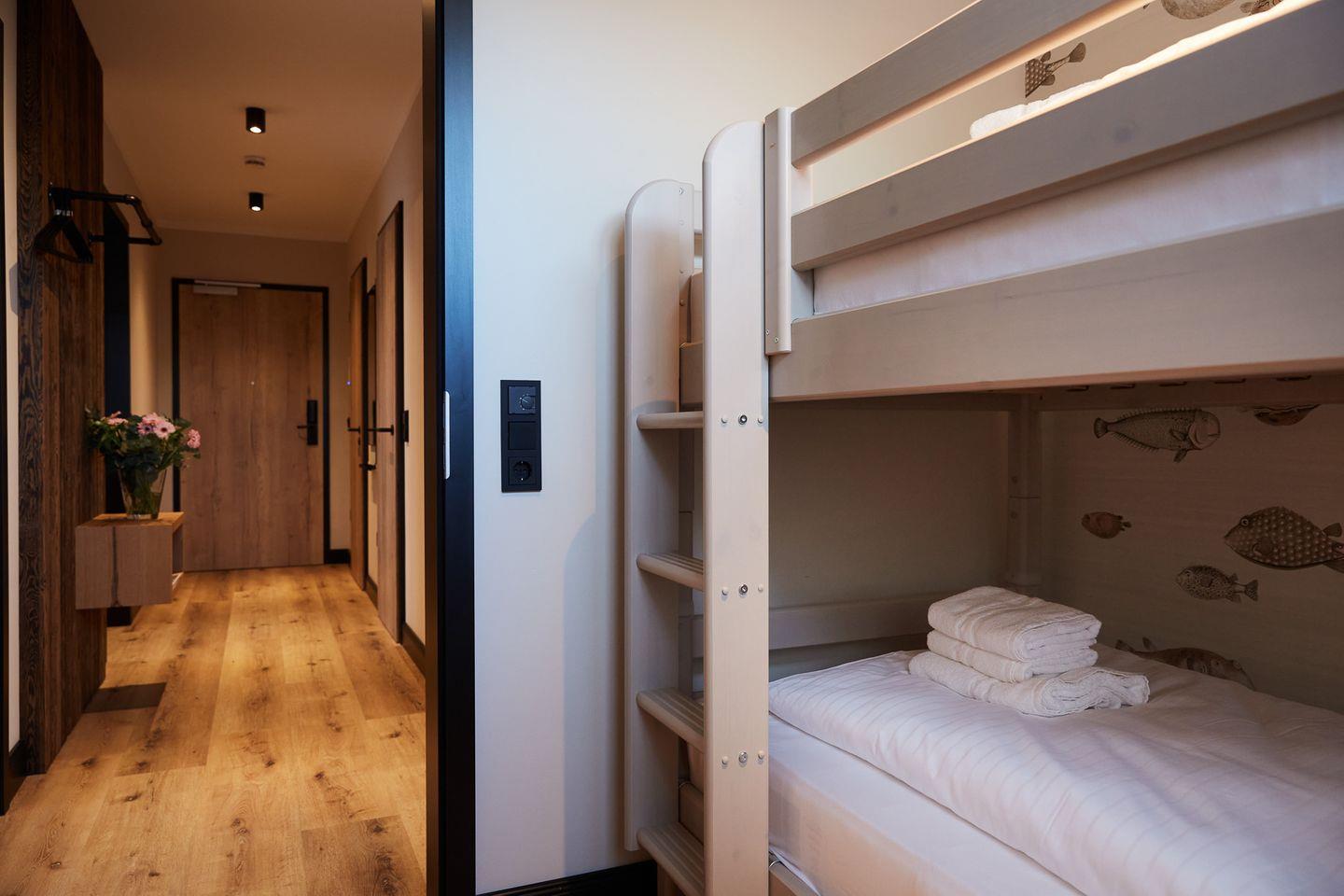 Hier warten drei Schlafzimmer mit komfortablen Doppelbett bzw. Hochbett und Smart-TV auf Sie, außerdem zwei Badezimmer. Die moderne Küche ist offen zum Wohnzimmer ausgerichtet – Sie finden dort u. a. einen Induktionsherd, Spülmaschine und Backofen. Der Balkon ist perfekt, um ein Buch zu lesen, zu entspannen oder einfach nur, um sich die herrliche Nordseeluft um die Nase wehen zu lassen …