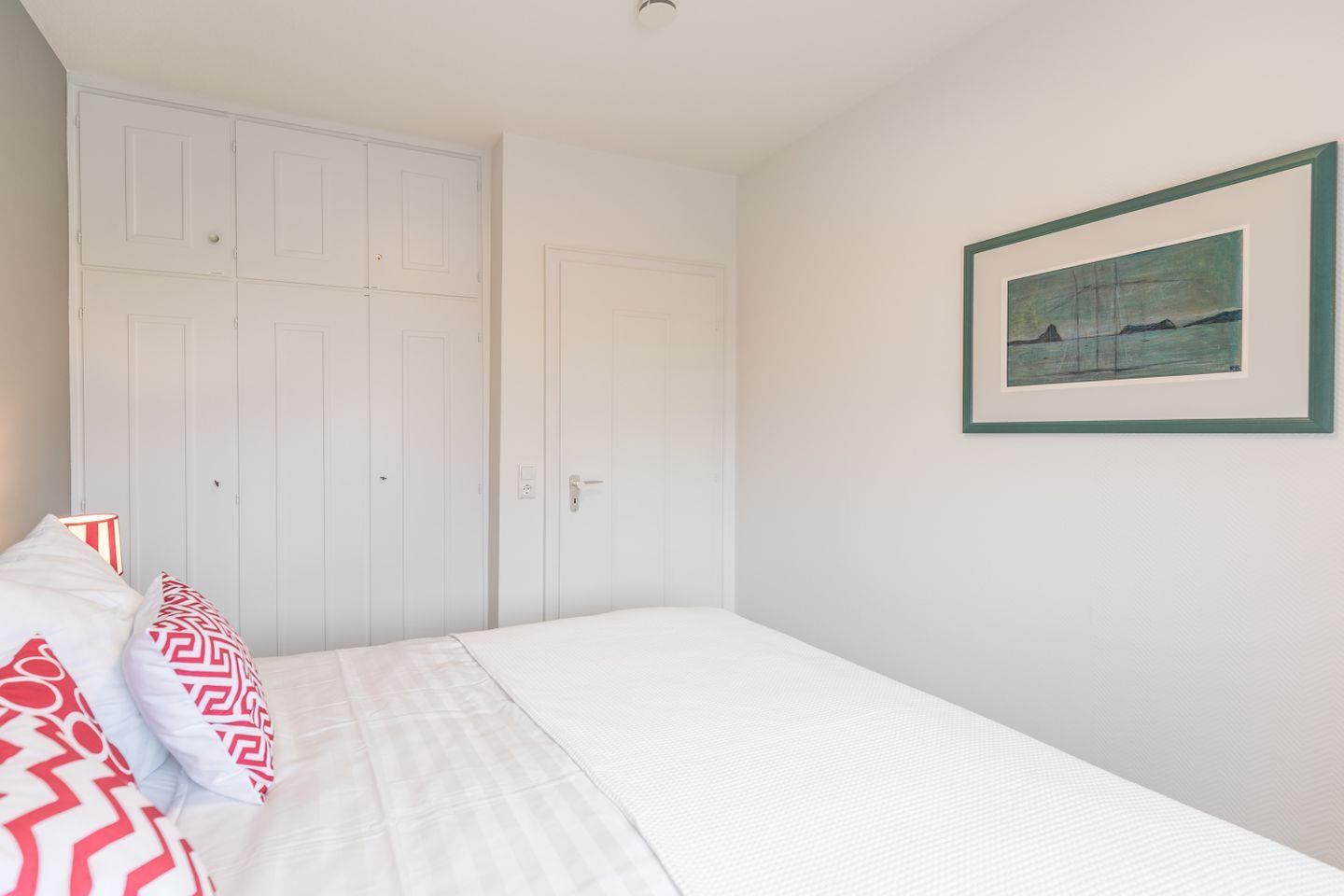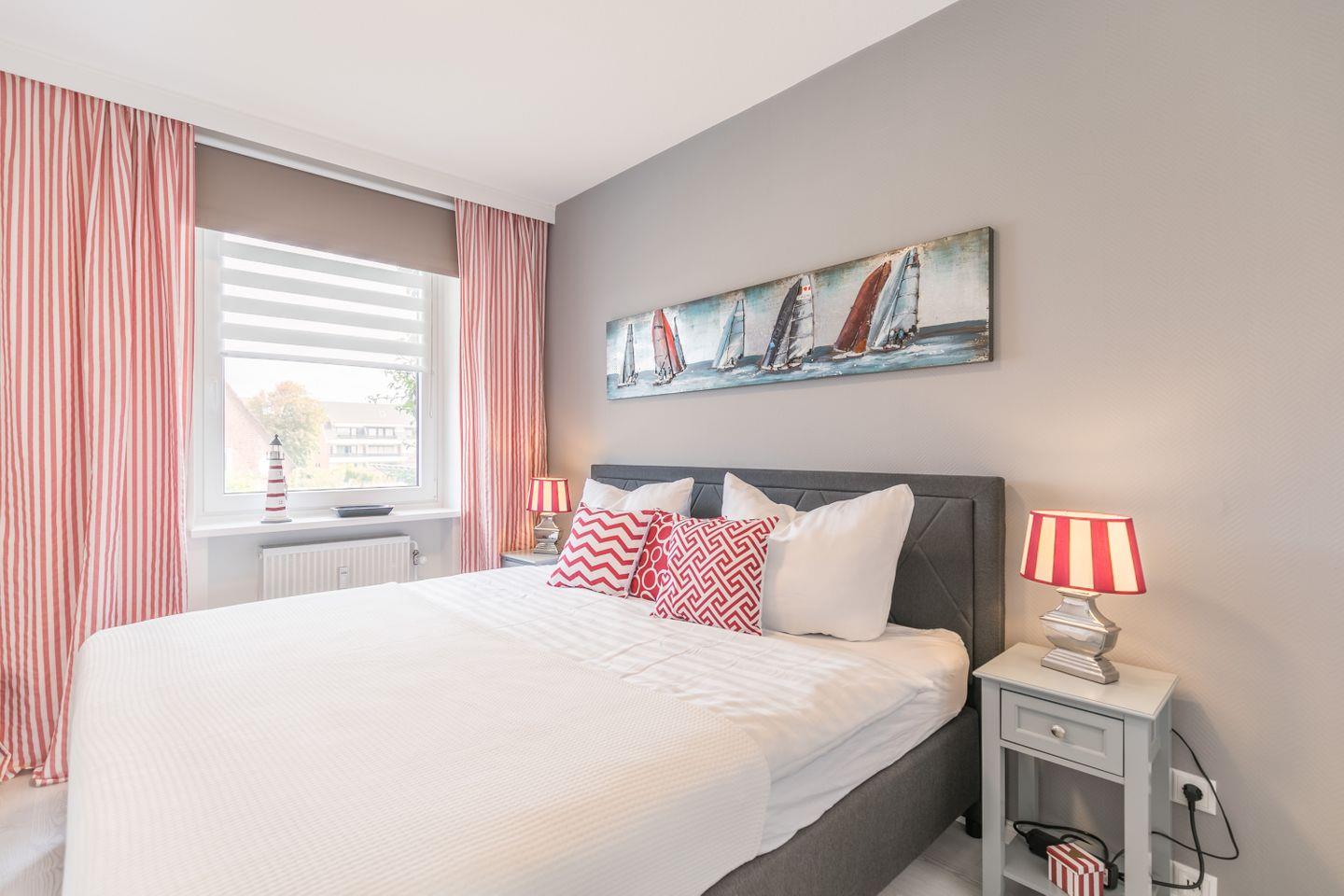 Im Schlafzimmer steht ein komfortables Boxspringbett für Sie bereit und ein integrierter Wandschrank schafft genügend Stauraum für Ihre Kleidung.