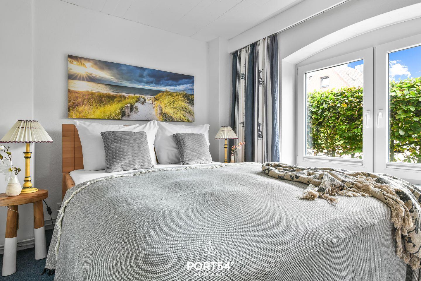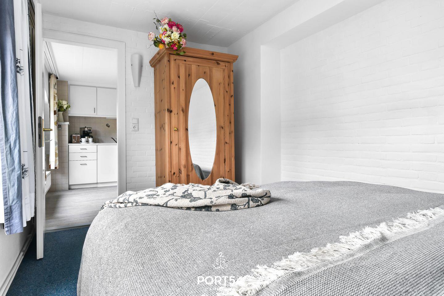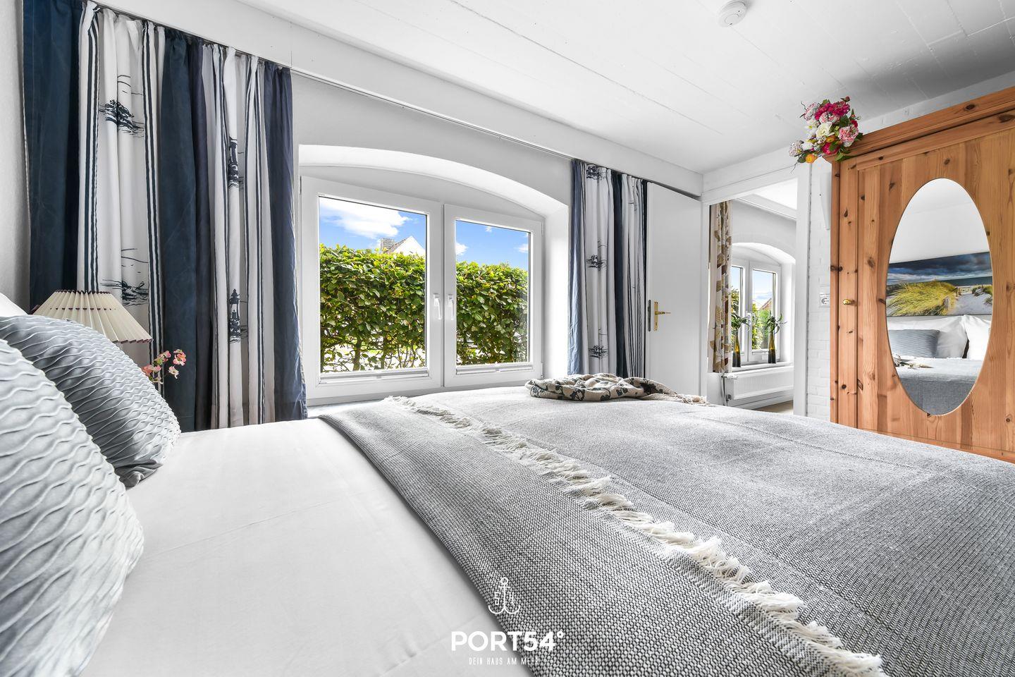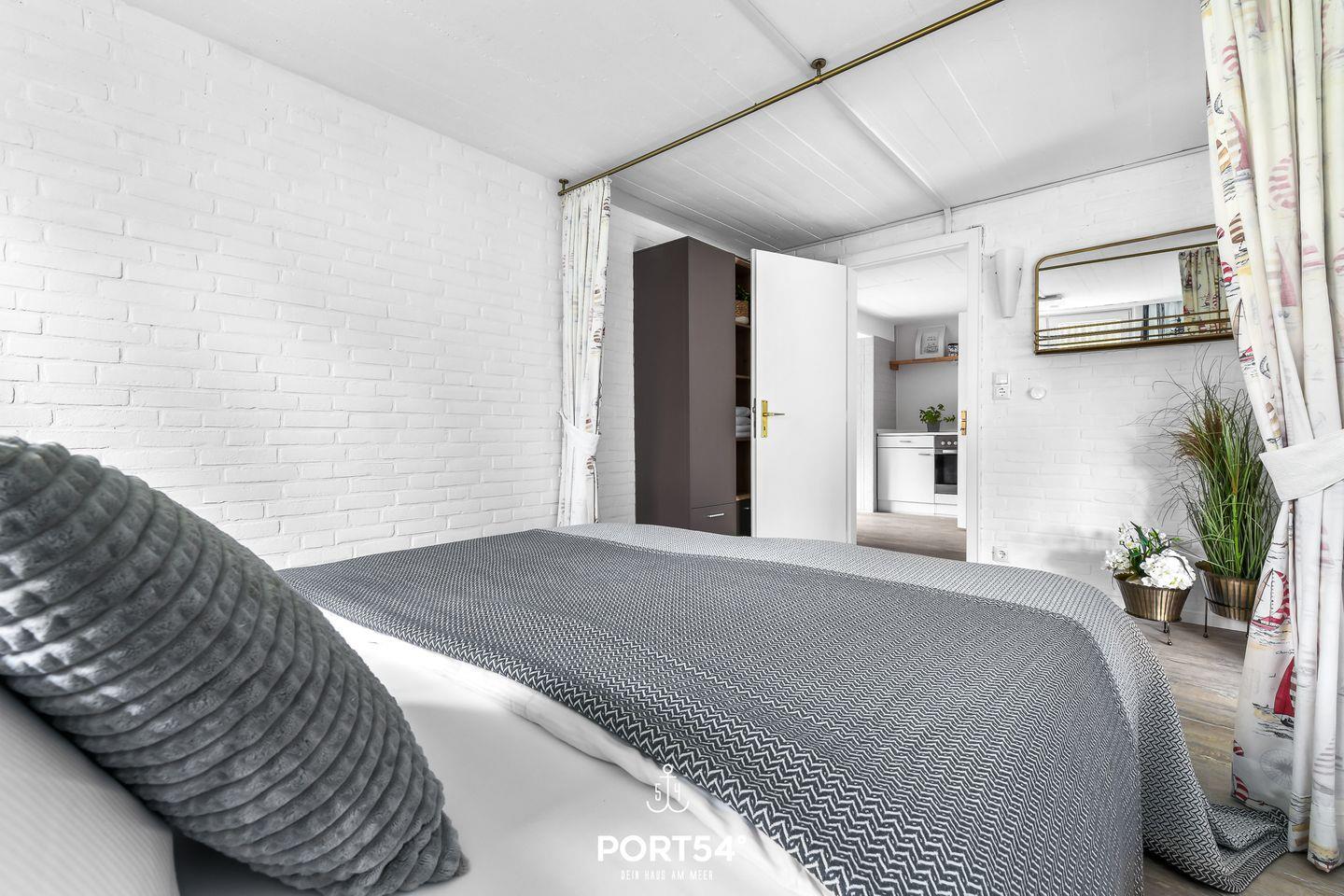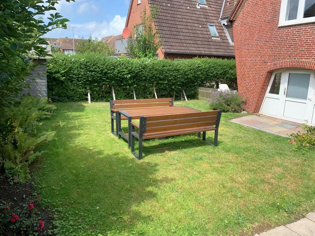 Die Ferienwohnung bietet auf 66m² einen offenen Wohn- und Essbereich mit Küche, zwei Schlafzimmer und zwei Badezimmer. Im Wohnzimmer gibt es einen Elektrokamin. Die Schlafzimmer bieten jeweils ein gemütliches Doppelbett (160x200cm). In dem Badezimmer finden Sie einen Föhn und eine Dusche. Der Garten bietet einen Strandkorb, Gartenmöbel und einen Sonnenschirm. Ein Außenstellplatz ist direkt am Haus vorhanden. Fahrräder können in einem gemeinsam genutzten Werkraum abgestellt werden.
