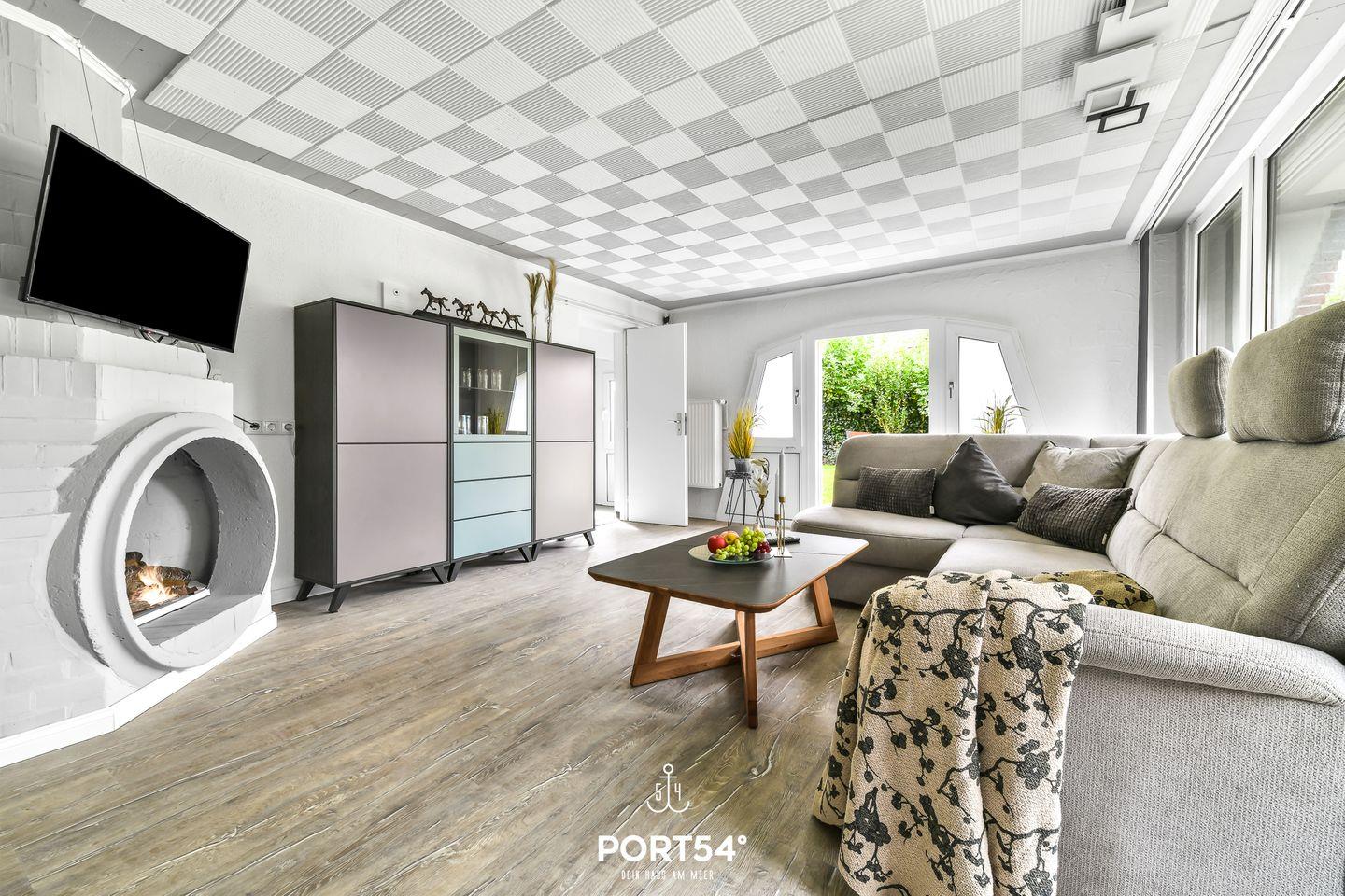 Willkommen im "Hausboot an der Lagune Unterdeck" in Büsum! Strandnah entspannen an der Nordsee! Die Ferienwohnung bietet auf 66m² einen offenen Wohn- und Schlafbereich mit Küche, zwei Schlafzimmer und zwei Badezimmer. Im Wohnzimmer kann auf dem Sofa vor dem Flachbild-TV entspannt werden, während der Elektro-Kamin für eine wohlige Wärme sorgt. In der vollausgestatteten Küche kann nach Lust und Laune gekocht werden. Für unsere kleinen Gäste gibt es einen Kinderhochstuhl und ein Kinderreisebett. Die Schlafzimmer bieten jeweils ein gemütliches Doppelbett (160x200cm) sowie ein Sichtschutz in Form von Gardinen zu Verfügung. Das Badezimmer verfügt unter anderem über einen Föhn und eine Badewanne, in dem anderen Badezimmer finden Sie neben einem Föhn eine Dusche vor. Der Garten bietet einen Strandkorb und Gartenmöbel, sodass einem erholsamen Urlaub nichts im Wege steht. Der Sonnenschirm sorgt für ein schattiges Plätzchen und lädt zu Lesestunden im Sommer ein. Ein Außenstellplatz ist vorhanden und im Werkraum können Fahrräder untergestellt werden.