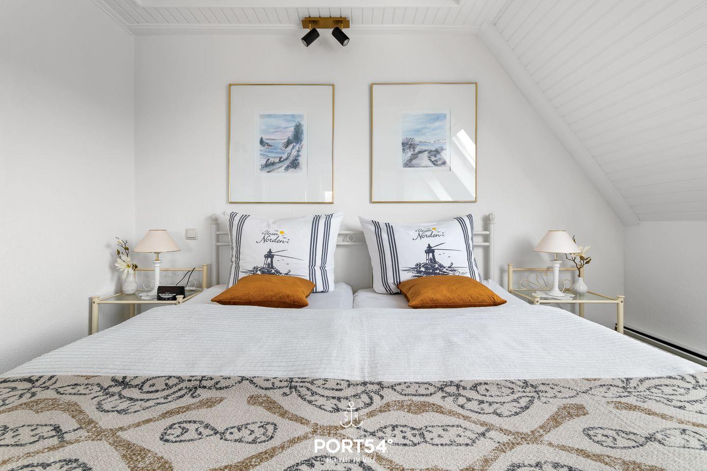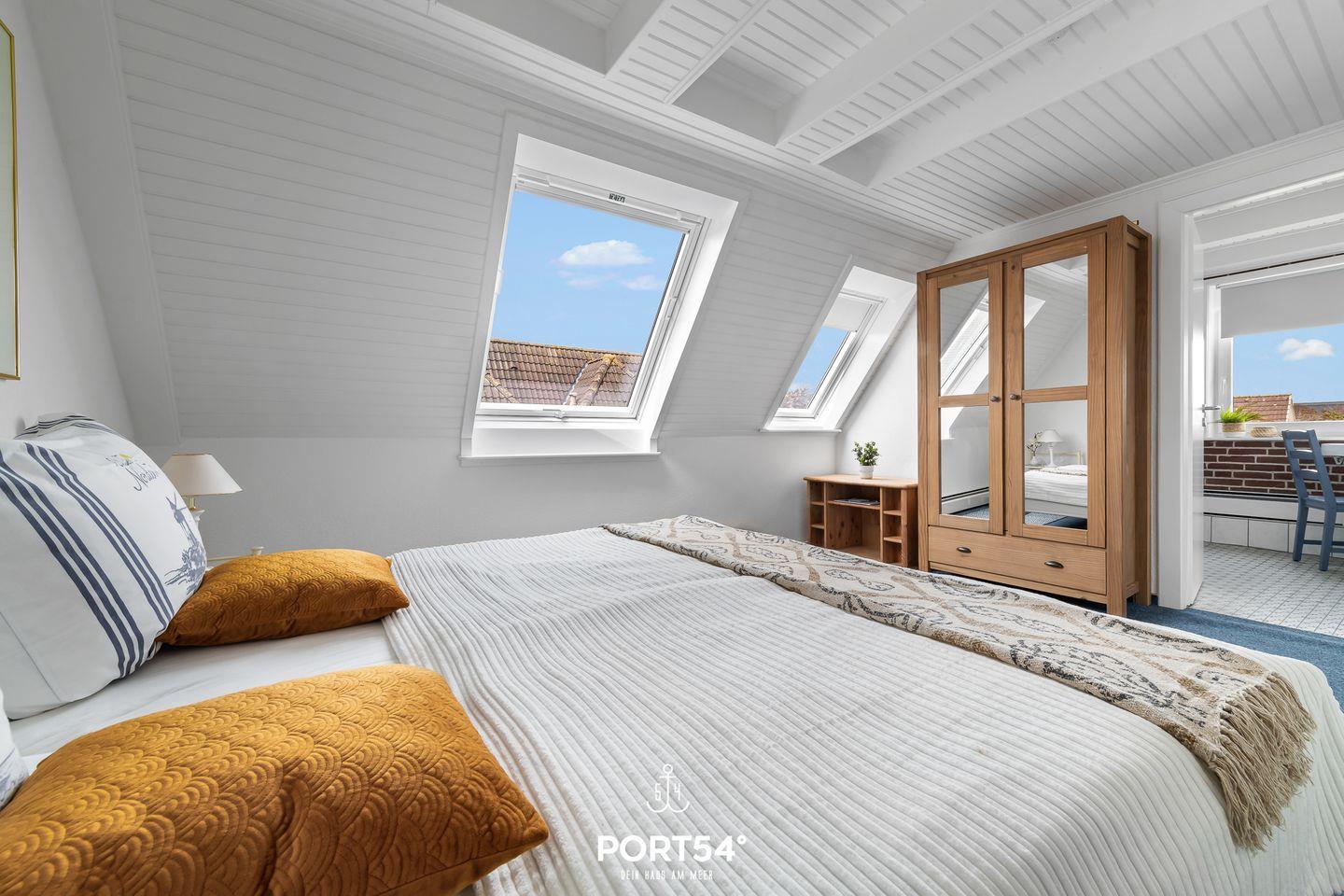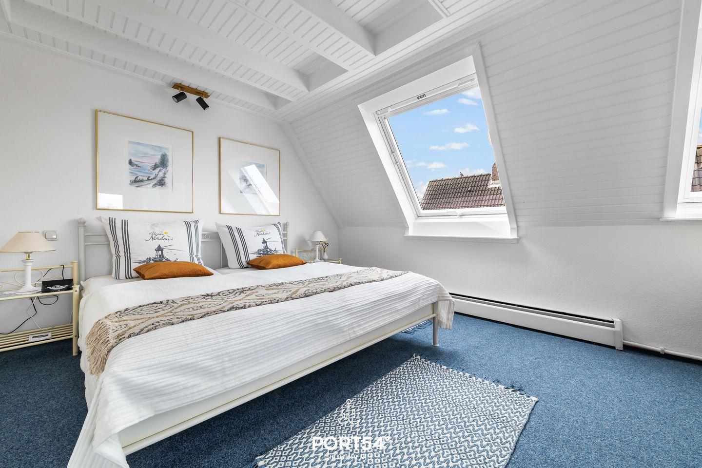 Die Strandnah gelegene Ferienwohnung bietet auf 82 m² einen offenen Wohn- und Essbereich mit Küche, zwei Schlafzimmer und ein Badezimmer. Eines der Schlafzimmer ist mit einem Doppelbett ausgestattet. Im Dachgeschoss stehen zwei einfache Einzelbetten zu Verfügung. Das Badezimmer verfügt über einen Föhn und eine Dusche. Ein Außenstellplatz am Haus ist vorhanden und Fahrräder können in einem gemeinschaftlichen Werkraum untergestellt werden.