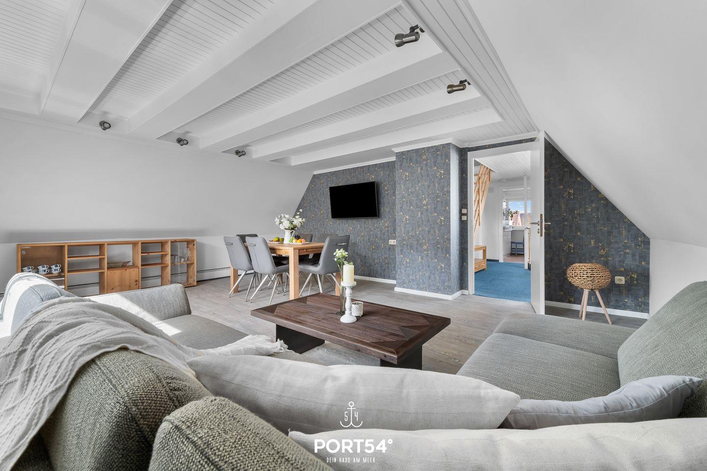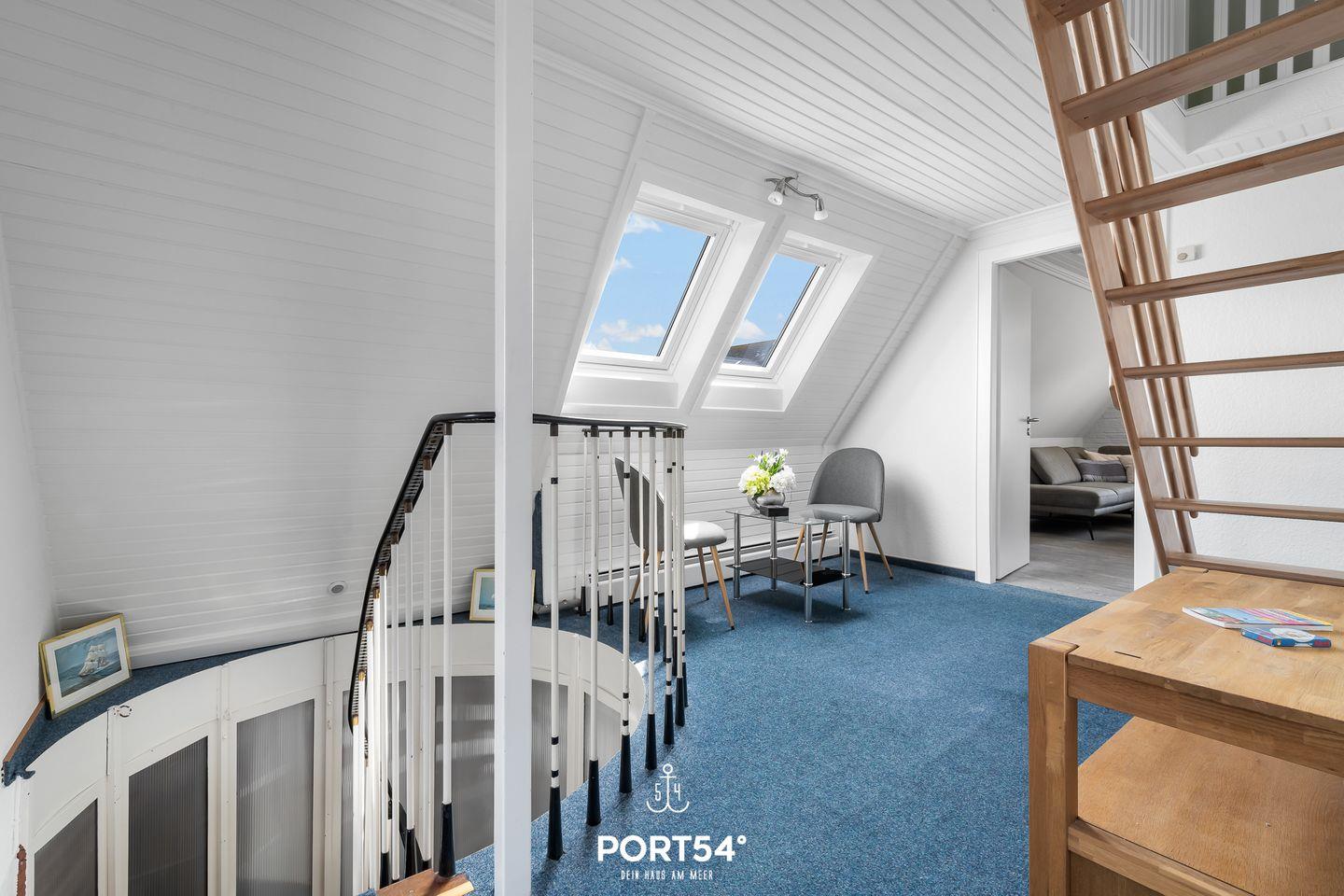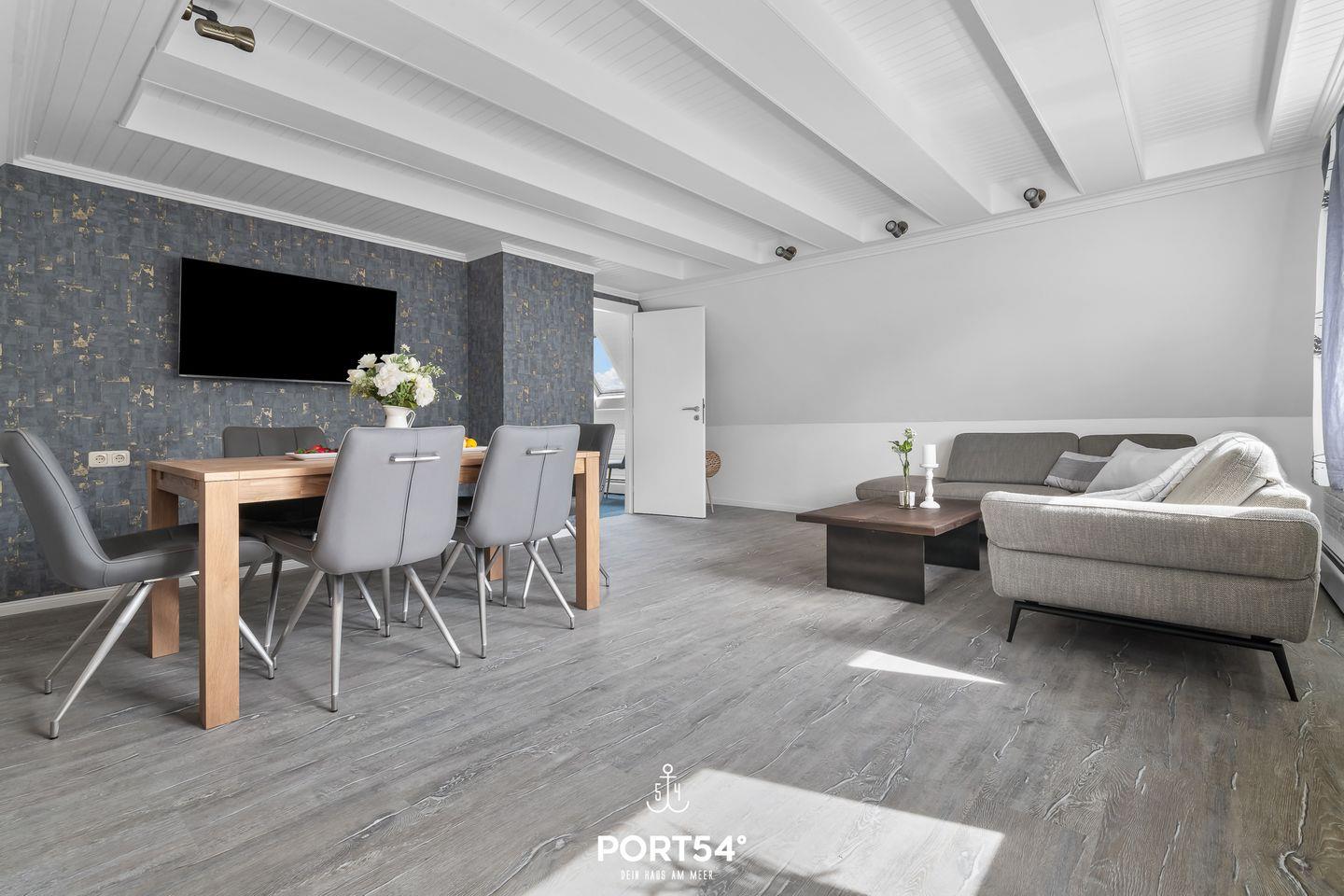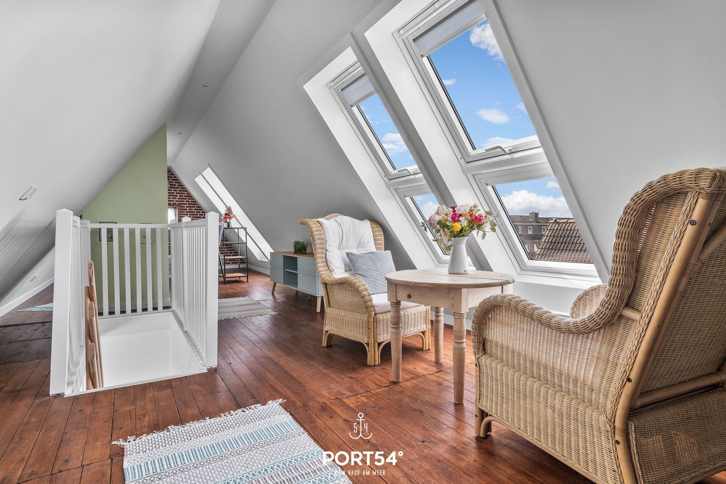 Herzlich Willkommen im "Hausboot an der Lagune Oberdeck" in Büsum! Strandnah entspannen an der Nordsee! Die Ferienwohnung bietet auf 82 m² einen offenen Wohn- und Essbereich, eine Küche und zwei Schlafzimmer sowie ein Bad. Im Wohnzimmer kann man sich auf dem Sofa vor dem Flachbildfernseher entspannen. In der voll ausgestatteten Küche kann nach Lust und Laune gekocht werden. Ein Schlafzimmer verfügt über ein bequemes Doppelbett und Verdunklungsmöglichkeiten. Das zweite Schlafzimmer, das durch eine Treppe in das Dachgeschoss führt, verfügt über zwei weitere einfache Einzelbetten. Für unsere kleinen Gäste gibt es einen Kinderhochstuhl und ein Kinderreisebett.