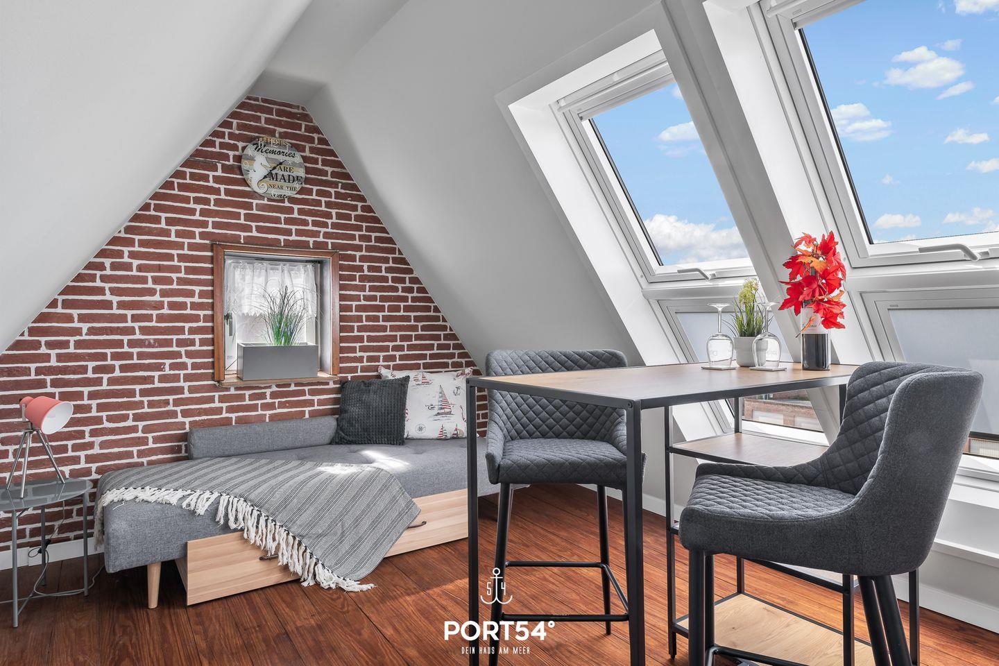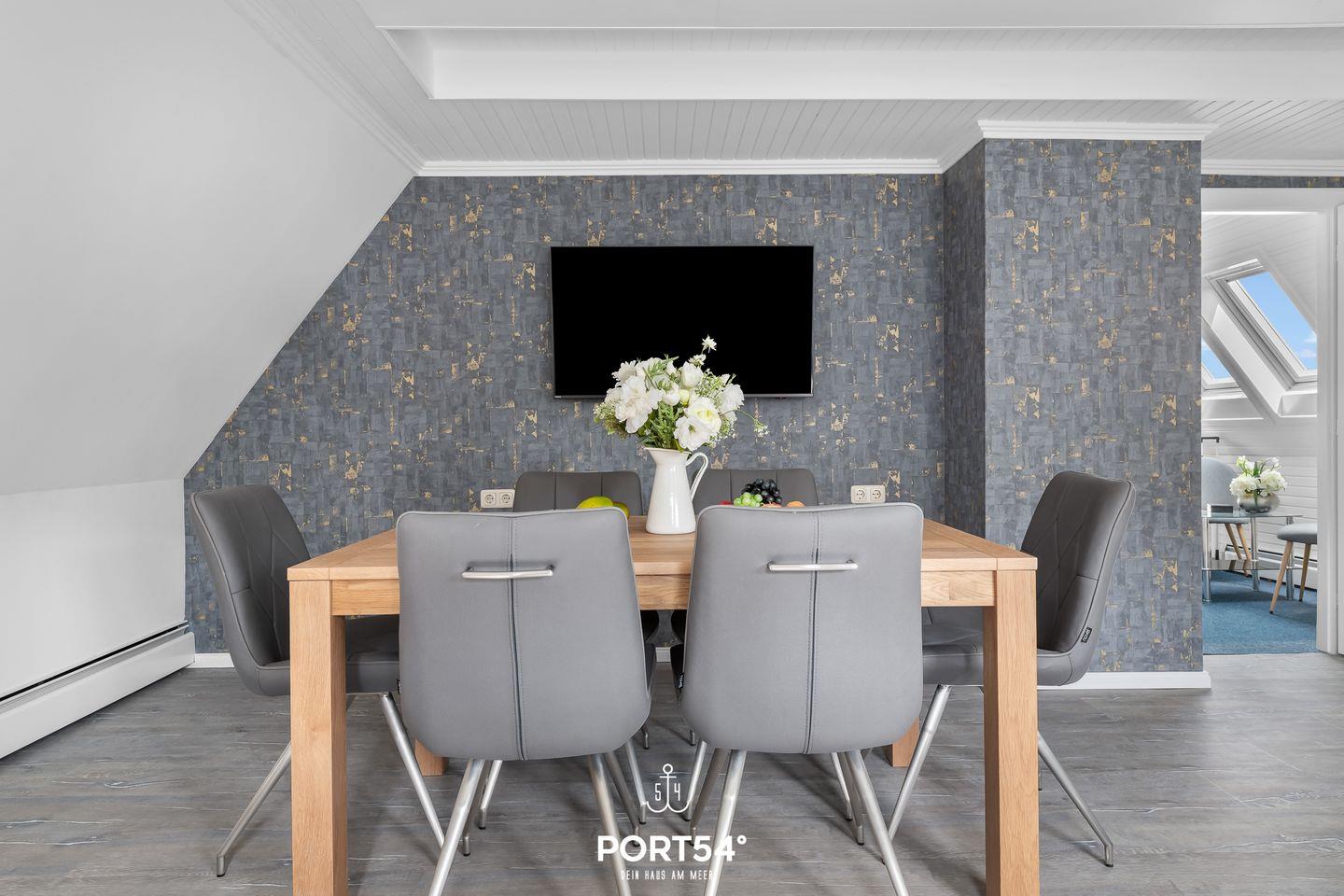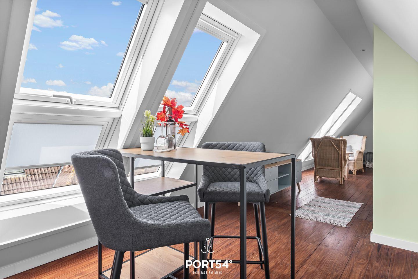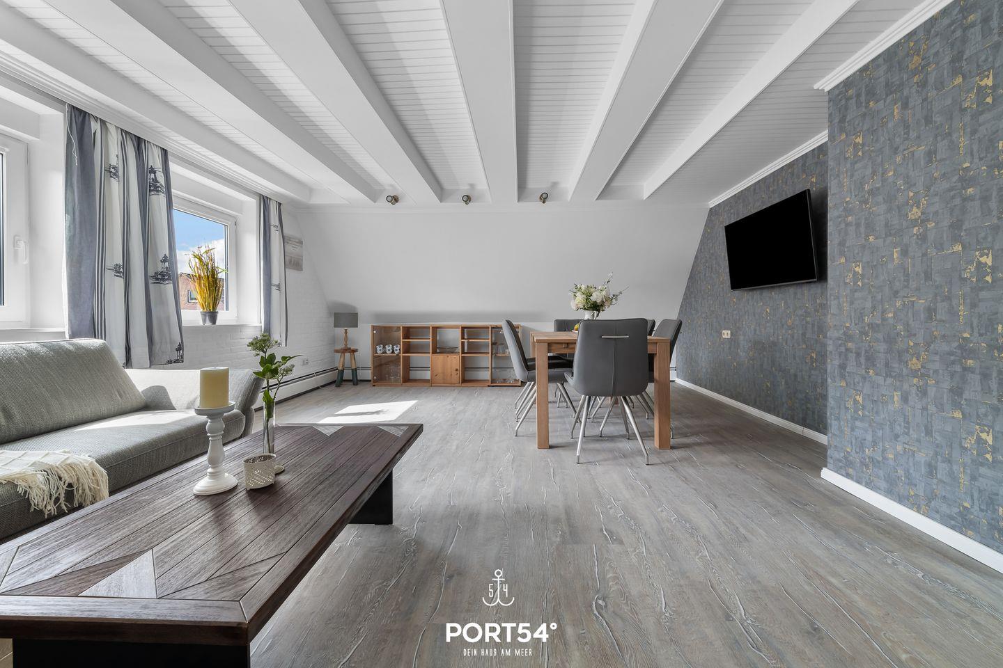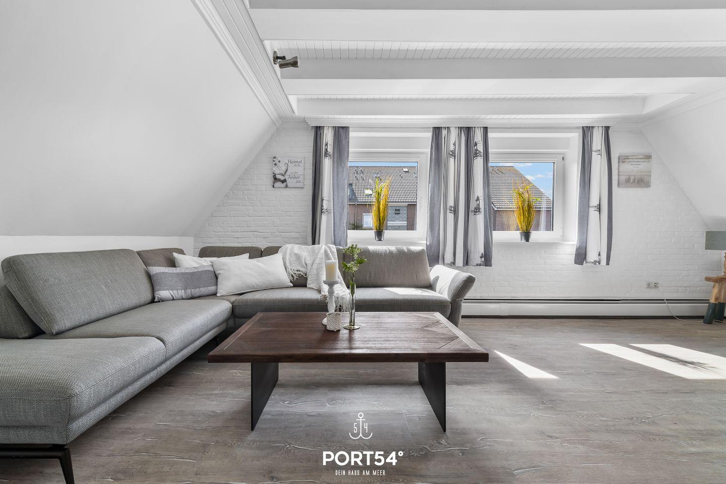 Herzlich Willkommen im "Hausboot an der Lagune Oberdeck" in Büsum! Strandnah entspannen an der Nordsee! Die Ferienwohnung bietet auf 82 m² einen offenen Wohn- und Essbereich, eine Küche und zwei Schlafzimmer sowie ein Bad. Im Wohnzimmer kann man sich auf dem Sofa vor dem Flachbildfernseher entspannen. In der voll ausgestatteten Küche kann nach Lust und Laune gekocht werden. Ein Schlafzimmer verfügt über ein bequemes Doppelbett und Verdunklungsmöglichkeiten. Das zweite Schlafzimmer, das durch eine Treppe in das Dachgeschoss führt, verfügt über zwei weitere einfache Einzelbetten. Für unsere kleinen Gäste gibt es einen Kinderhochstuhl und ein Kinderreisebett.