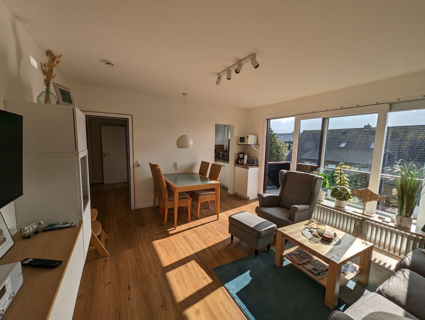 Endlich ist der wohlverdiente Urlaub da! Ausspannen, faulenzen und den Alltag vergessen, das ist die schönste Zeit des Jahres. Die kleine aber feine ca. 52m² große Ferienwohnung "Fischerbude" mit Meer- und Deichblick bietet Platz für ca. 5 Personen. Die kleine "Oase" verfügt über einen Wohn- und Essbereich mit Flachbildfernseher. Die Küche ist ausgestattet mit Filterkaffeemaschine, Kühlschrank mit Gefrierfach, Backofen, Wasserkocher, Toaster, Geschirrspüler, Herd, Kinderbesteck und Kindergeschirr und vieles mehr. Das Badezimmer ist mit Handtuchtrockner, Föhn und ebenerdiger Dusche ausgestattet. Die Wohnung hat 2 Schlafzimmer. Eines der Schlafzimmer ist mit zwei Einzelbetten (je 90x200cm) ausgestattet, die zu einem Doppelbett zusammengestellt werden können. Das andere Schlafzimmer ist mit einem ausziehbaren Etagenbett ausgestattet. Auch für unsere kleinen Urlauber/innen ist gesorgt. In der Wohnung befinden sich u.a. ein Hochstuhl und ein Kinderreisebett, so dass auch die jüngsten Mitbewohner/innen herrlich entspannen können.