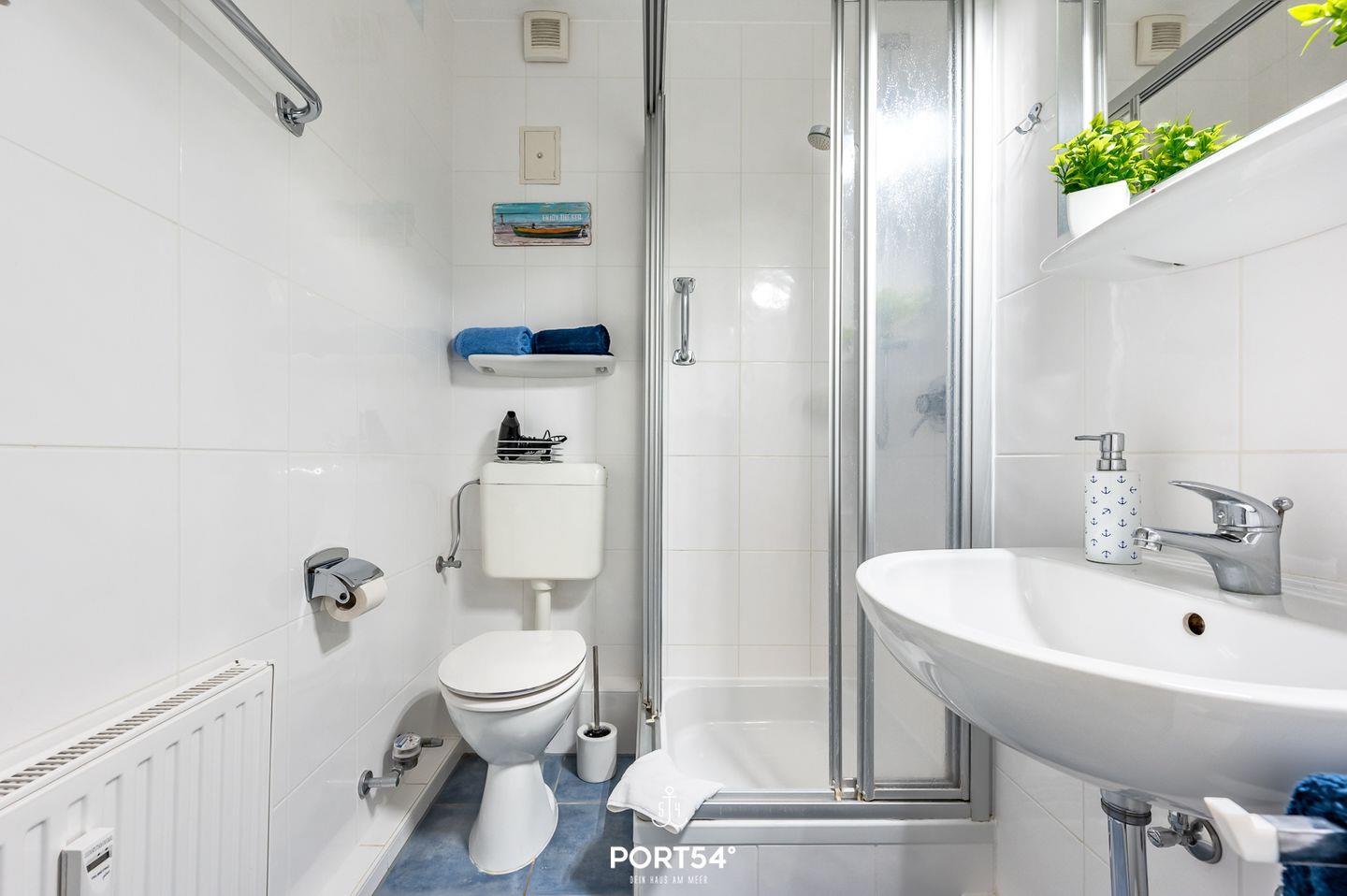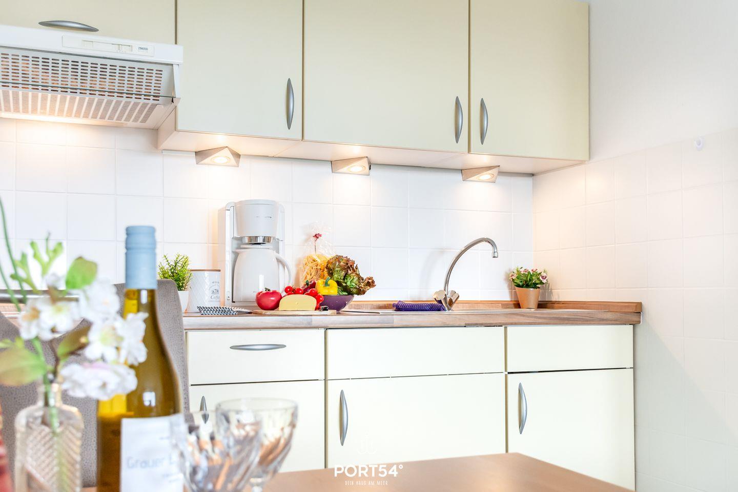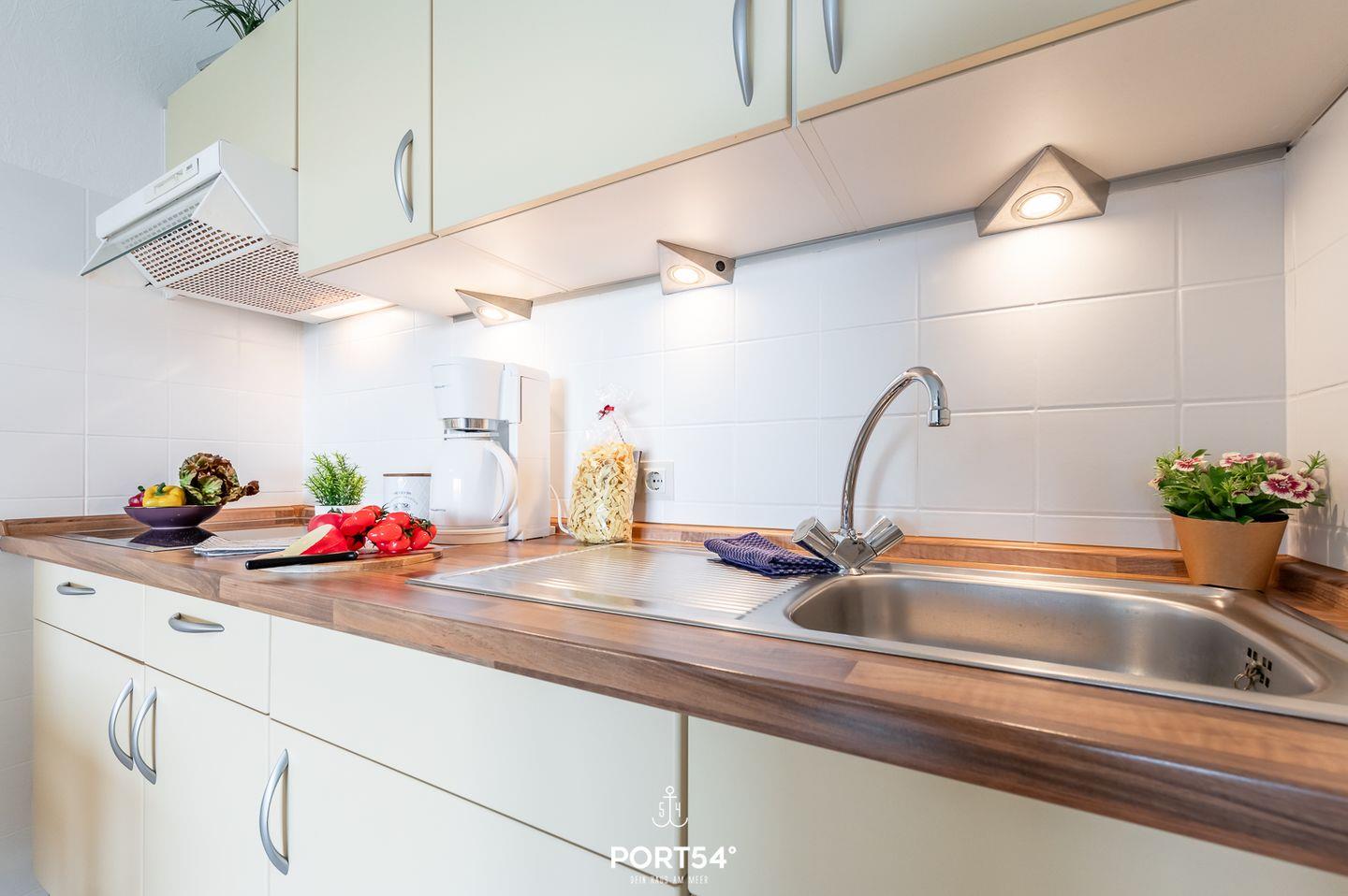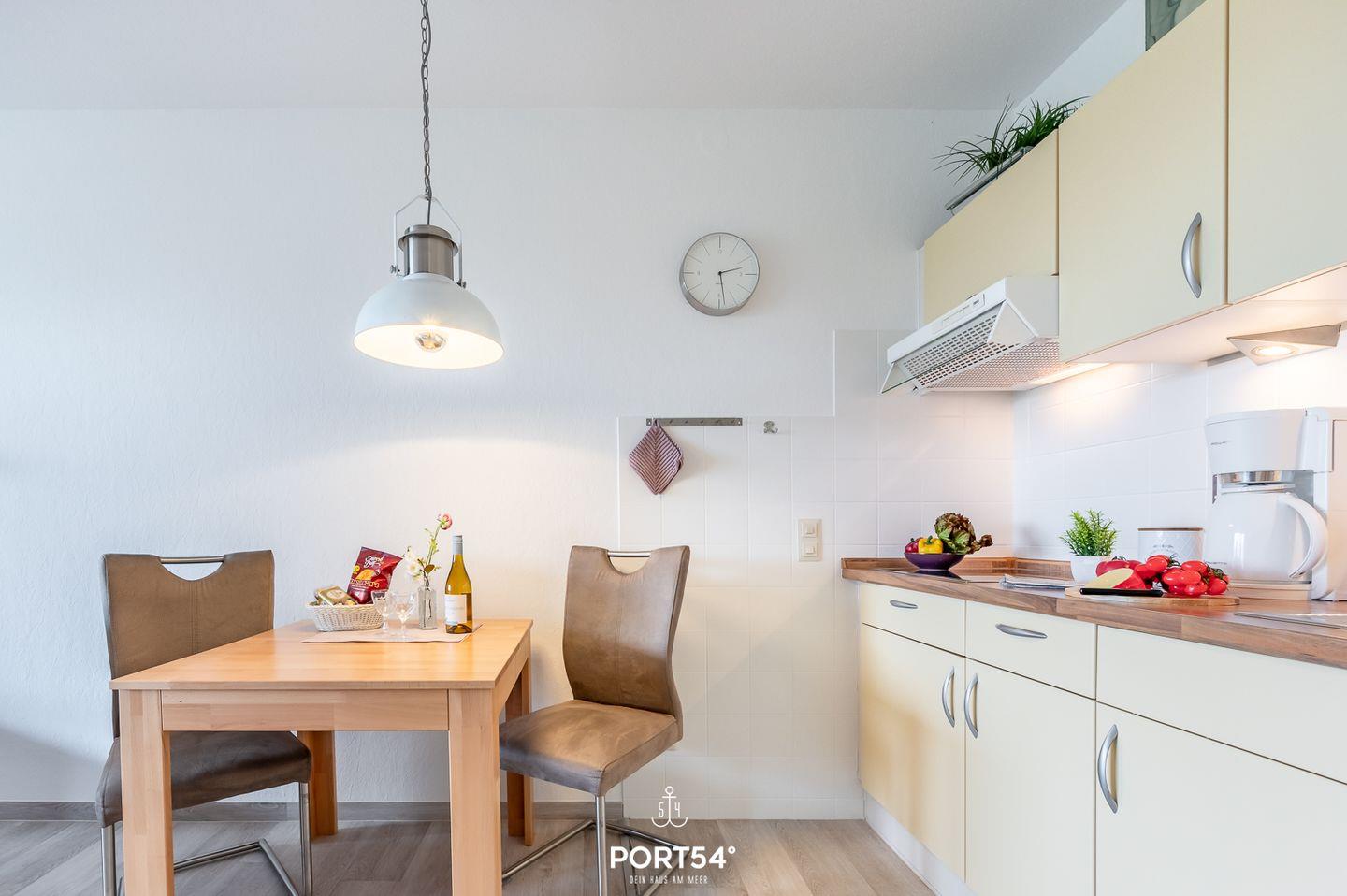 Die komfortable Ferienwohnung "Hafenschlösschen" befindet sich mit Blick auf den Hafen in der 1. Etage einer dreigeschossigen, ruhigen Wohnanlage. Sie bietet Platz für 2 Personen und ein Kleinkind, für das ein Reisebett und ein Hochstuhl zu Verfügung steht. Auf 40m² befindet sich ein Essbereich und eine Küchenzeile, die mit einer Filter-Kaffeemaschine, Kühlschrank mit Gefrierfach und einem Ceran-Kochfeld ausgestattet ist. Für die Nacht steht ein leicht aufklappbares Schrankbett zu Verfügung. Das Badezimmer ist mit einer Dusche, einem WC und Waschbecken ausgestattet. Für die Unterbringung steht im Flur ein geräumiger Einbauschrank zur Verfügung. Entspannen kann man sich auf auf dem Sofa und auf dem Balkon, der mit Gartenstühlen ausgestattet ist und einen Blick auf den Hafen ermöglicht. Für die warmen Tage steht eine Markise als Sonnenschutz zur Verfügung. Zudem kann das Fenster durch Rollläden abgedunkelt werden. Ebenfalls ist freies WLAN, ein Flachbild-TV und eine zugewiesene Parkmöglichkeit vorhanden. Auch Haustiere sind in dieser gemütlichen Wohnung ebenfalls willkommen. Aufgrund der Wohnungsgröße können Sie entweder mit einem Vierbeiner oder 2 kleinen (bis 5 kg jeweils) Hunden Ihren Urlaub dort verbringen.