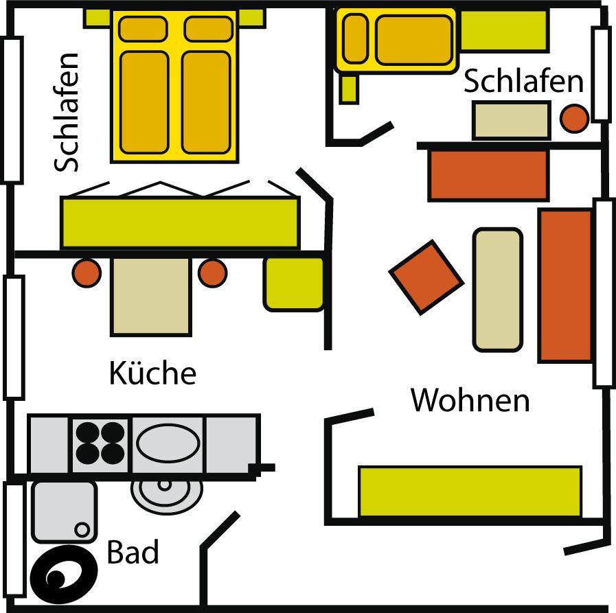 Die Ferienwohnung Robbe begrüßt Sie mit einer Wohnfläche von 61 m².