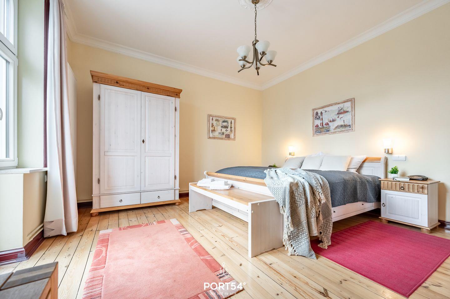 Die Ferienwohnung "Villa Büsum Norderpiep" bietet eine großzügige Wohnfläche von 95m² und besticht durch ihre komfortable Ausstattung sowie eine geräumige Dachterrasse. Die Unterkunft verfügt über insgesamt drei Wohn- bzw. Schlafräume, darunter ein Wohn- und Essraum sowie zwei separate Schlafzimmer. Im ersten Schlafzimmer erwartet Sie ein gemütliches Doppelbett, ein geräumiger Kleiderschrank, Nachtschränke sowie ein TV für entspannte Abende. Das zweite Schlafzimmer ist ideal für Familien oder Gruppen, da es über ein Doppelbett und ein Hochbett verfügt. Eine Sitzbank und ausreichend Stauraum runden die Einrichtung ab. Der Wohnbereich ist geschmackvoll eingerichtet und bietet zwei bequeme Ledersofas, einen großzügigen Esstisch mit Platz für sechs Personen und sechs Sesselstühle. Zur Unterhaltung stehen ein Flachbild-TV und eine Stereoanlage zur Verfügung. Die offene Küche ist komplett ausgestattet und verfügt über eine moderne Einbauküchenzeile, ein Cerankochfeld, eine Mikrowelle, einen Kühlschrank sowie einen Geschirrspüler, um Ihren Aufenthalt so angenehm wie möglich zu gestalten. Das Badezimmer ist mit einer Badewanne inklusive Duschabtrennung, WC, Waschbecken, einem Kinderwaschbecken, einem Handtuchtrockner und ausreichend Stauraum ausgestattet. Zu den weiteren Annehmlichkeiten gehören WLAN, eine großzügige Dachterrasse mit Gartenmöbeln und ein eigener Parkplatz. Die maximale Belegung der Ferienwohnung beträgt fünf Personen, was sie zu einer idealen Wahl für Familien oder kleine Gruppen macht. Genießen Sie Ihren Aufenthalt in der "Villa Büsum Norderpiep" mit all ihren Annehmlichkeiten und der gemütlichen Atmosphäre.