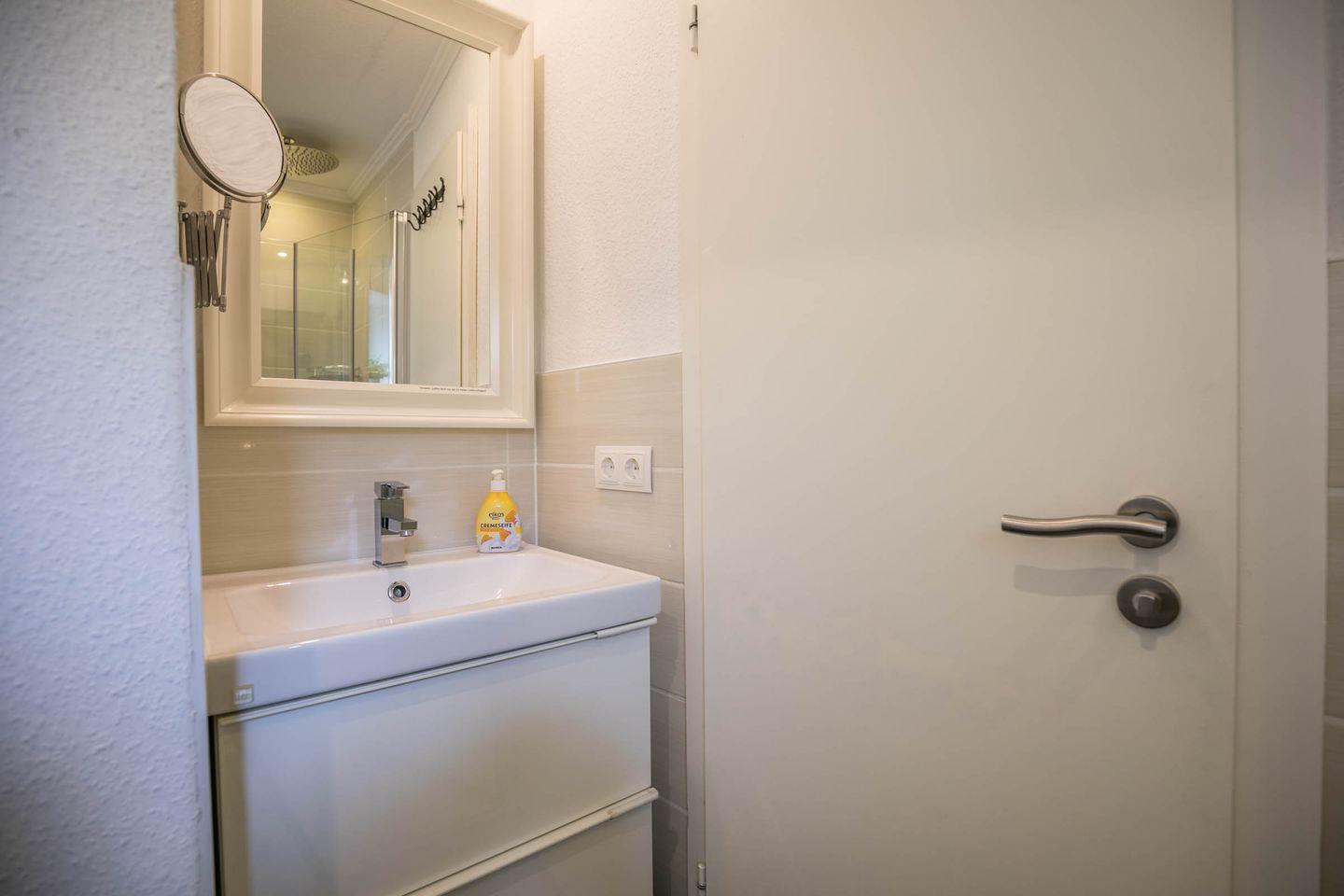 Sanitär: Tageslicht - Duschbad (Regendusche), Handtuchheizung, Haar-Föhn, Kosmetikspiegel