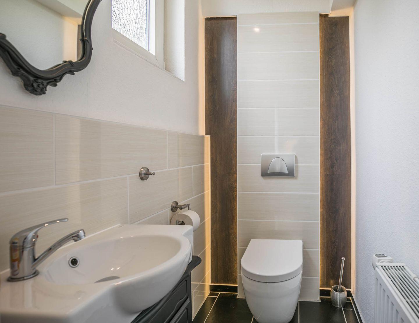 Sanitär: Tageslicht - Duschbad (Regendusche), WC separat, Handtuchheizung, Haar-Föhn, Kosmetikspiegel