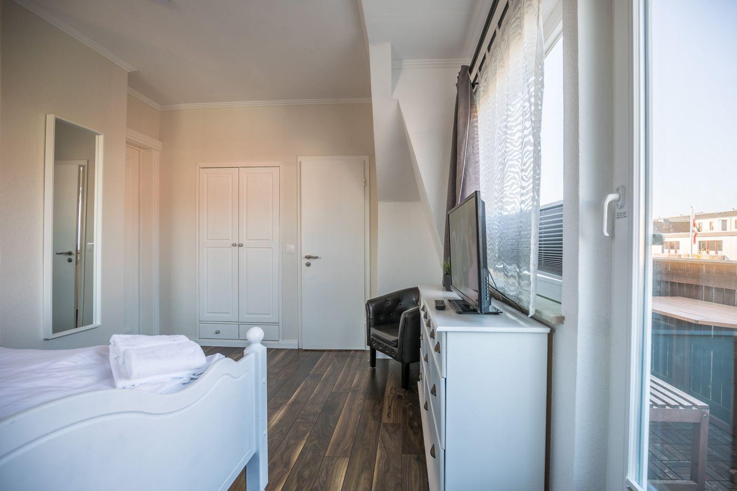 Eines der Schlafzimmer verfügt über ein Doppelbett (180x200 cm), mit zwei verstellbaren Lattenrosten und einem TV. Von diesem Schlafzimmer gelangen Sie auf den zu der Wohnung gehörenden Balkon. Das andere Schlafzimmer verfügt über ein (140x200 cm) Bett.