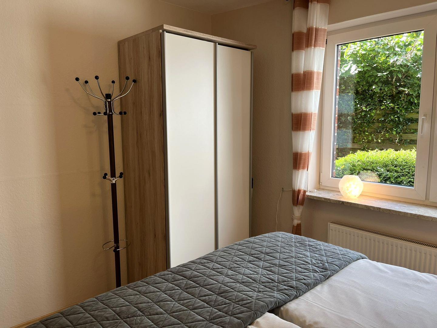 Das Schlafzimmer ist mit einem Doppelbett (2 Einzelmatratzen, 0,80x 2m), einem Schrank und Außenjalousien ausgestattet.