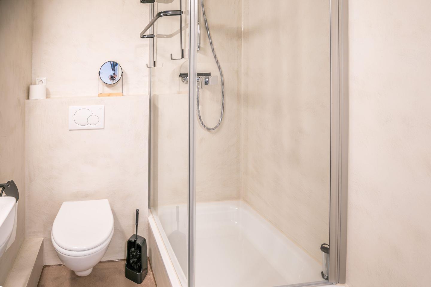 Vom Flur aus betreten Sie das sanierte Duschbad.
