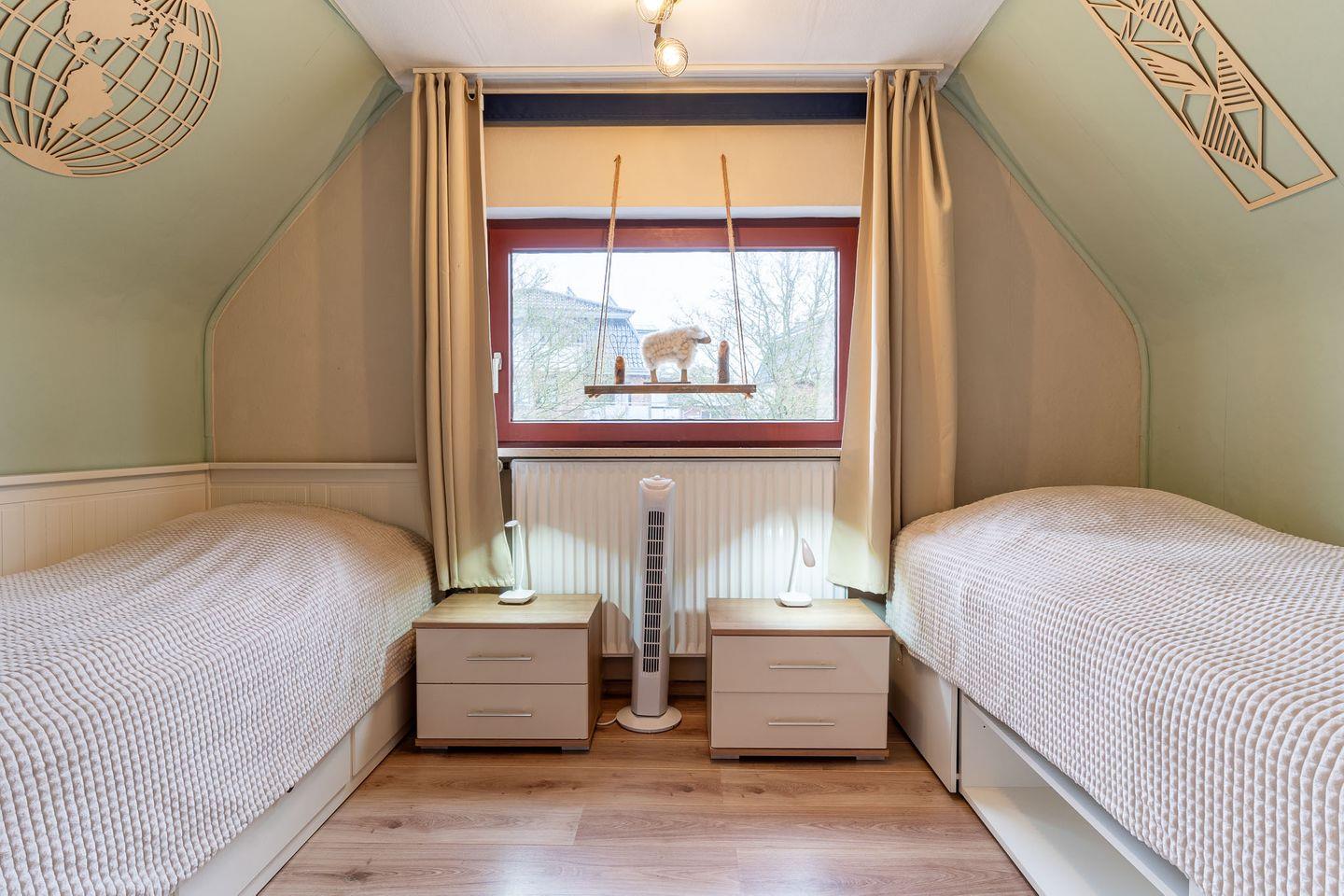 In der zweiten Etage befinden sich zwei Schlafzimmer, eines mit einem gemütlichen Doppelbett und das andere mit zwei Einzelbetten. Eine zusätzliche geschlossene Toilette mit Handwaschbecken steht ebenfalls zur Verfügung.