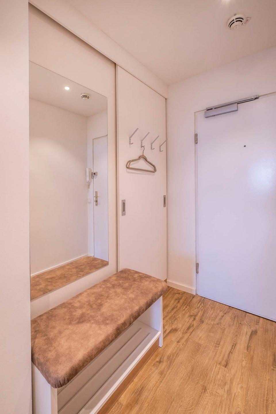 Im Keller befinden sich eine Waschmaschine und ein Trockner (beide gebührenpflichtig) und ein Abstellraum für Fahrräder. Der linke Aufzug befördert Sie in die 8.Etage.