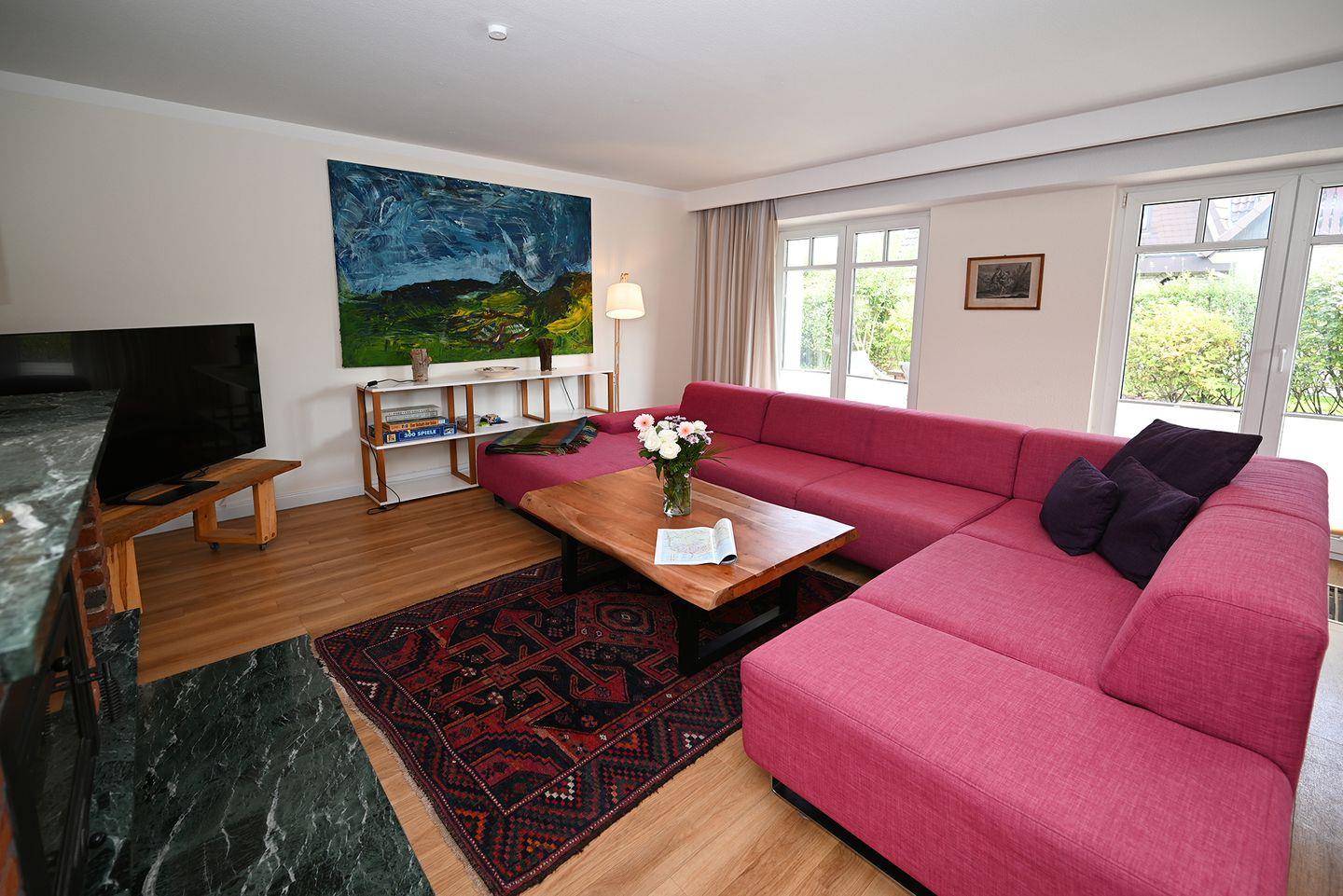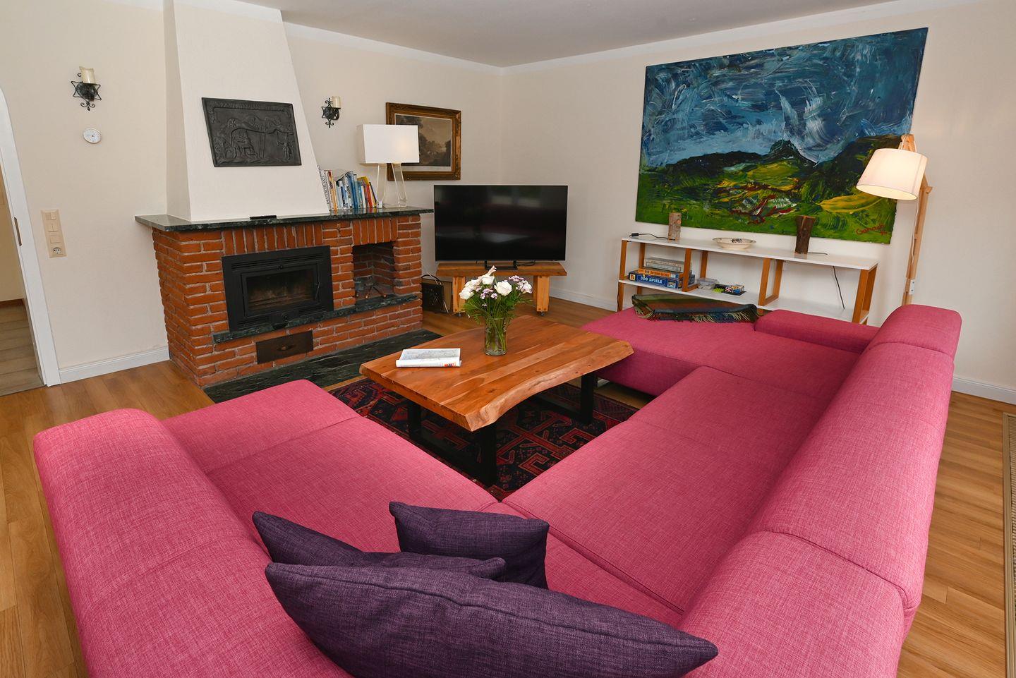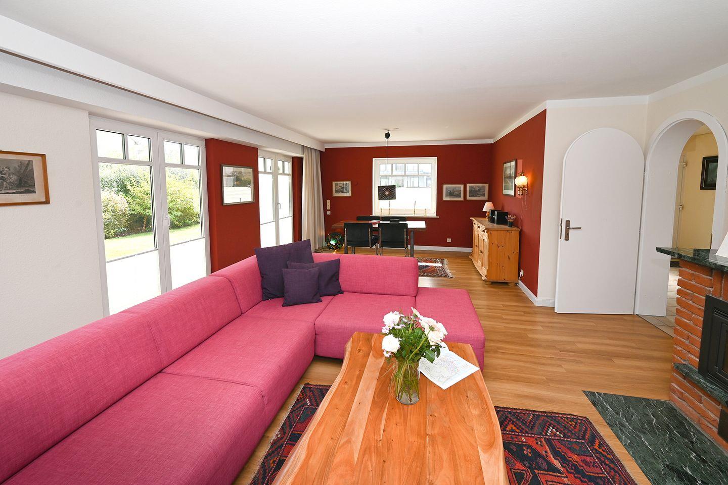 In dem gemütlichen Essbereich können Sie mit der ganzen Familie entspannte Stunden verbringen. Der Wohnbereich lädt ebenfalls zum gemütlichen Verweilen ein.