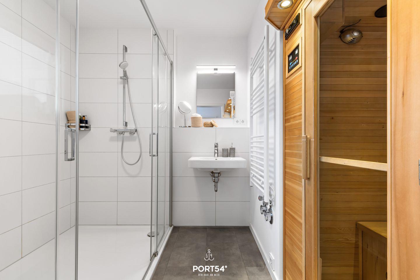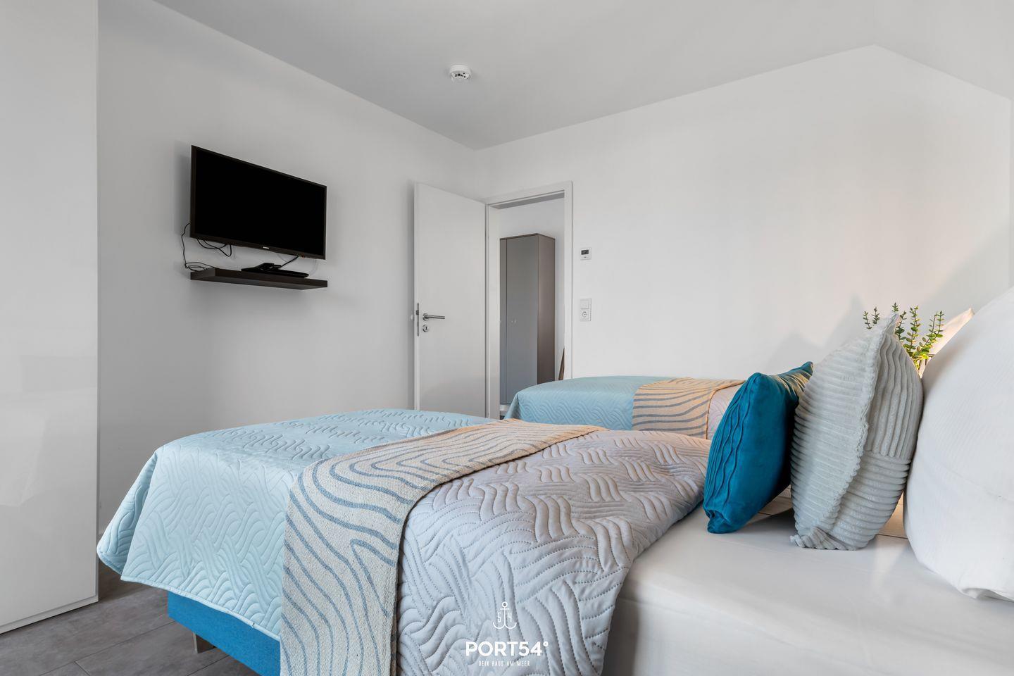 Die Ferienwohnung "Fischers Koje" bietet auf ca. 80m² Platz für bis zu 5 Personen. Neben einem offenen Wohn- und Essbereich mit angrenzender, moderner und hochwertig ausgestatteter Küche, verfügt die Wohnung über zwei Schlafzimmer, ein Badezimmer und einen großen Balkon. Im gemütlichen Wohnbereich lädt ein Kamin dazu ein, es sich an kalten Tagen gemütlich zu machen. Eines der beiden Schlafzimmer verfügt über ein Doppel-Boxspringbett (180x200cm) und einen TV, das andere bietet zwei Einzelboxspringbetten (je 90x200cm) und ebenfalls einen TV. Das geräumige Badezimmer verfügt über eine ebenerdige Dusche. Nach einem Spaziergang im Winter können Sie sich in der Infrarot-Sauna wieder aufwärmen. Alle Zimmer verfügen über Verdunkelungsmöglichkeiten und Insektenschutz. Genießen Sie den Abend auf dem mit Gartentisch & Stühlen, sowie Elektrogrill ausgestattetem Balkon.