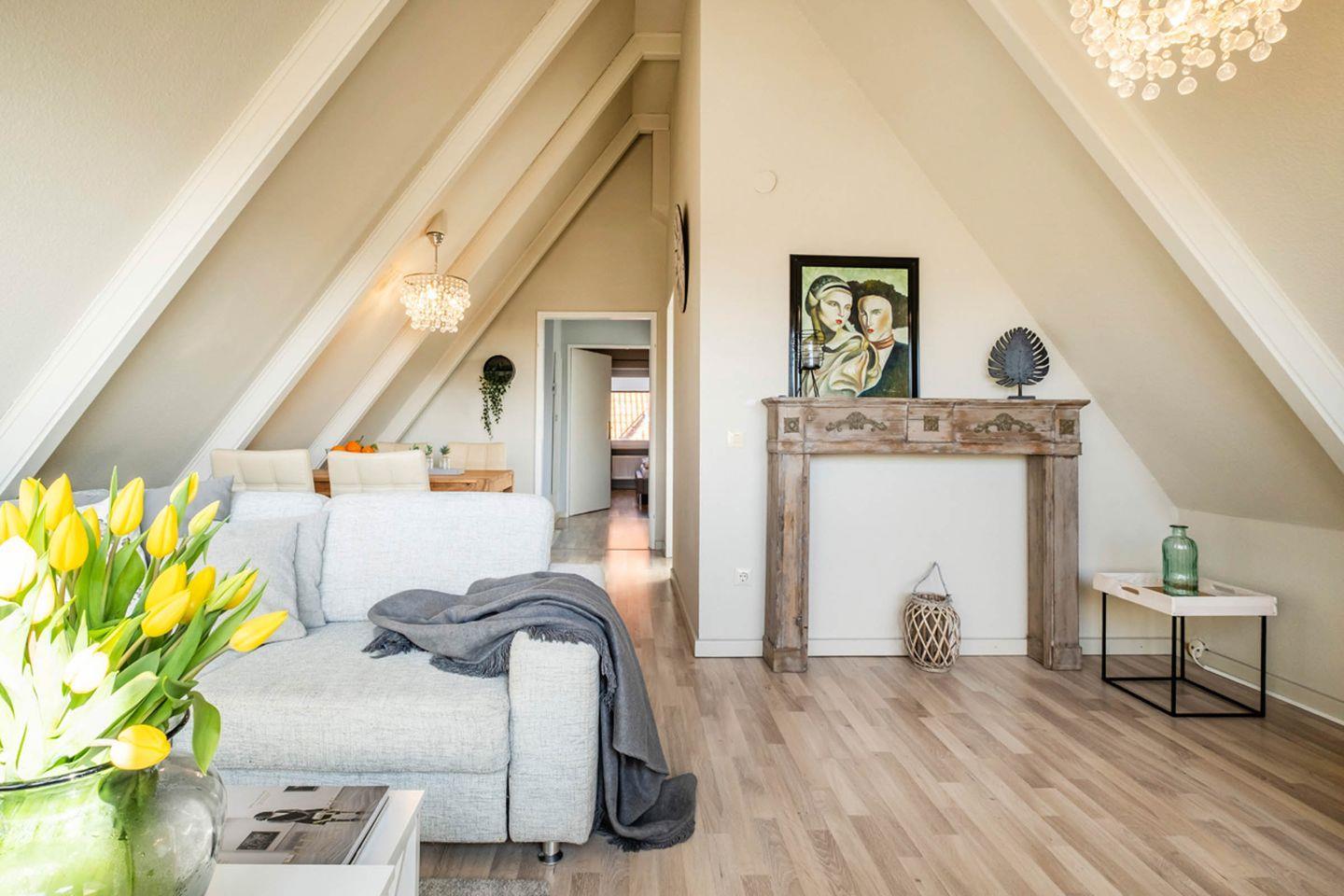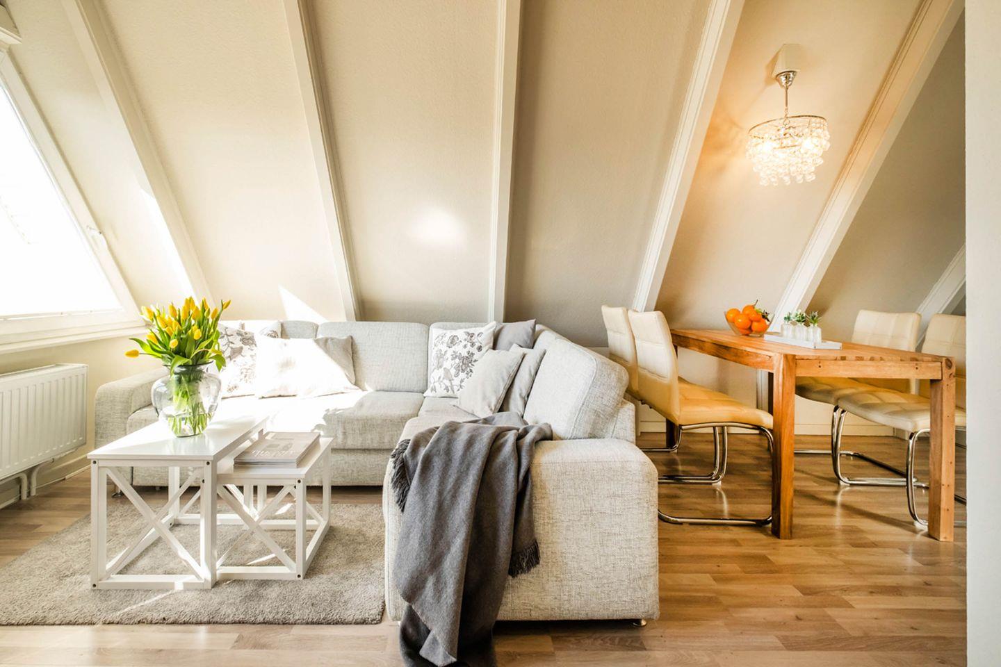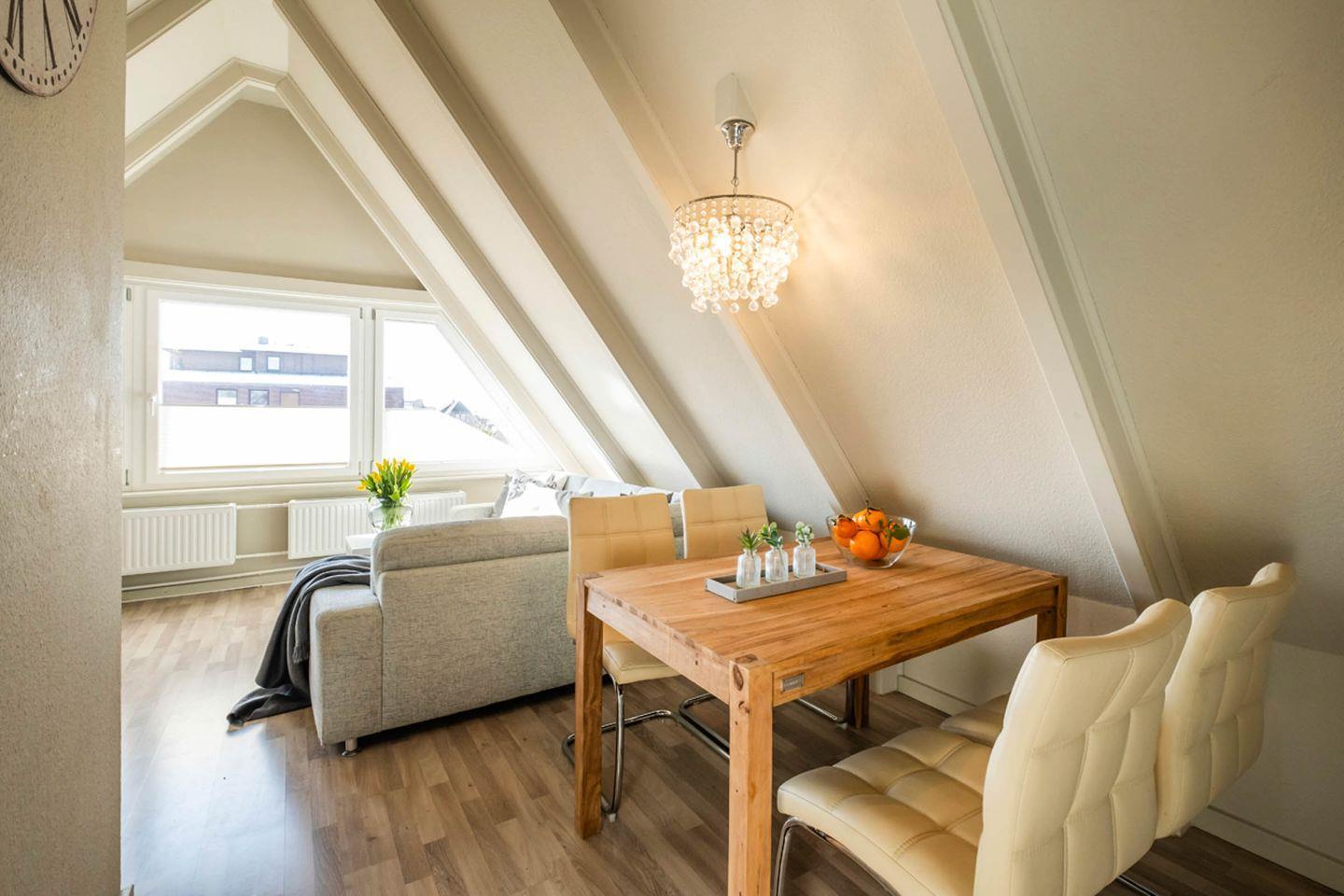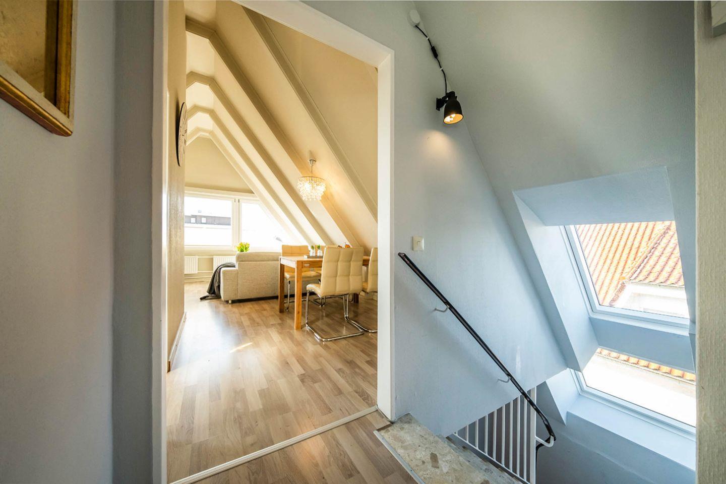 Die Ferienwohnung liegt im Dachgeschoss und verfügt über keinen eigenen Balkon.