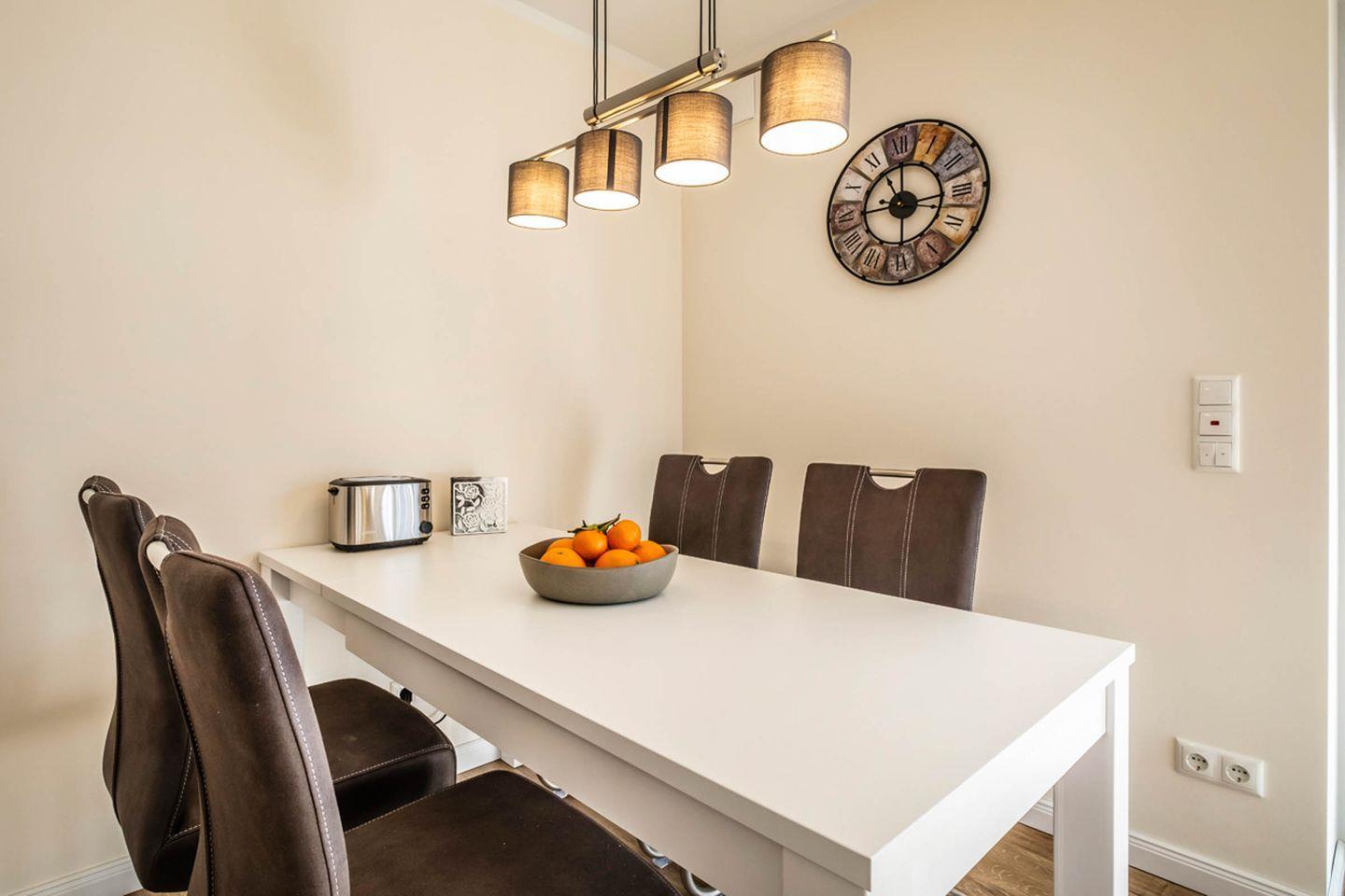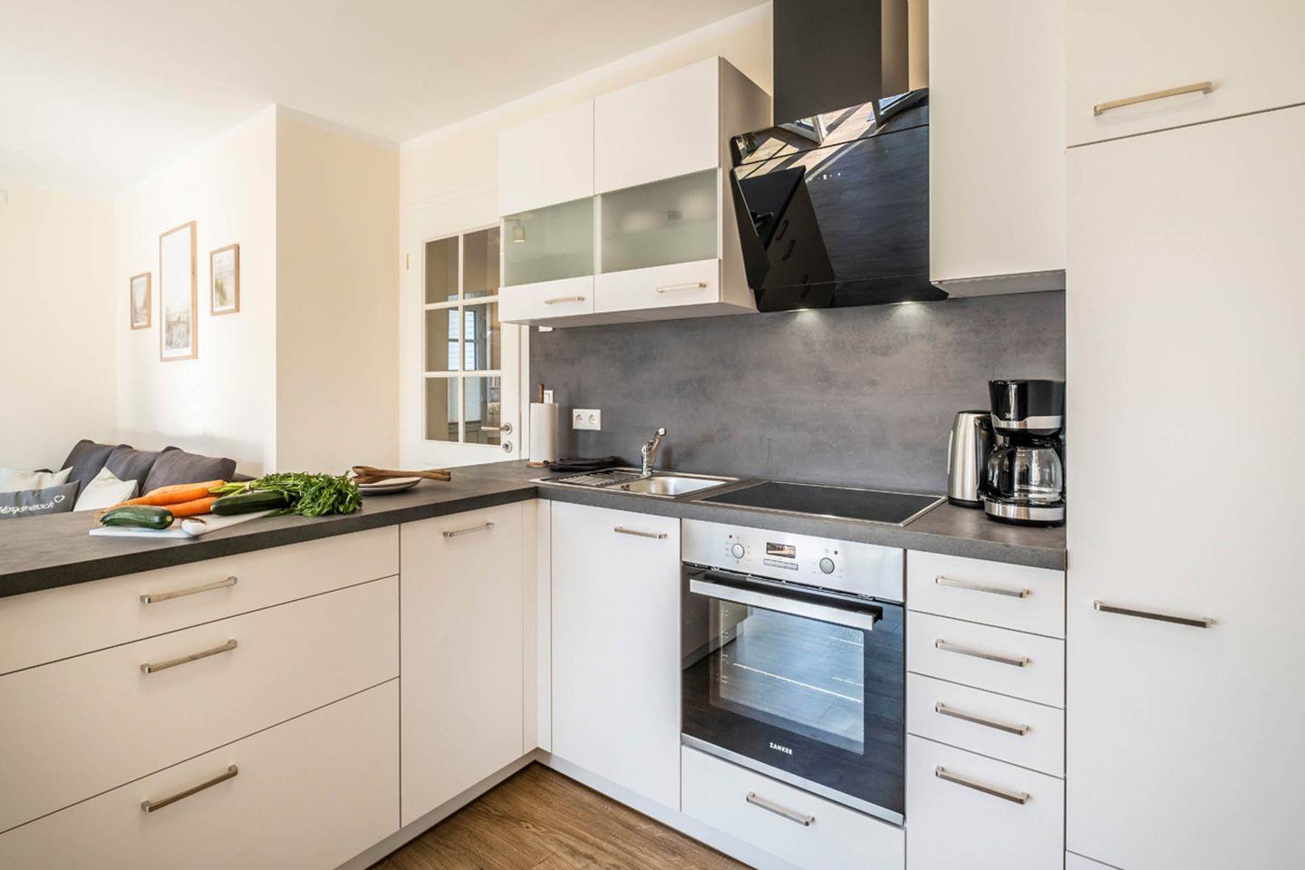 Eine der besonderen Vorzüge dieser Ferienwohnung ist die gut ausgestattete Küche. Sie verfügt über alle notwendigen Küchenutensilien, damit Sie Ihre eigenen leckeren Mahlzeiten zubereiten können. Vom Kühlschrank über einen Cerankochfeld und Backofen bis hin zu einer Kaffeemaschine – hier ist alles vorhanden. Genießen Sie Ihre Mahlzeiten auf der Terrasse, wo Sie die frische Seeluft und die Umgebung in vollen Zügen genießen können.