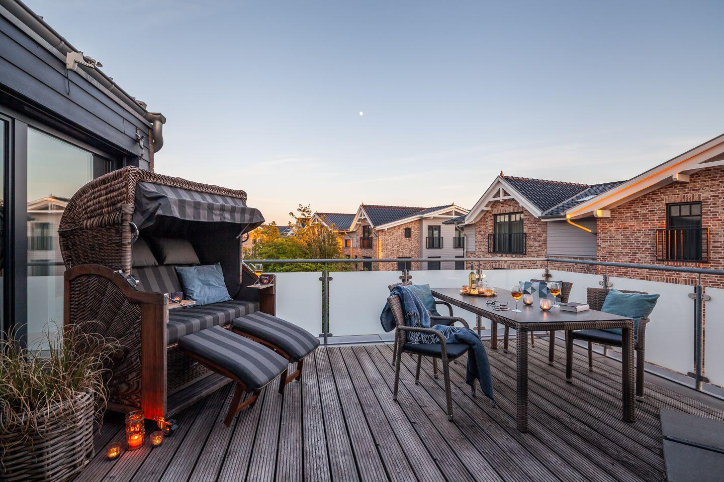 Dieses stilvoll eingerichtete Loft bietet Platz für bis zu 4 Personen und verfügt über 2 gemütliche Schlafzimmer, ideal für Familien oder Paare. Ein Highlight ist die großzügige Dachterrasse, auf der Sie die frische Nordseeluft genießen und entspannte Stunden im Strandkorb verbringen können.