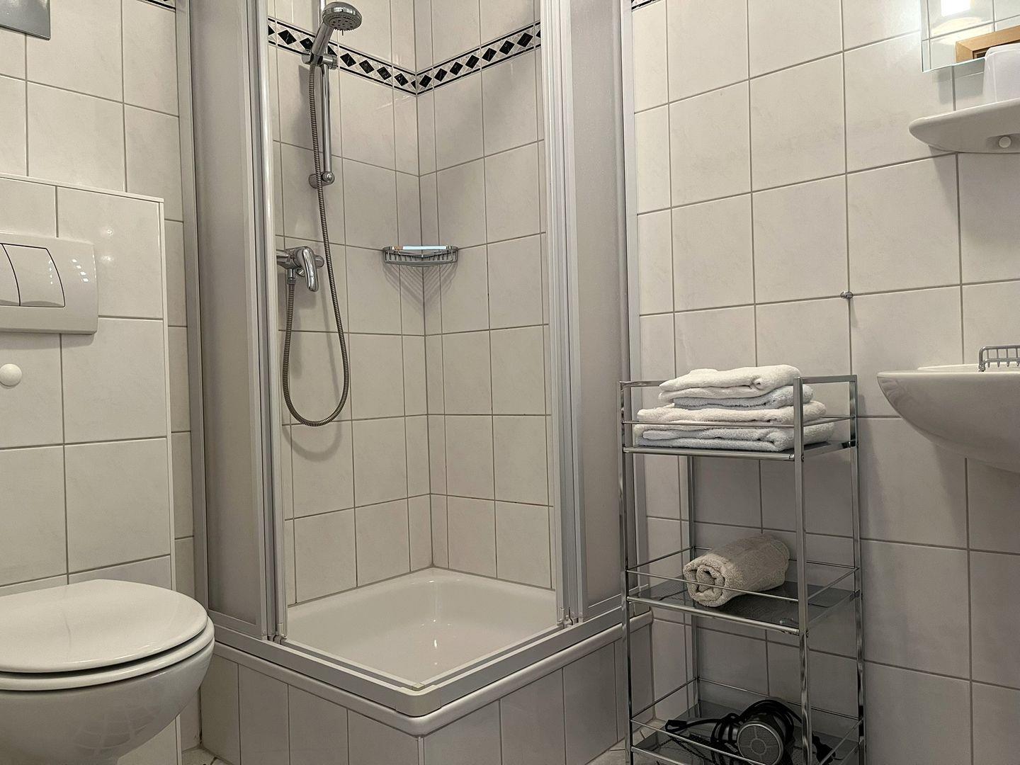 Das Schlafzimmer lädt mit einem weiteren Laminatboden und einer ruhigen Atmosphäre zum Träumen ein. Sie genießen einen erholsamen Schlaf, um für die Abenteuer eines neuen Tages gut gerüstet zu sein. Das moderne Badezimmer mit Dusche und Haartrockner macht die morgendliche Routine zum reinsten Vergnügen.