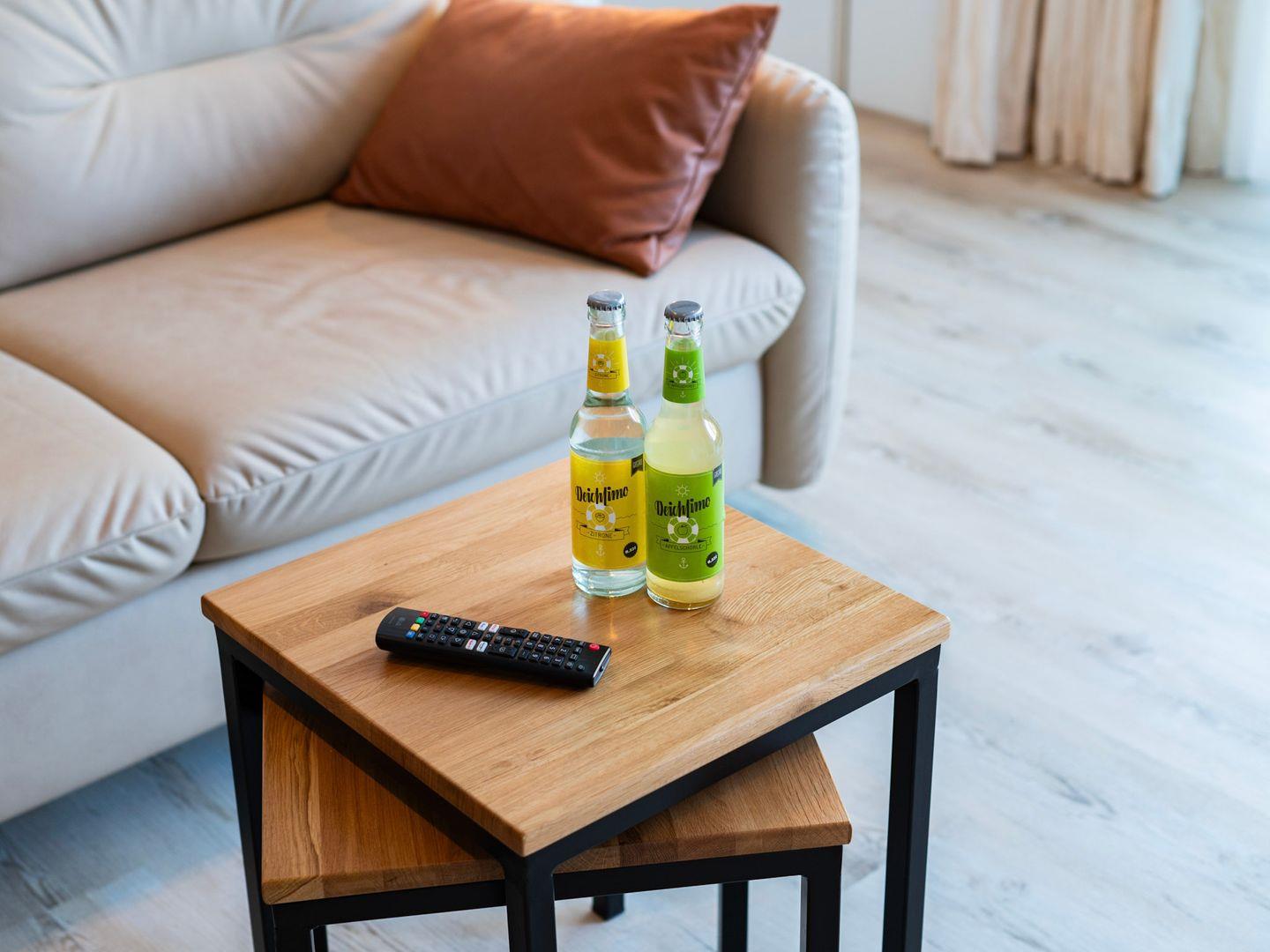 Insgesamt bietet die Wohnung zwei gemütliche Schlafzimmer, die für erholsame Nächte sorgen. Der offene Wohnbereich mit einer komfortablen Sofaecke und einem großen Esstisch lädt dazu ein, gesellige Abende zu verbringen und gemeinsame Mahlzeiten zuzubereiten. Die moderne, voll ausgestattete Küche ist mit einem Ceranherd, einem Elektrobackofen, einer Spülmaschine und weiteren Annehmlichkeiten wie einer Kaffeemaschine und einer Nespresso-Maschine ausgestattet – hier können Sie all Ihre kulinarischen Wünsche verwirklichen.