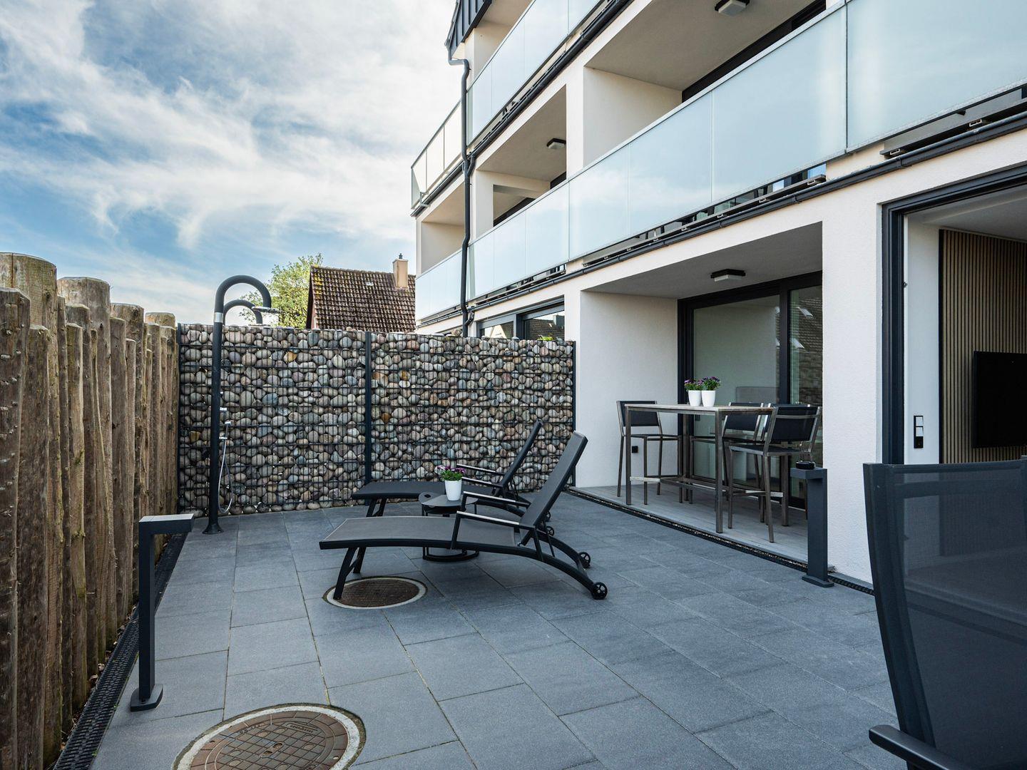 Genießen Sie die frische Meeresbrise auf Ihrer Terrasse, ausgestattet mit Gartenmöbeln, wo Sie die Abende ausklingen lassen oder einfach den Tag planen können. Der Aufenthalt in dieser Wohnung verspricht nicht nur Komfort, sondern auch erholsame Momente in einer traumhaften Umgebung.
