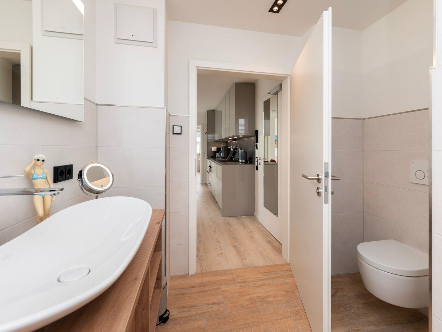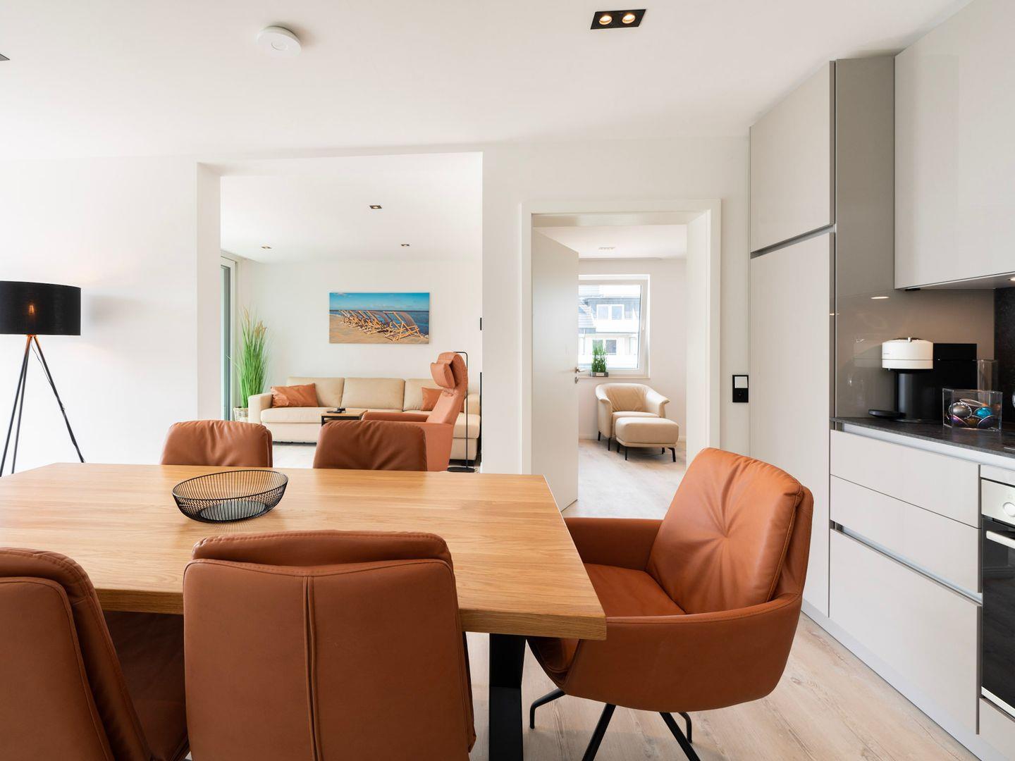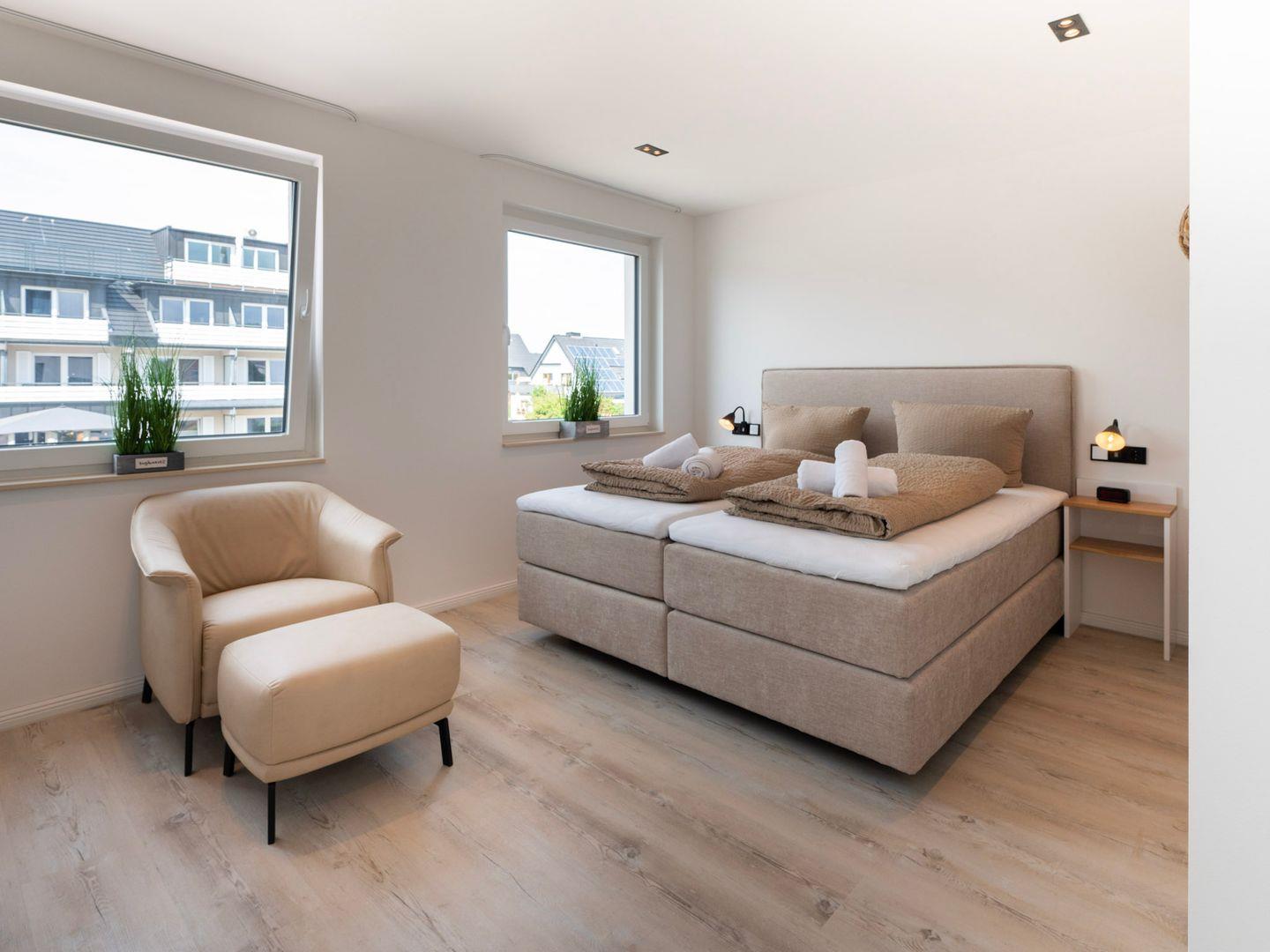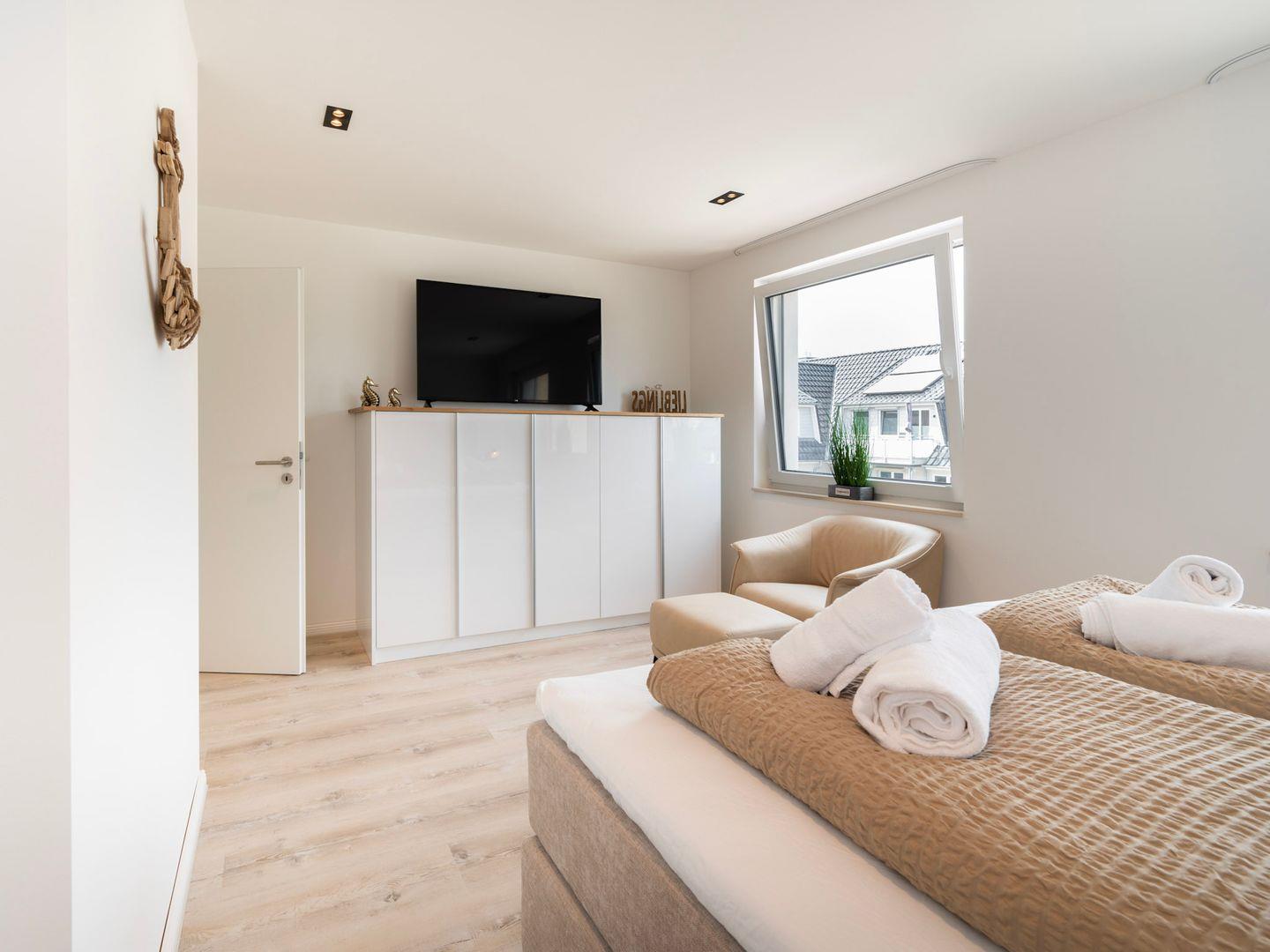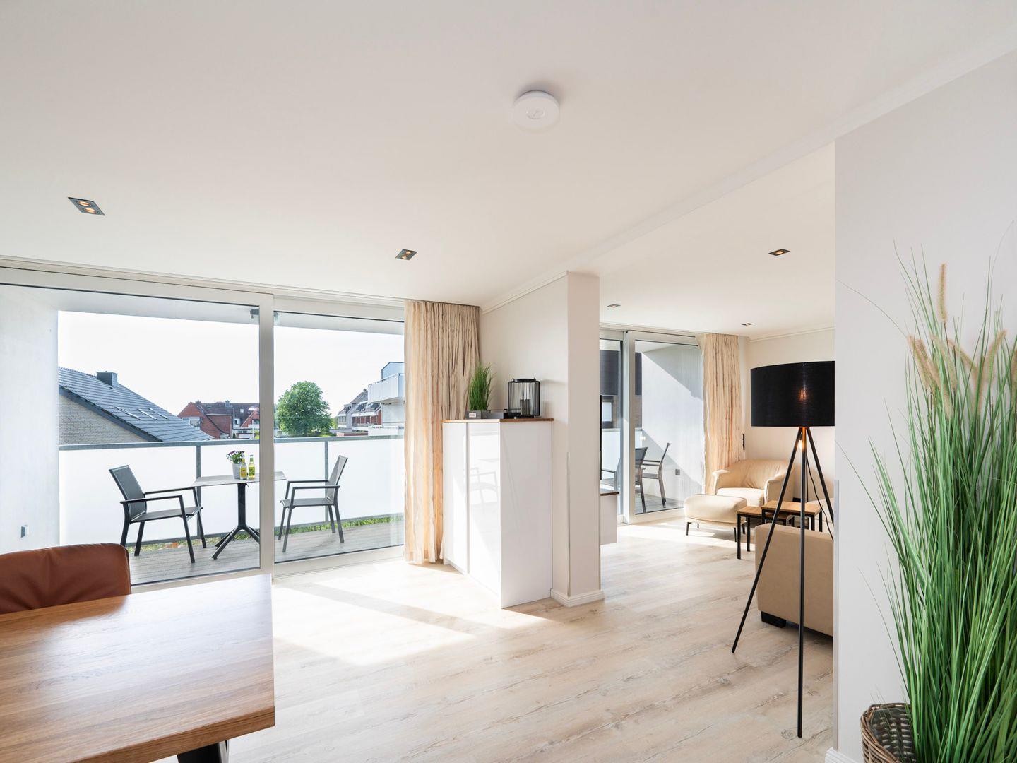 Die Wohnung ist für Allergiker geeignet und mit Fußbodenheizung ausgestattet, was für ein angenehmes Raumklima sorgt. Besonders schön ist der eigene Balkon, auf dem Sie bei einer Tasse Kaffee oder einem Glas Wein die frische Nordseeluft genießen können. Der modernen Einrichtung sind keine Grenzen gesetzt: Gemütliche Sofas und Sessel im Wohnzimmer, ein großer Esstisch und sogar ein TV in jedem der drei Zimmer sorgen für Komfort und Unterhaltung.