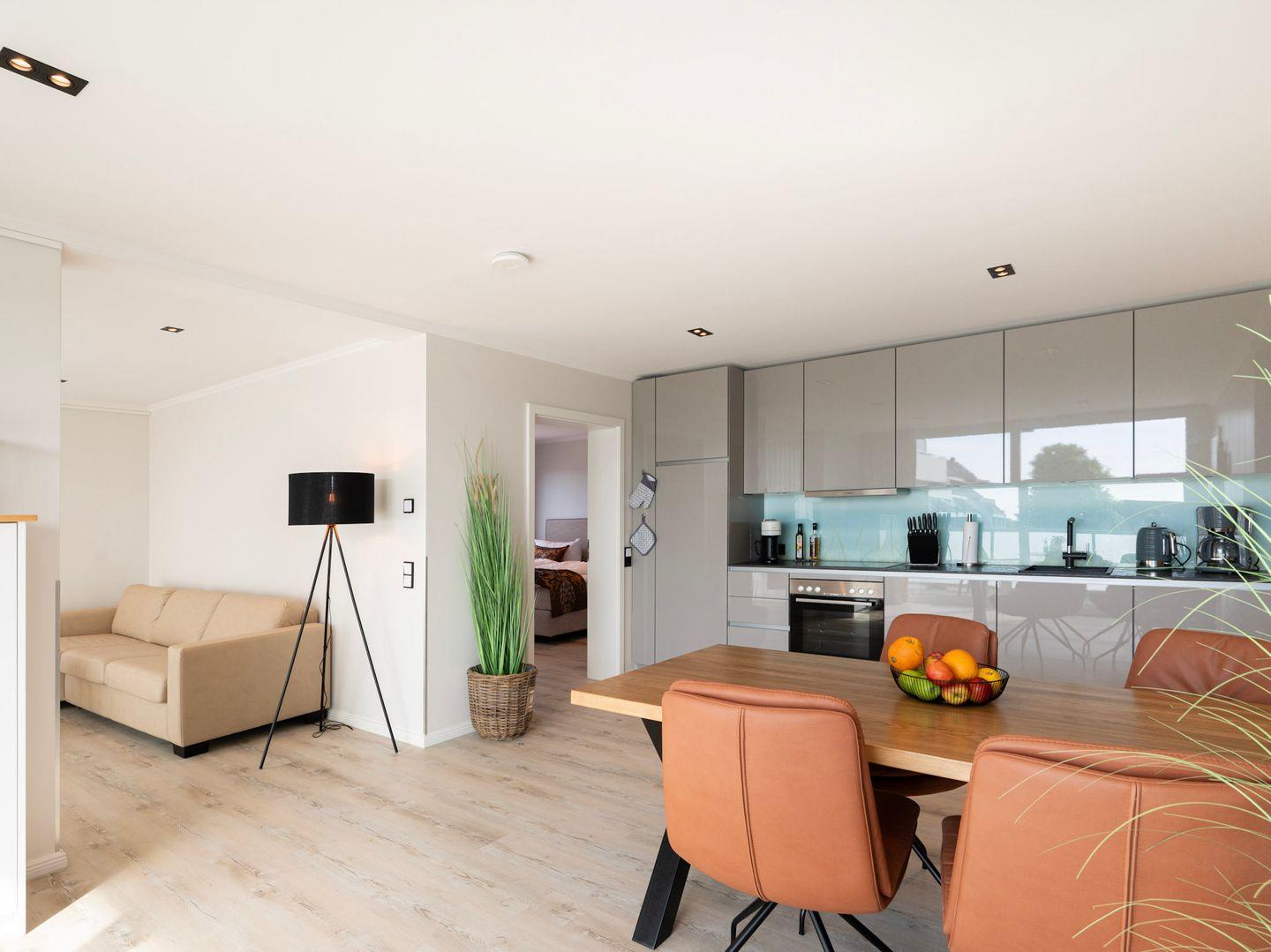 Die Inseltörn Wohnung 5 in Büsum ist der perfekte Rückzugsort für Familien und Gruppen von bis zu sechs Personen, die einen unvergesslichen Urlaub an der Nordsee verbringen möchten. Mit einer großzügigen Wohnfläche von 79 m² bietet diese moderne Ferienwohnung zwei geschmackvoll eingerichtete Schlafzimmer sowie ein helles und einladendes Ess- und Wohnzimmer, das zum Verweilen und Entspannen einlädt. Der offene Küchenbereich ist mit hochwertigen Küchenutensilien ausgestattet, darunter ein Herd, Backofen, Spülmaschine und eine Nespresso-Espressomaschine – alles, was Sie benötigen, um auch im Urlaub kulinarisch kreativ zu sein.
