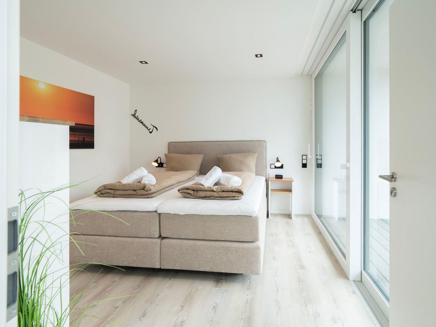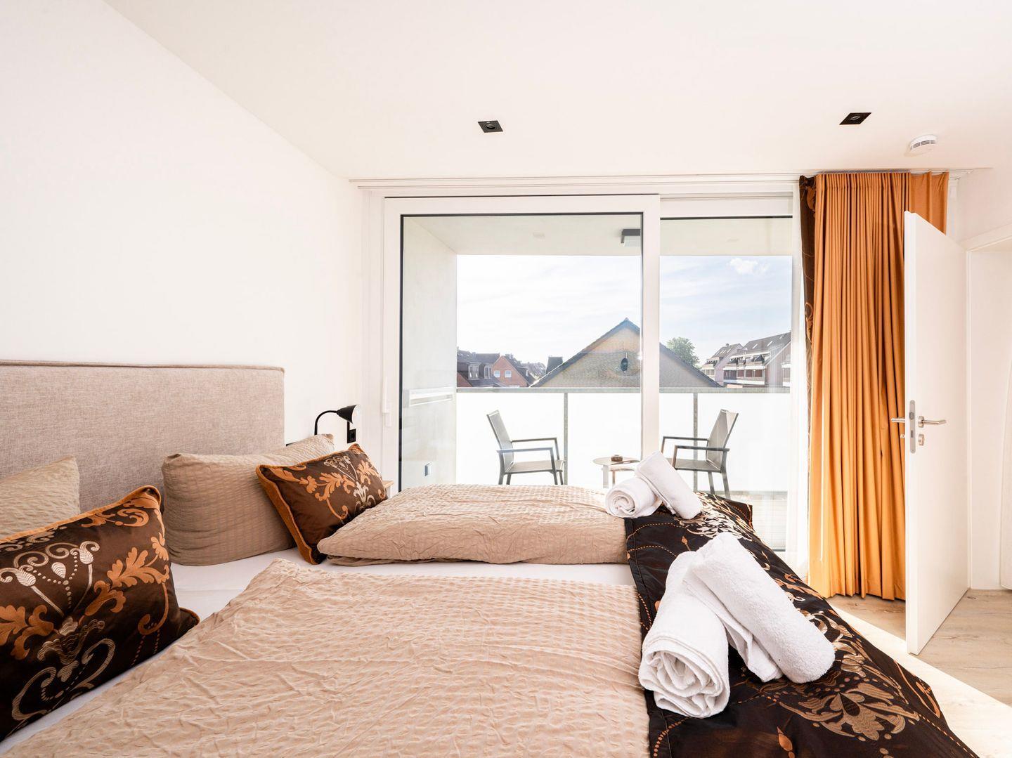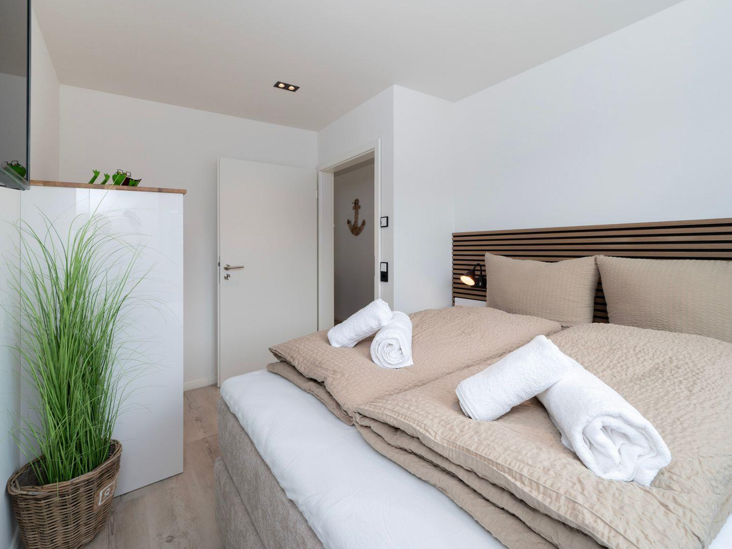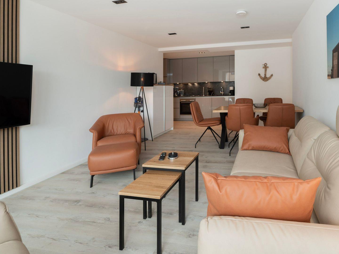 Die Wohnung verfügt über zwei einladende Schlafzimmer, die durch eine Allergiker geeignete Ausstattung auch für Allergiker eine erholsame Nachtruhe versprechen. In der offenen Küche, die zum gemütlichen Wohnzimmer hin übergeht, können Sie kulinarische Köstlichkeiten zubereiten. Hier stehen Ihnen moderne Geräte wie ein Cerankochfeld, Backofen, Spülmaschine sowie diverse Küchenutensilien zur Verfügung. Genießen Sie Ihre Mahlzeiten am großen Esstisch oder entspannen Sie auf der Sofaecke, während Sie die Unterhaltung am auf einem der drei TV genießen. WLAN ist in der gesamten Wohnung verfügbar, sodass Sie auch im Urlaub immer online bleiben können.