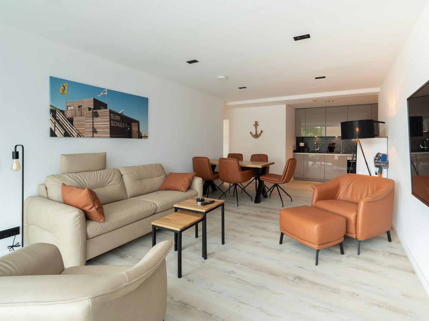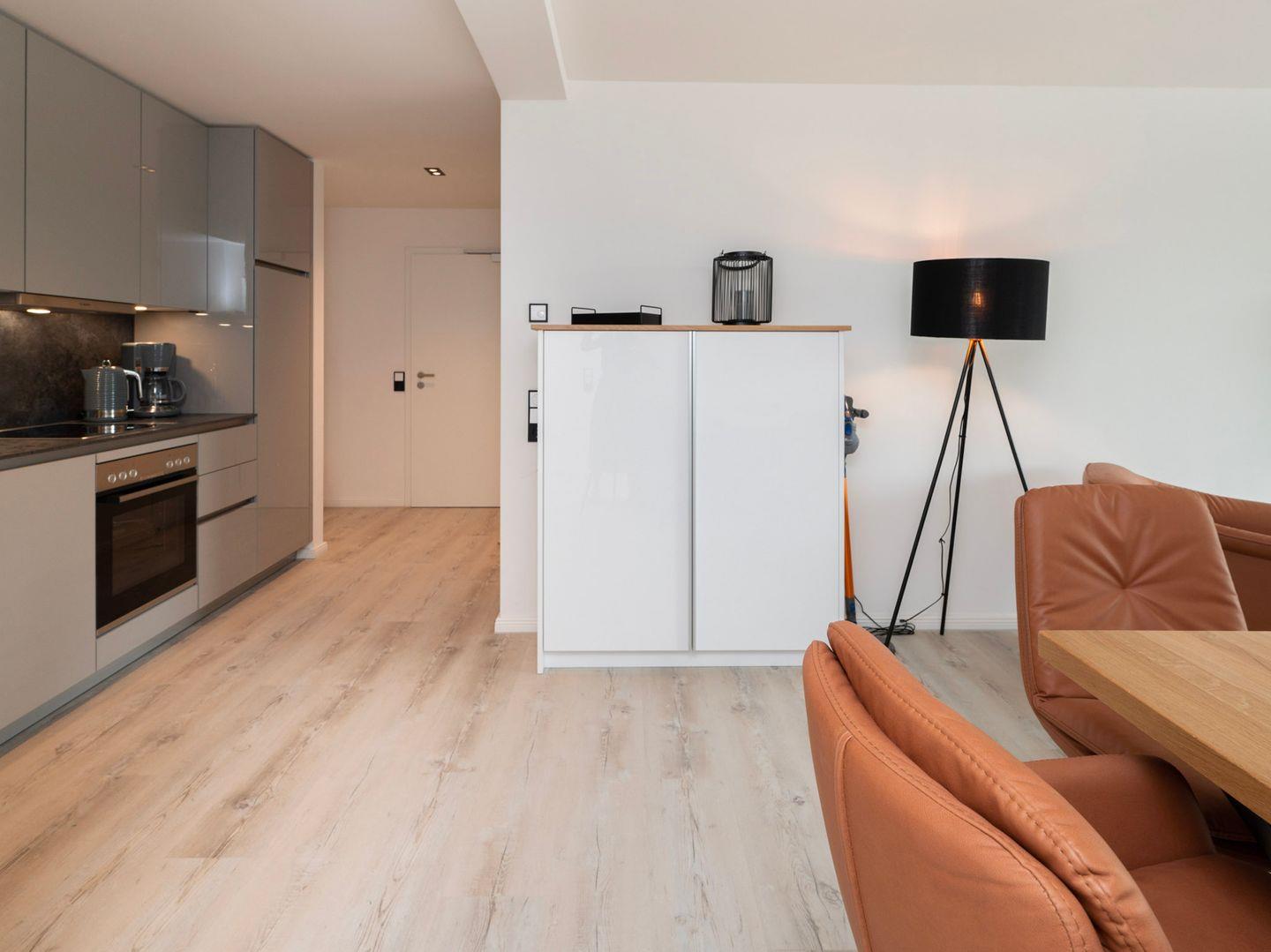 Die Inseltörn Wohnung 7 wurde 2023 frisch renoviert und ausgestattet, um Ihren Aufenthalt so komfortabel wie möglich zu gestalten. Der offene Küchenbereich geht nahtlos in das gemütliche Wohnzimmer mit Sofaecke über, wo Sie gemeinsame Abende mit einem guten Buch oder einem Film genießen können. Die voll ausgestattete Küche verfügt über einen Herd, einen Elektro-Backofen, eine Spülmaschine und sogar eine Espressomaschine für den perfekten Kaffee am Morgen. Praktisch sind die Waschmaschine und der Trockner, die Ihnen die Nutzung von gemeinsamen Einrichtungen in der Wohnung anbieten.