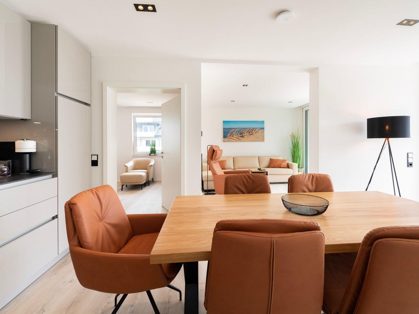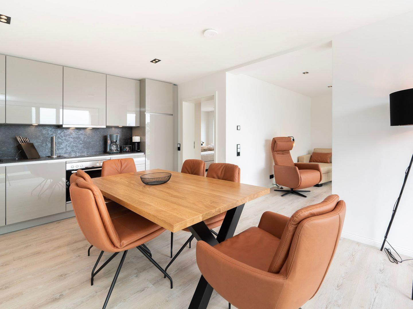 Die voll ausgestattete Küche lässt keine Wünsche offen: Ein Ceranherd, ein Elektro-Backofen, eine Spülmaschine sowie eine Nespresso-Maschine für den perfekten Kaffee am Morgen stehen Ihnen hier zur Verfügung. Ob Sie selbst ein feines Mahl zubereiten oder das Restaurant in nur 180 m Entfernung ausprobieren möchten – die Wahl liegt ganz bei Ihnen!