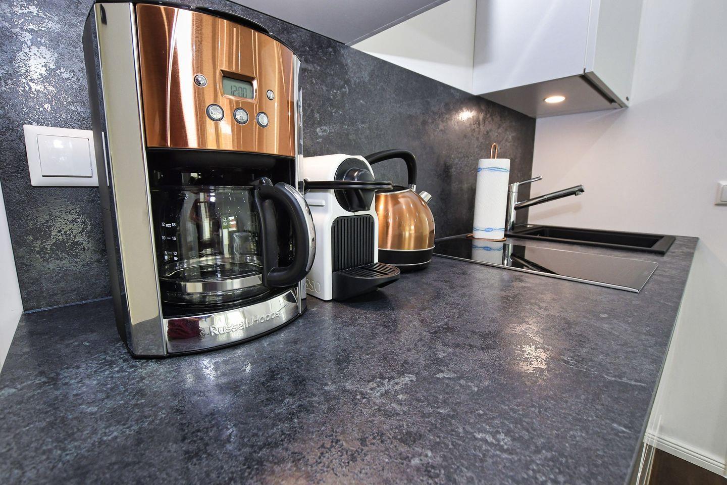 Die offene Wohnküche ist perfekt für alle, die gerne selbst kochen. Sie ist komplett ausgestattet mit einem Cerankochfeld, einer Mikrowelle, einem Kühlschrank, Geschirr und Besteck sowie praktischen Kleingeräten wie einem Wasserkocher, Toaster und einer Kaffeemaschine. Der angrenzende Essbereich lädt zu gemeinsamen Mahlzeiten ein, während die Sofaecke im Wohnzimmer zum Entspannen und Genießen einlädt. Ein Fernseher und WLAN sorgen dafür, dass Sie sowohl jederzeit die neuesten Nachrichten verfolgen als auch im Internet surfen können.