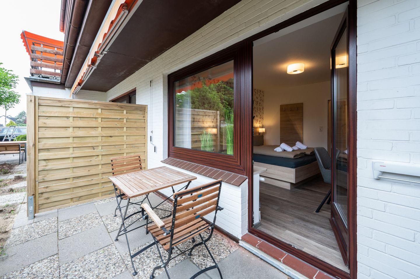Ein besonderes Highlight der Unterkunft ist die private Terrasse, die mit Gartenmöbeln ausgestattet ist. Hier können Sie die frische Nordseeluft genießen oder mit einem Glas Wein den Tag ausklingen lassen. Die moderne Ausstattung umfasst WLAN und einen Fernseher, damit Sie auch im Urlaub auf dem Laufenden bleiben können.