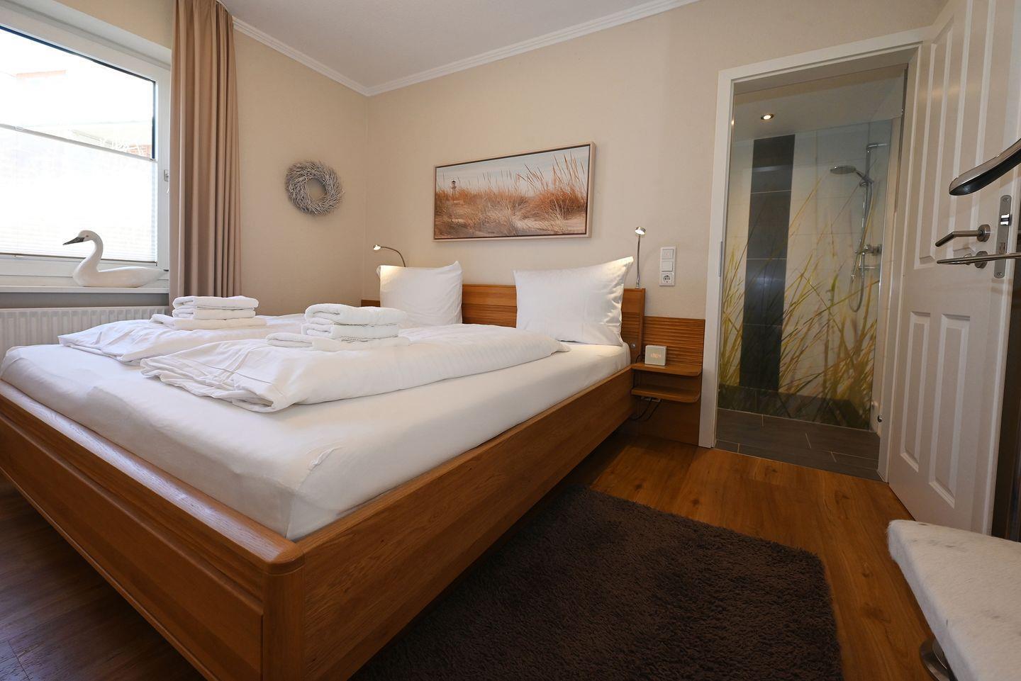 Die Wohnung bietet auf großzügigen 64 m² Platz für bis zu vier Personen. Mit zwei geschmackvoll eingerichteten Schlafzimmern, ausgestattet mit gemütlichen Betten, garantiert sie erholsame Nächte. Der helle Wohnbereich ist offen zur modernen Küche gestaltet, die mit allen Utensilien ausgestattet ist, die Sie für die Zubereitung Ihrer Lieblingsgerichte benötigen. Hier finden Sie unter anderem einen Herd, einen Backofen, eine Mikrowelle, eine Spülmaschine und eine Kaffeemaschine. Der Esstisch lädt zu gemeinsamen Mahlzeiten ein und schafft ein familiäres Ambiente.
