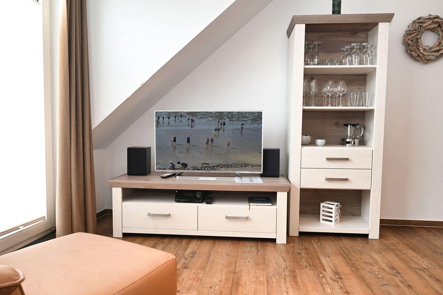 Für Ihren Bedarf an Praktikabilität gibt es eine Garderobe und eine Waschmaschine im Gemeinschaftsbereich. Auch für Familien mit Kindern ist die Ferienwohnung bestens geeignet: Kinder sind herzlich willkommen und können im nahen Strandbereich nach Herzenslust spielen und buddeln.