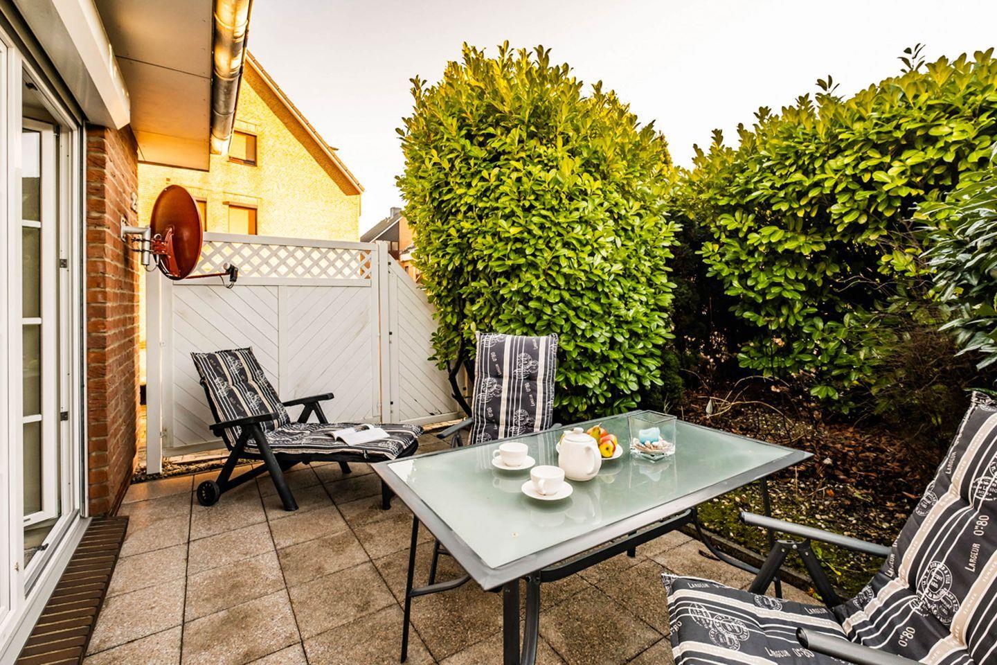 Ein weiteres Highlight ist die private Terrasse, auf der Sie die frische Meeresluft genießen und entspannte Stunden im Freien verbringen können. Gartenmöbel sind vorhanden, sodass Sie Ihr Frühstück im Freien einnehmen oder einen schönen Abend bei einem Glas Wein ausklingen lassen können.