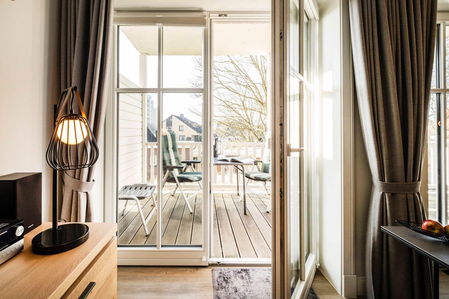 Ein besonderes Highlight ist der große Balkon mit Gartenmöbeln, die nicht nur zum Entspannen, sondern auch zum Genießen der frischen Nordseeluft einlädt. Hier können Sie die Sonnenstrahlen unter einem Sonnenschirm genießen oder den Abend bei einem Glas Wein ausklingen lassen.