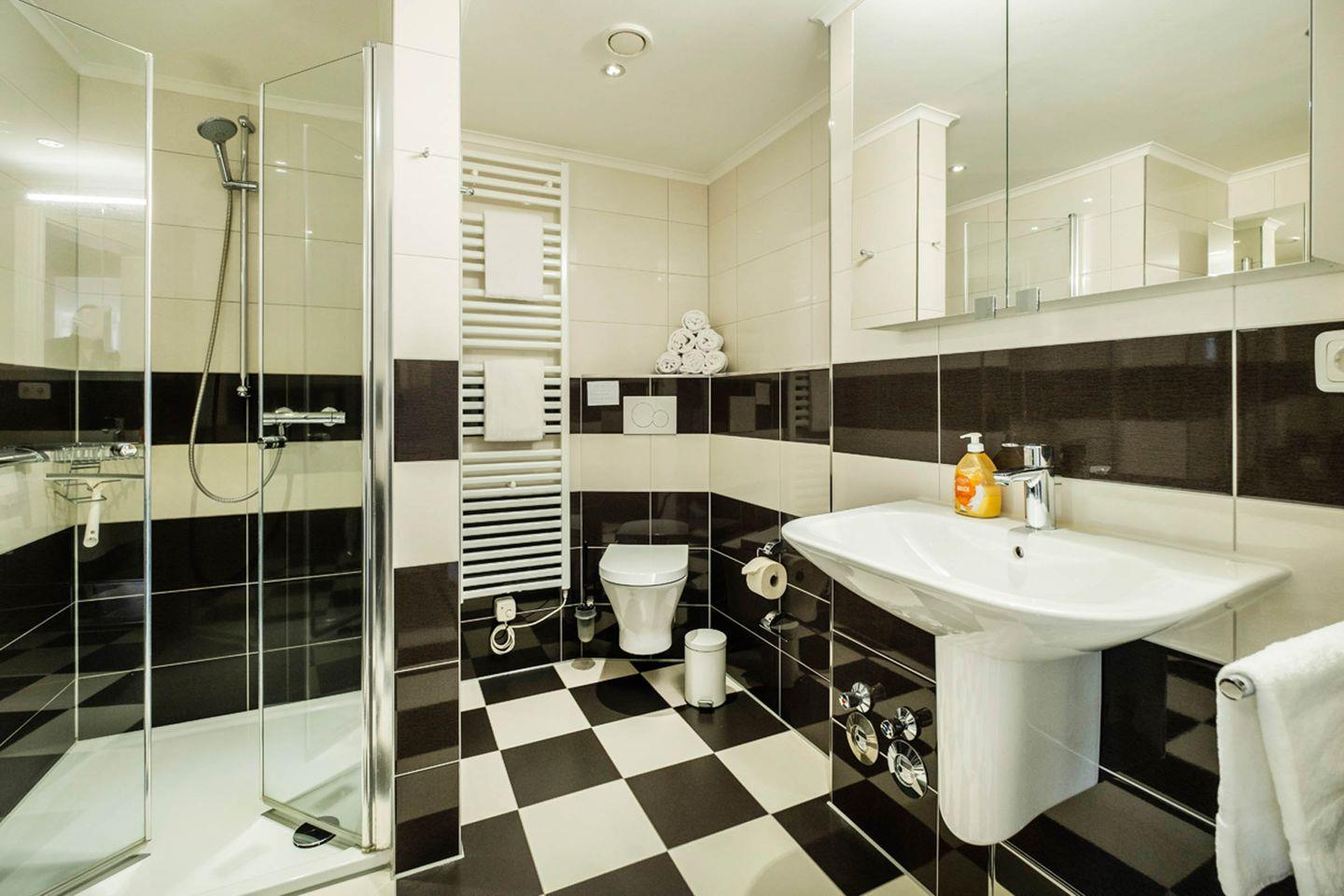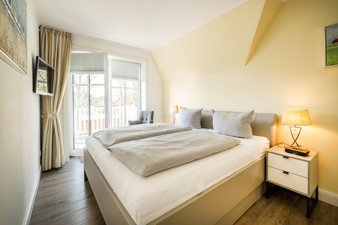Das Schlafzimmer überzeugt mit einem komfortablen Bett und einer ruhigen Atmosphäre, die zum Ausruhen einlädt. Zudem ist das Apartment allergikergeeignet und bietet eine Hochwertigkeit, die Sie während Ihres Aufenthalts schätzen werden. Das Badezimmer ist mit einer bodengleichen Dusche, einem Haartrockner und Kosmetikspiegel ausgestattet, sodass Sie sich wohlfühlen können.
