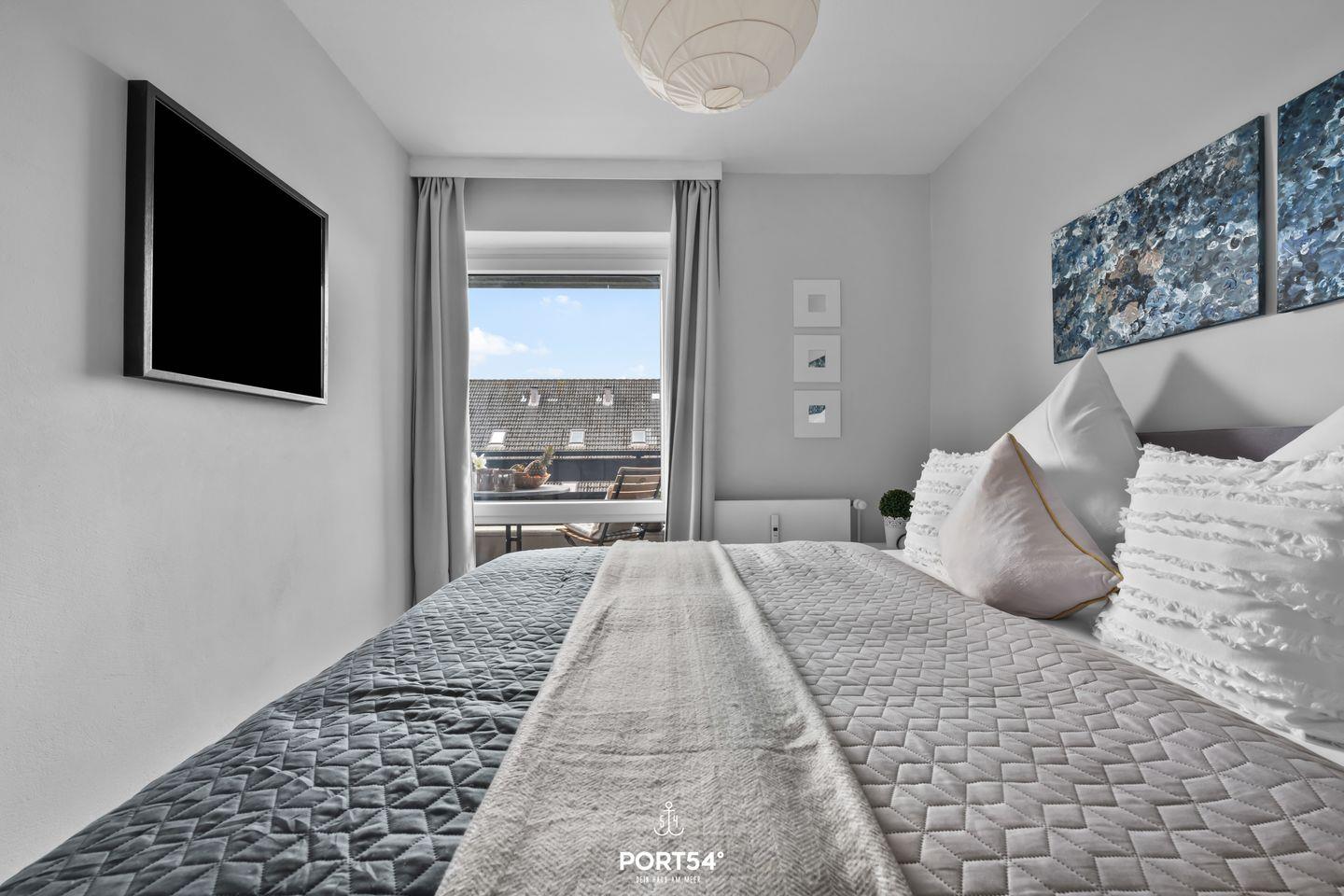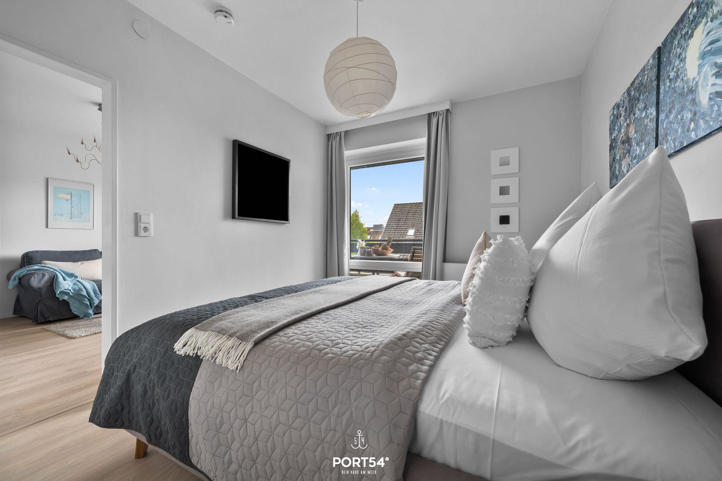 Im zweiten Schlafzimmer befindet sich zudem ein Home-Office-Arbeitsplatz, der sich ideal für Gäste eignet, die auch im Urlaub nicht ganz auf das Arbeiten verzichten möchten.