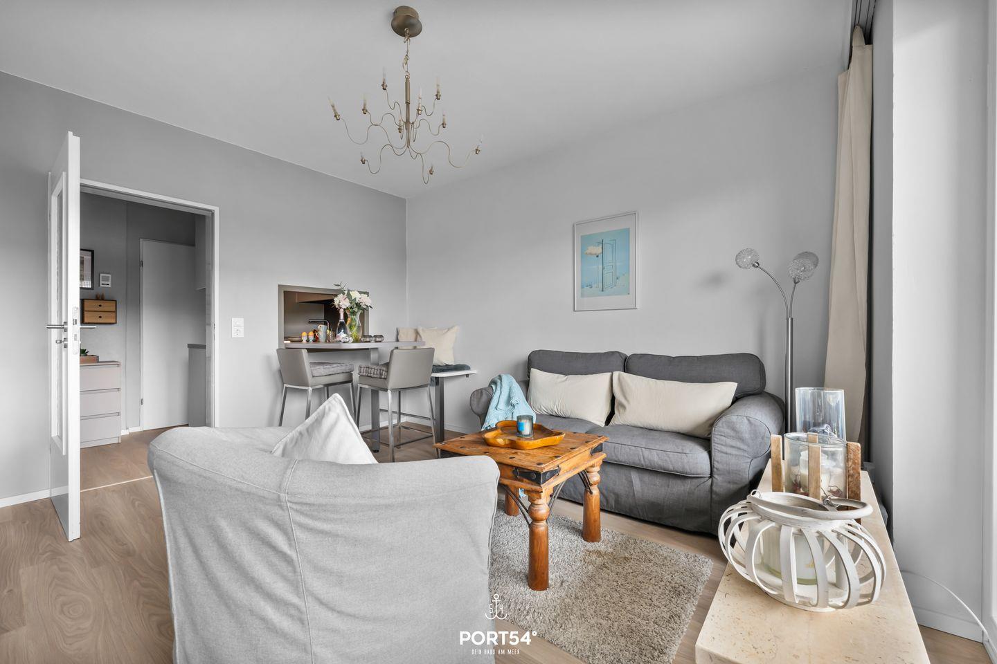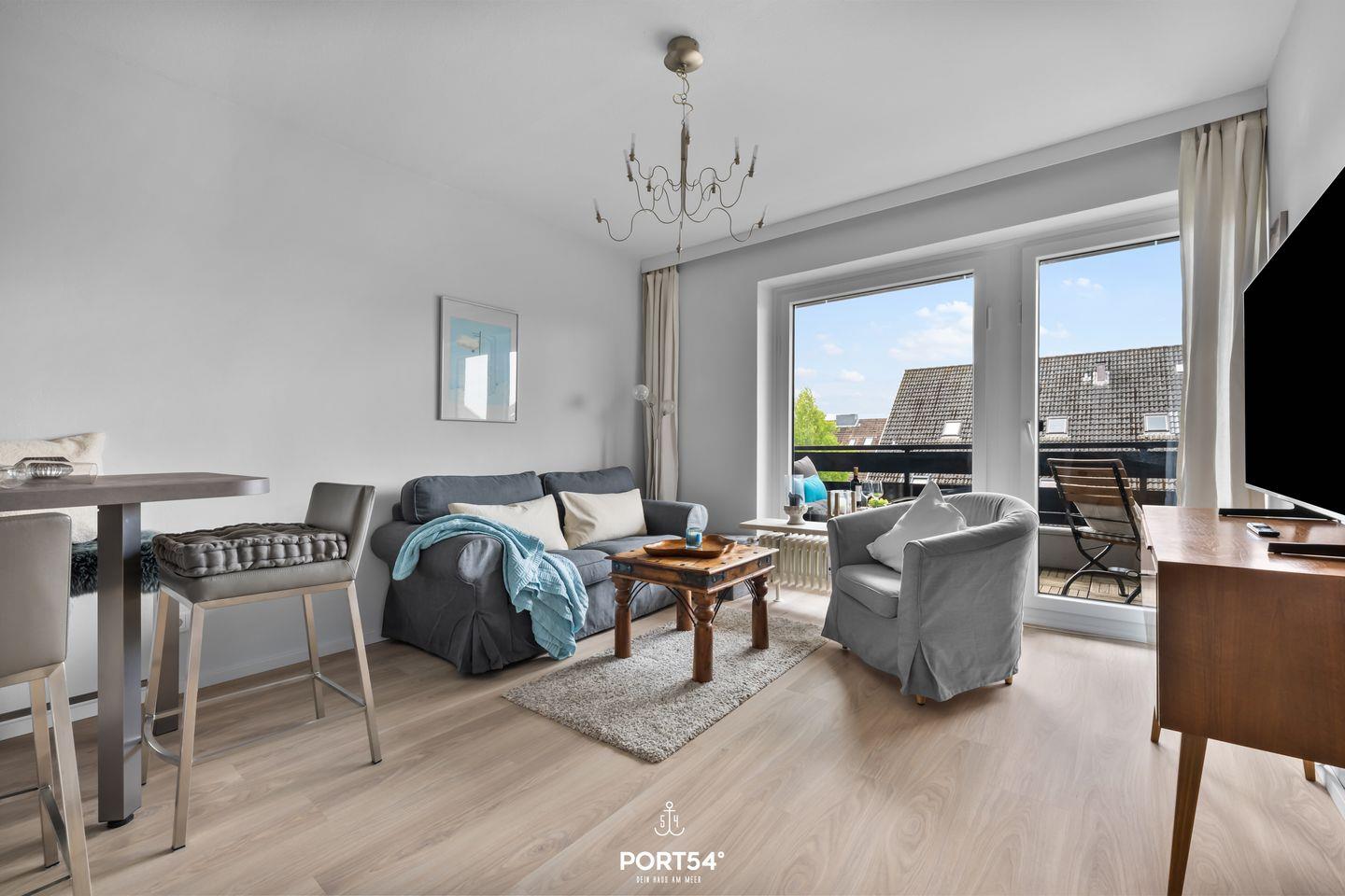 Zu den besonderen Merkmalen der Wohnung gehört ein Süd-Balkon, der Ihnen die Möglichkeit bietet, die frische Nordseeluft zu genießen und entspannende Stunden im Freien zu verbringen. Die Wohnung bietet außerdem einen Wohnbereich mit einer gemütlichen Sofaecke und Sessel, die perfekt für entspannte Abende mit einem guten Buch oder einem Film sind. Eine Erstausstattung sorgt dafür, dass Sie gleich bei Ihrer Ankunft alle notwendigen Annehmlichkeiten vorfinden.