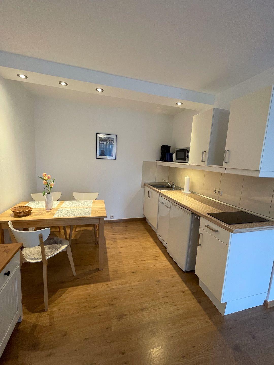 Die Küche ist vollständig ausgestattet und umfasst ein Ceran-Kochfeld, einen Kühlschrank mit integriertem Gefrierfach, eine Mikrowelle, eine Spülmaschine sowie zahlreiche Küchenutensilien. Geschirr und Besteck sind ebenfalls vorhanden, ebenso wie ein Toaster. Diese umfangreiche Ausstattung ermöglicht Ihnen das Zubereiten von Speisen wie zu Hause.