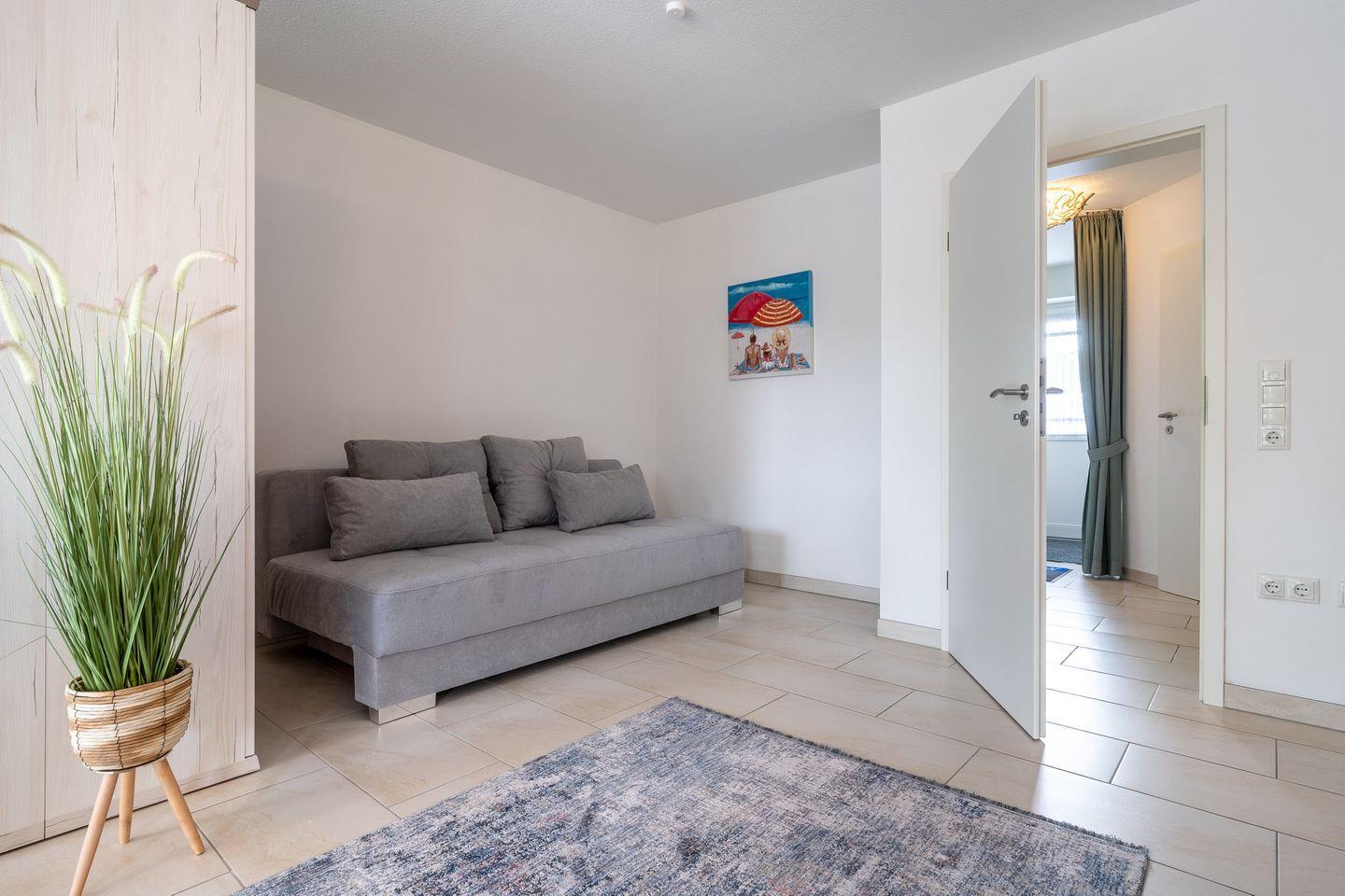Die Erholungs-Oase beherbergt insgesamt drei Zimmer, darunter ein einladendes Schlafzimmer (1 Doppelbett 180x200,1 Einzelbett 90x200) das mit einem gemütlichen Fliesenboden ausgestattet ist. Das Wohnzimmer zeigt sich hell und freundlich und bietet ausreichend Platz zum Entspannen. Eine Sofaecke (Schlafsofa 160x200), ein Esstisch und ein Fernseher mit Radioempfang zeichnen den Wohnbereich aus. Hier können Sie nach einem ereignisreichen Tag am Strand zur Ruhe kommen oder gesellige Abende mit Ihren Lieben verbringen.