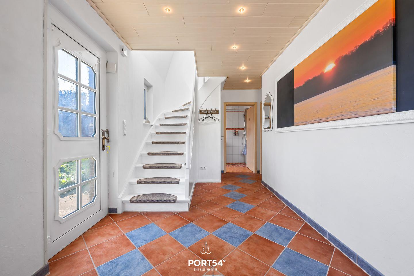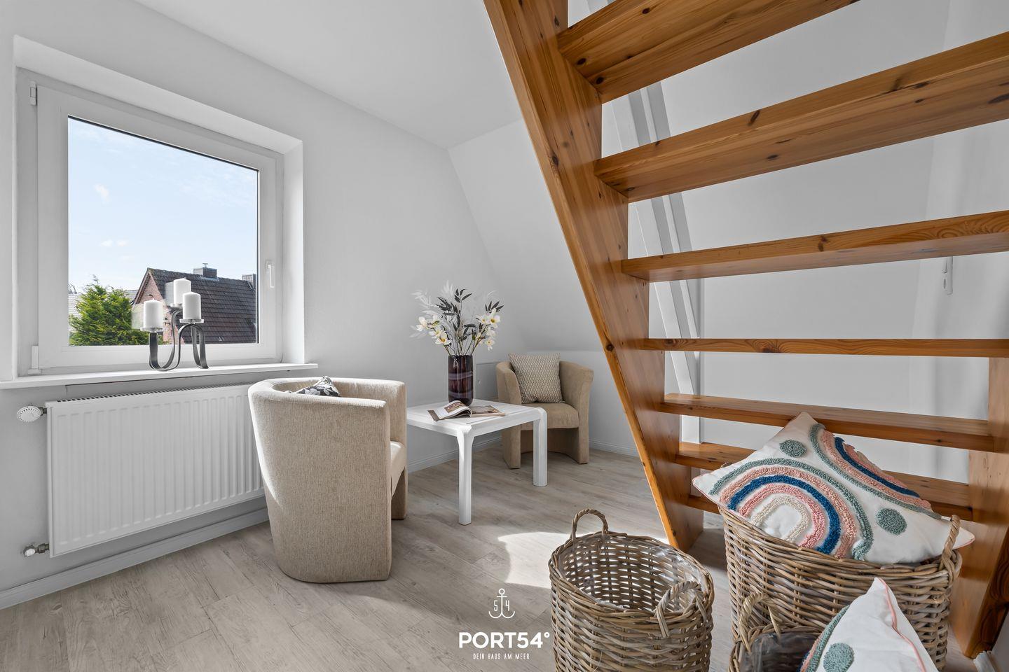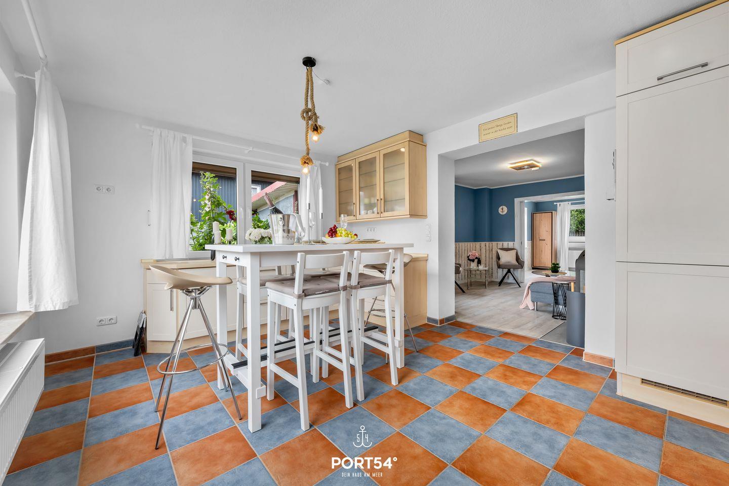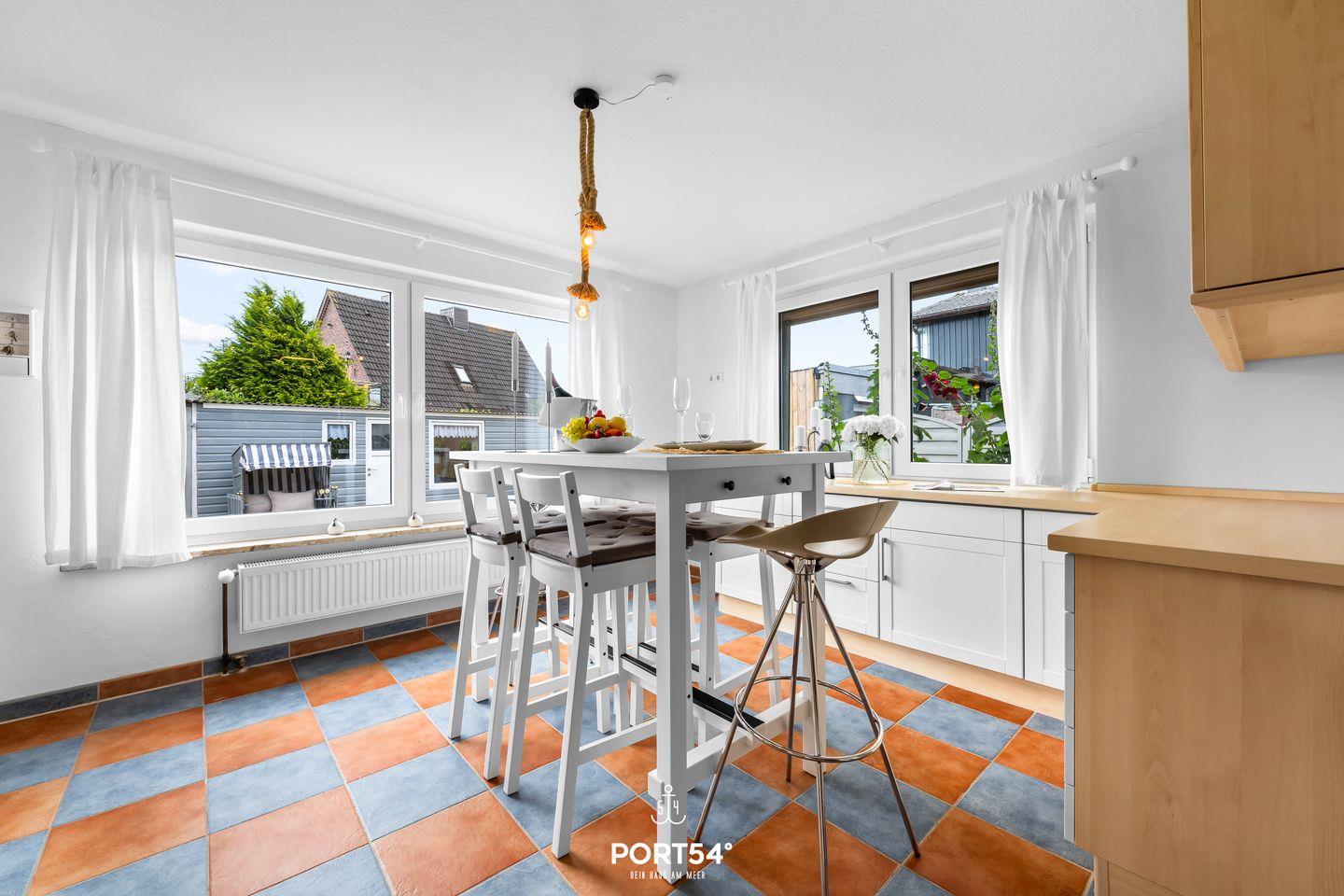 Auch der Außenbereich lässt keine Wünsche offen: Das komplett eingezäunte Grundstück sorgt für Privatsphäre und Sicherheit, besonders für Familien mit Kindern oder Reisende mit Hund. Eine überdachte Terrasse mit gemütlicher Lounge-Ecke und Feuerstelle lädt zu entspannten Abenden im Freien ein. Ein Strandkorb bietet maritimes Urlaubsgefühl, und Fahrräder können bequem und sicher abgestellt werden.