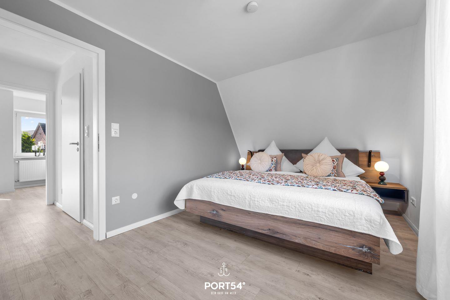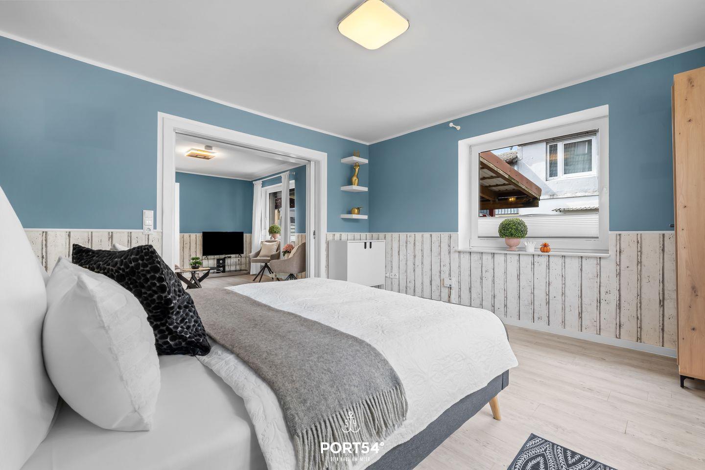 Insgesamt stehen drei Schlafzimmer zur Verfügung: Zwei davon sind mit komfortablen Doppelbetten ausgestattet, das dritte verfügt über eine hochwertige Schlafcouch, die sich ebenfalls in ein bequemes Doppelbett verwandeln lässt.