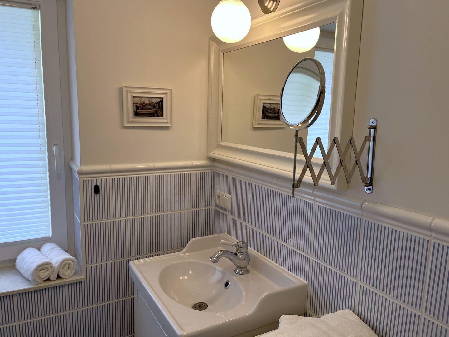 Im Tageslicht- Badezimmer steht Ihnen eine Dusche, mit niedrigem Einstieg und ein zusätzlicher Kosmetikspiegel zur Verfügung.